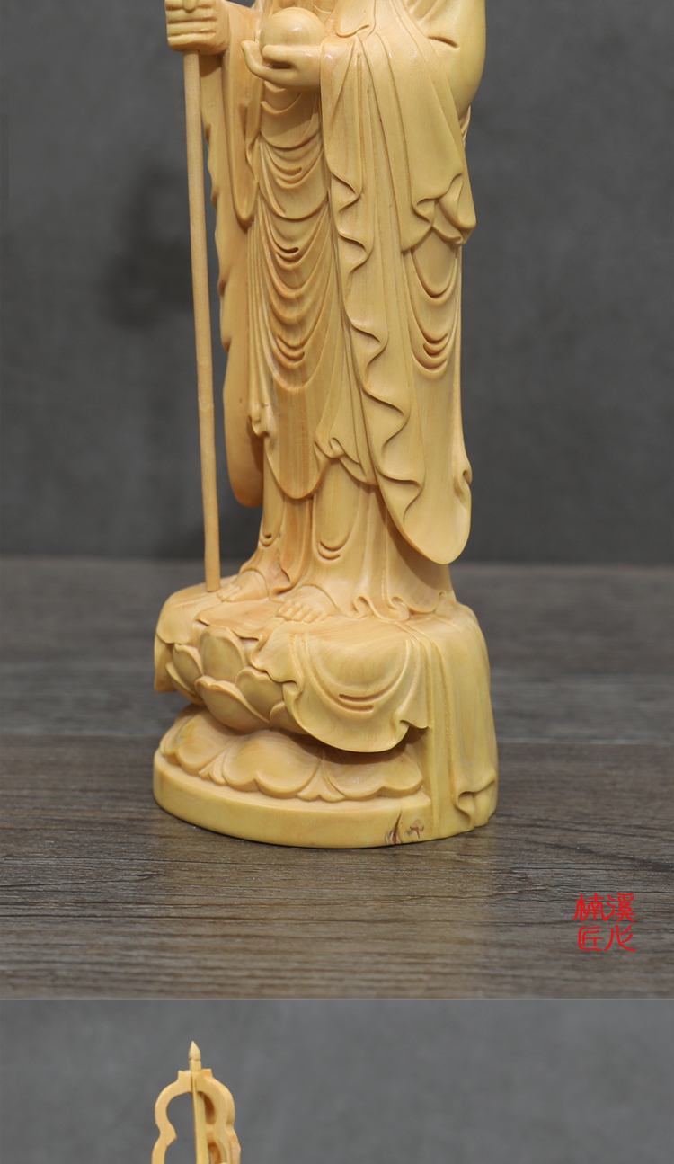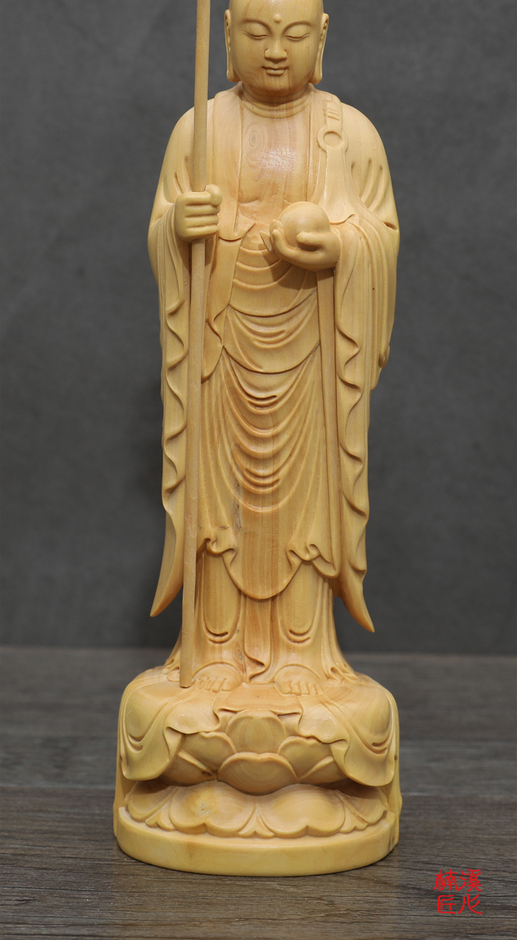 楠溪匠心黃楊木雕佛像擺件禪意玄關供奉三寶佛三圣地藏王鎮宅辟邪1入