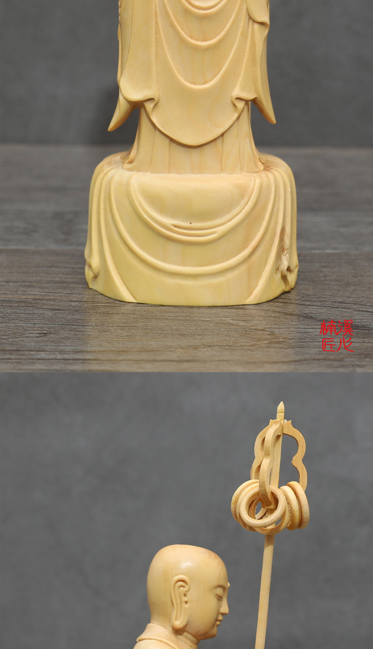 [2]楠溪匠心黃楊木雕佛像擺件禪意玄關供奉三寶佛三圣地藏王鎮宅辟邪1入