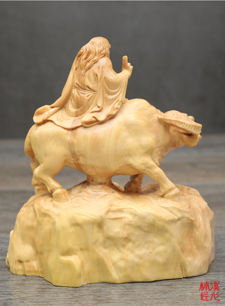 楠溪匠心黃楊木雕老子出關擺件老子騎牛雕像實木雕刻書房玄關擺設1入