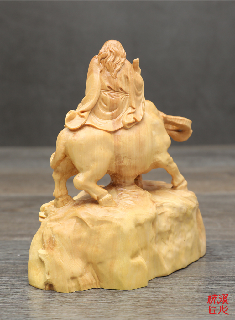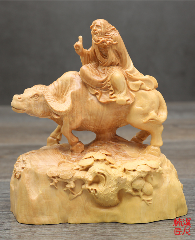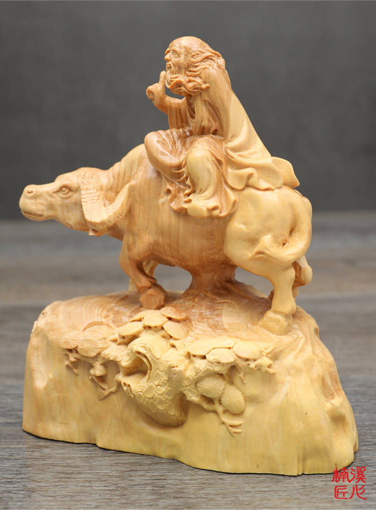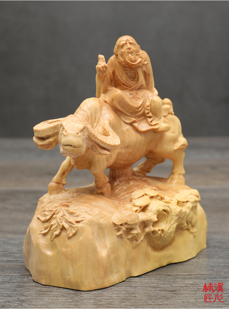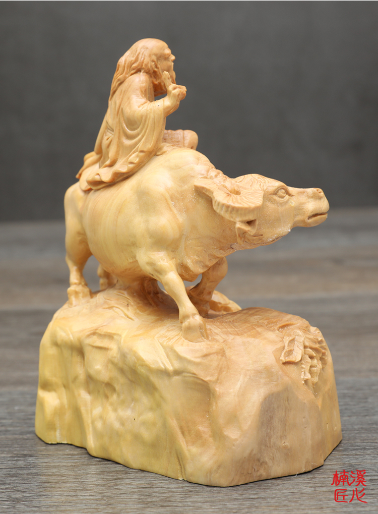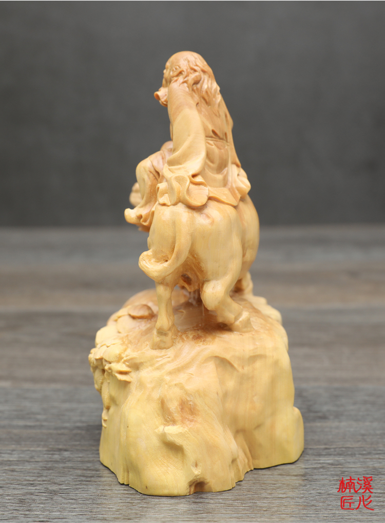 [2]楠溪匠心黃楊木雕老子出關擺件老子騎牛雕像實木雕刻書房玄關擺設1入