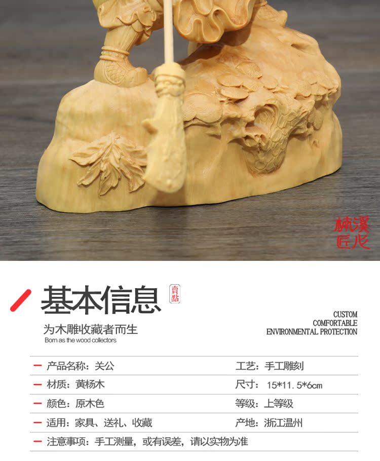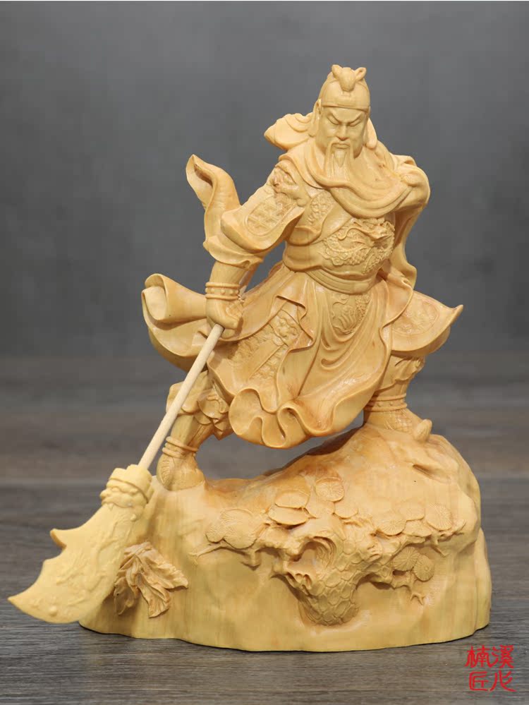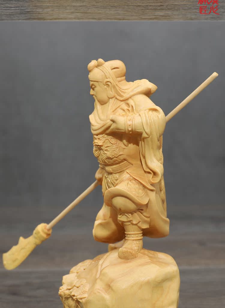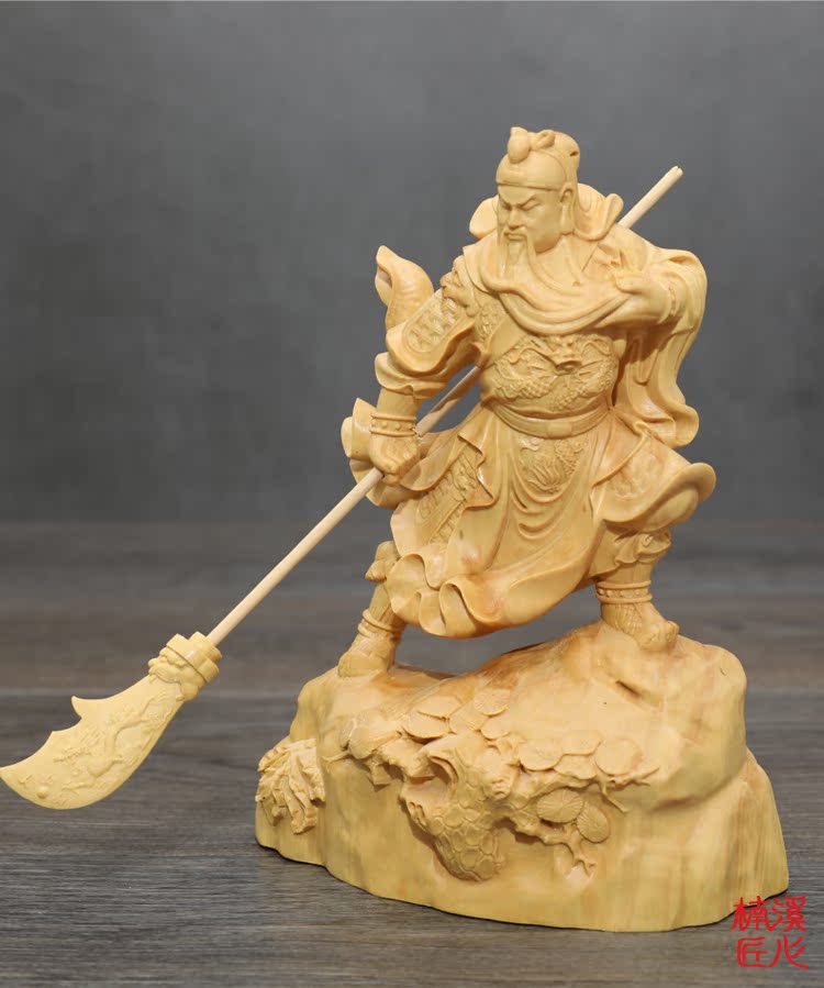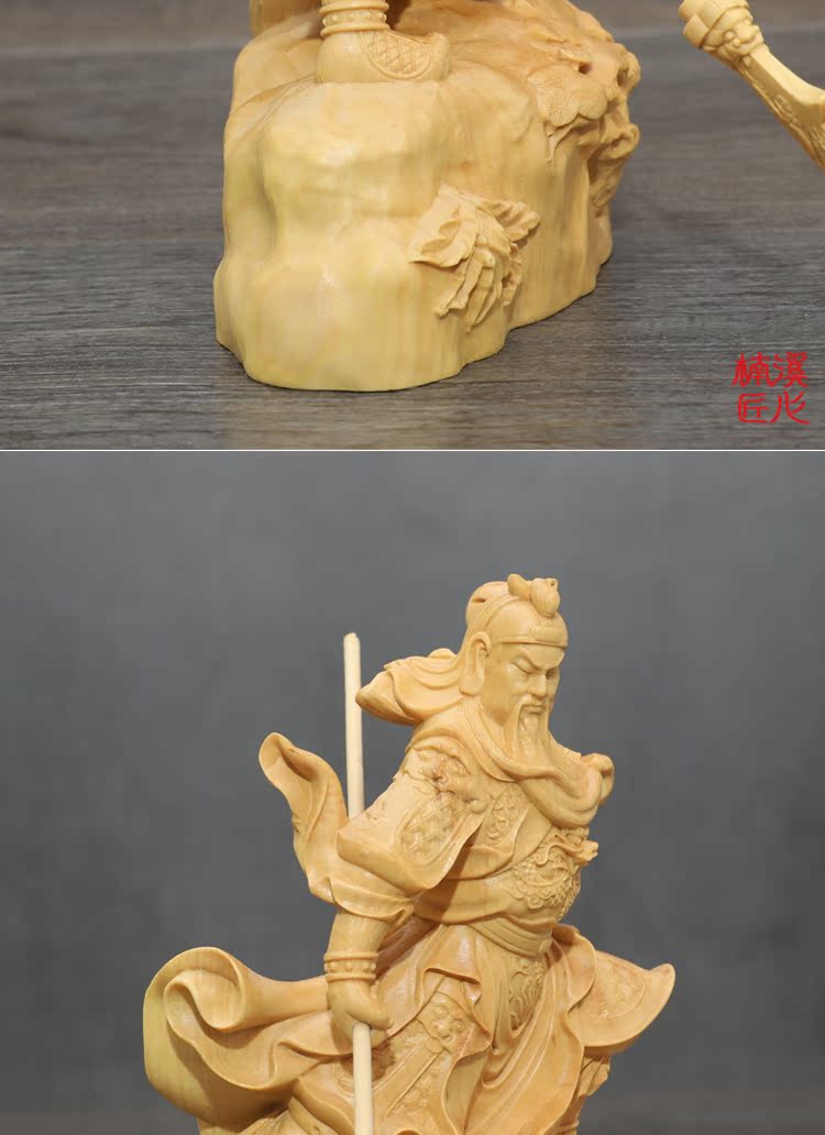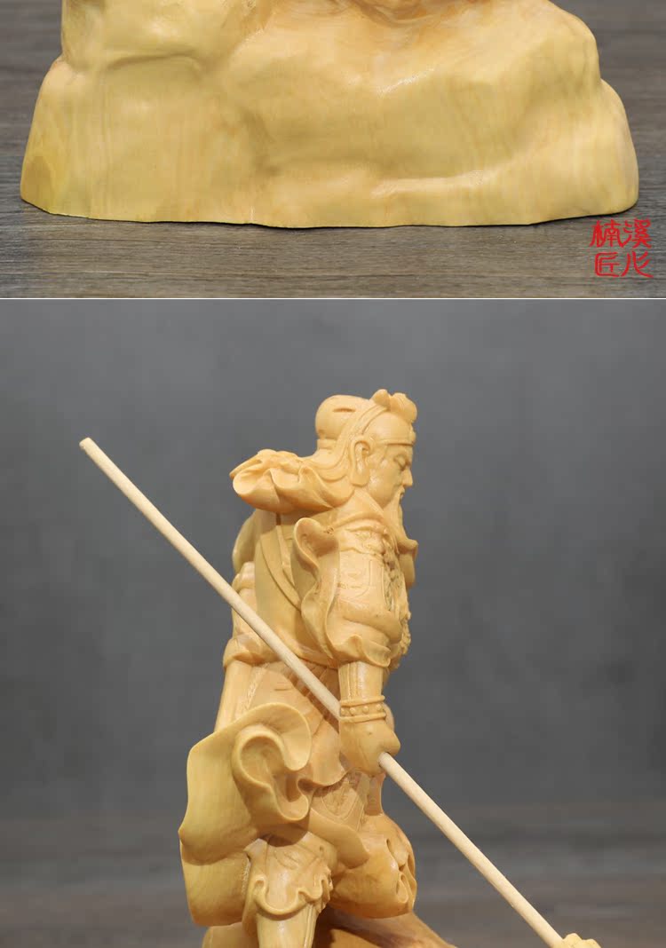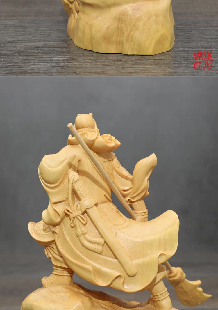 [2]楠溪匠心黃楊木雕刻關公像擺件實木雕刻家居鎮宅供奉店鋪招財風水1入