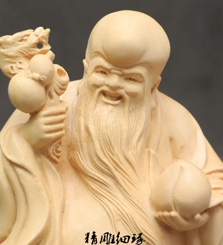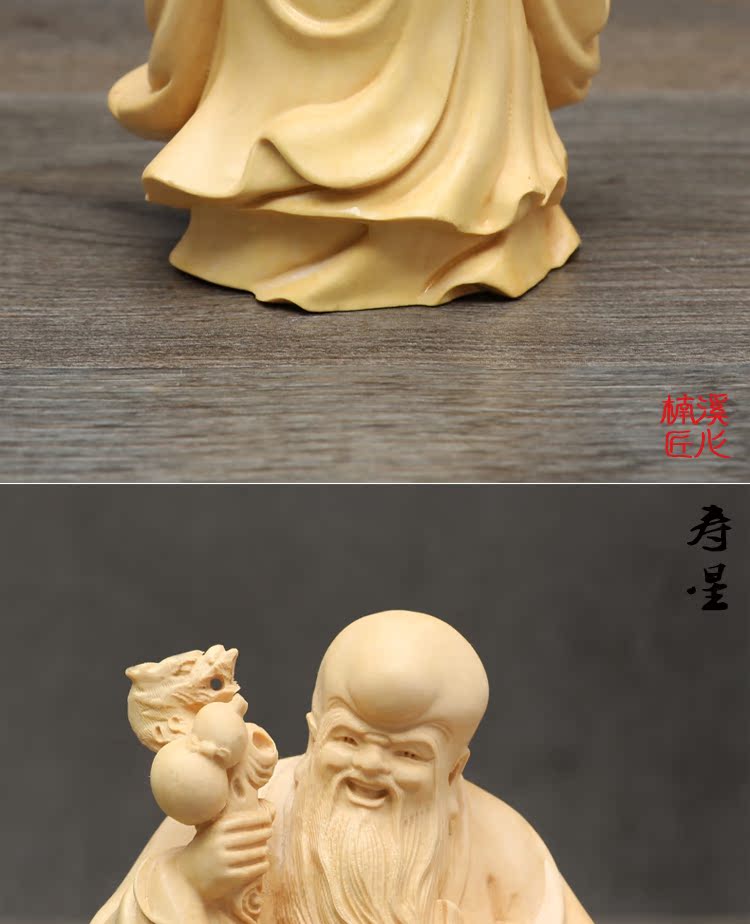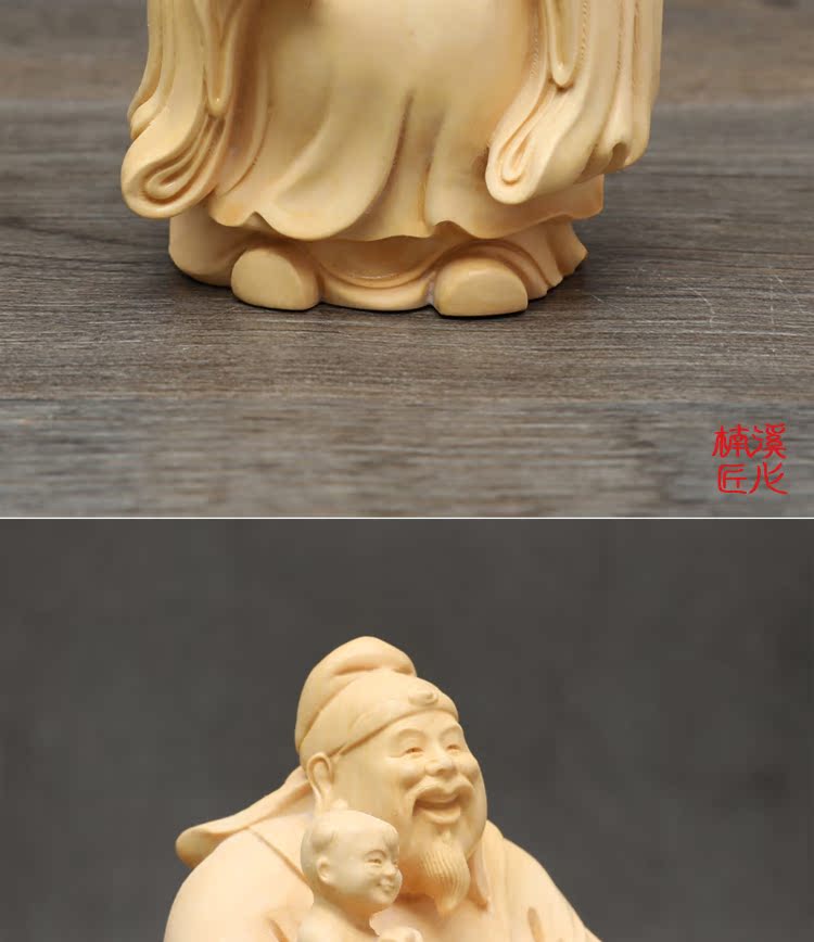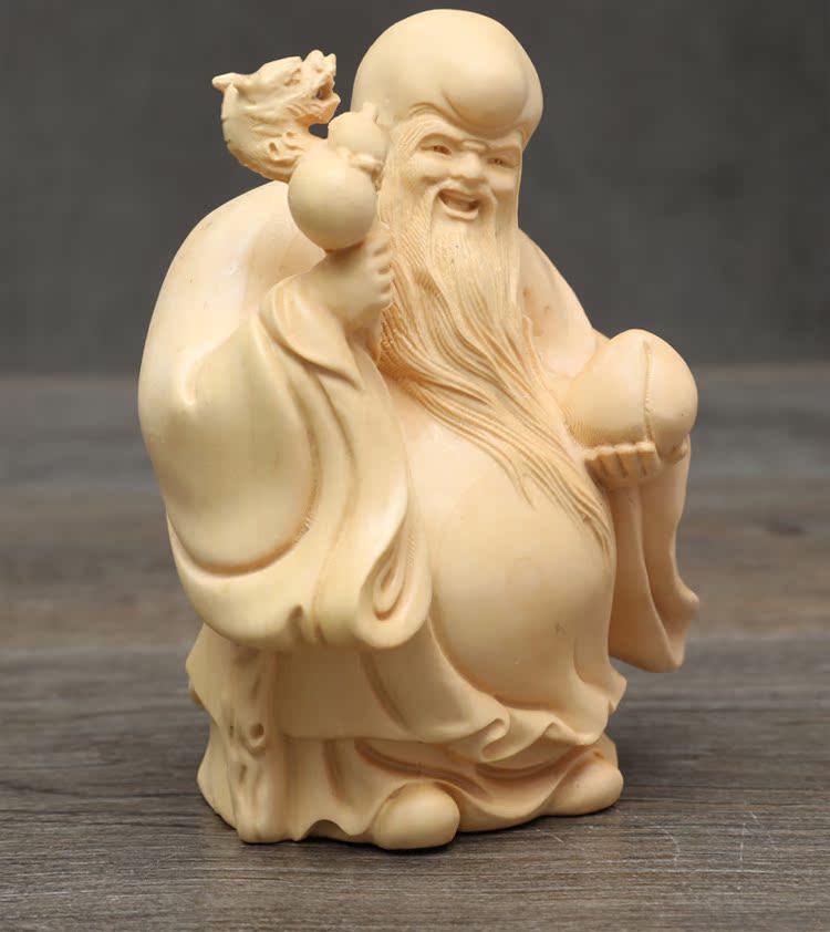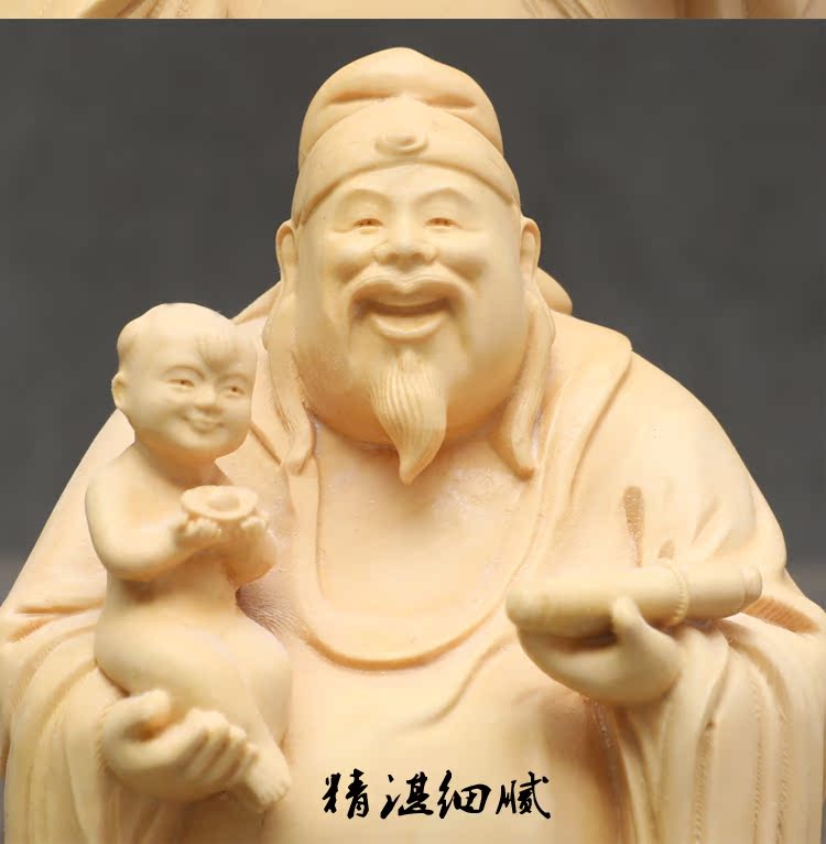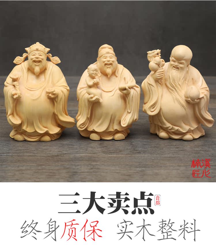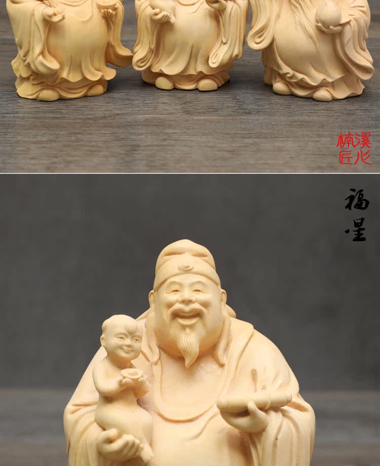 [2]楠溪匠心黃楊木雕福祿壽三星創意禪意財神爺佛像招財納福喜慶擺件1入