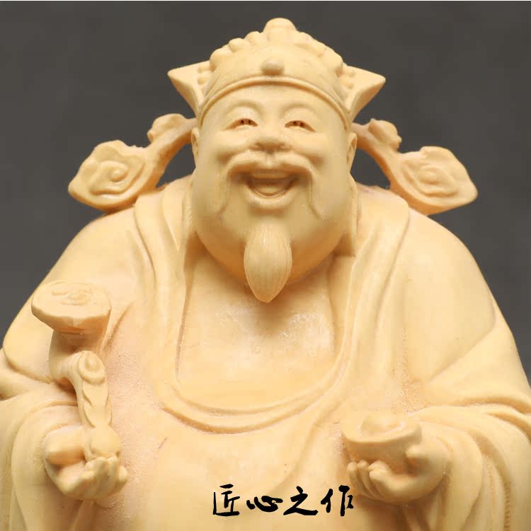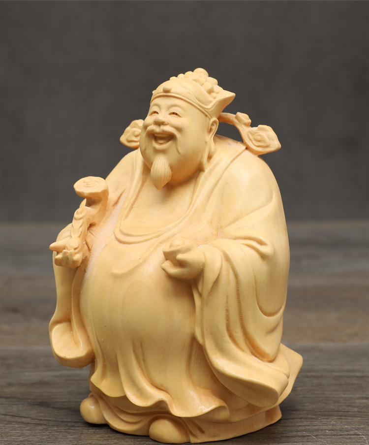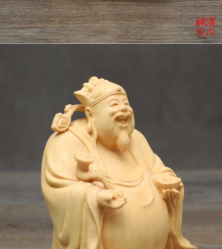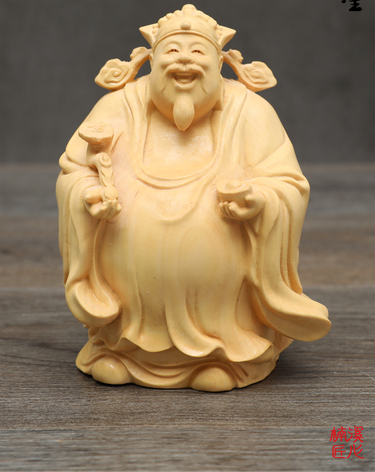 楠溪匠心黃楊木雕福祿壽三星創意禪意財神爺佛像招財納福喜慶擺件1入