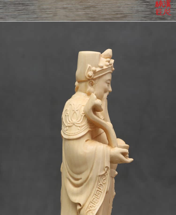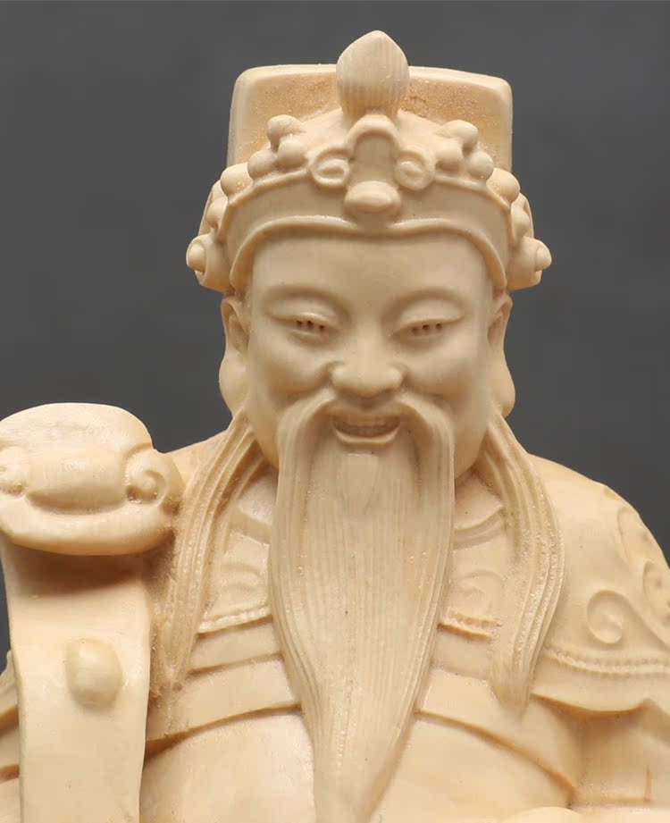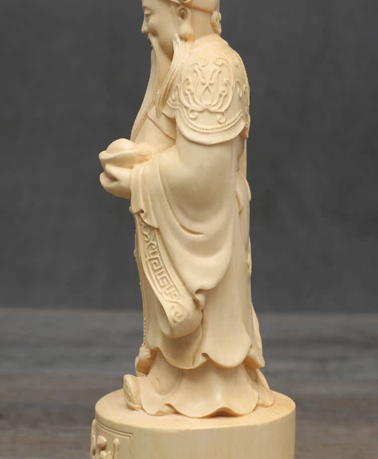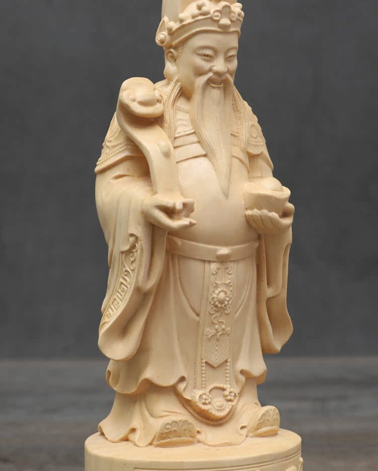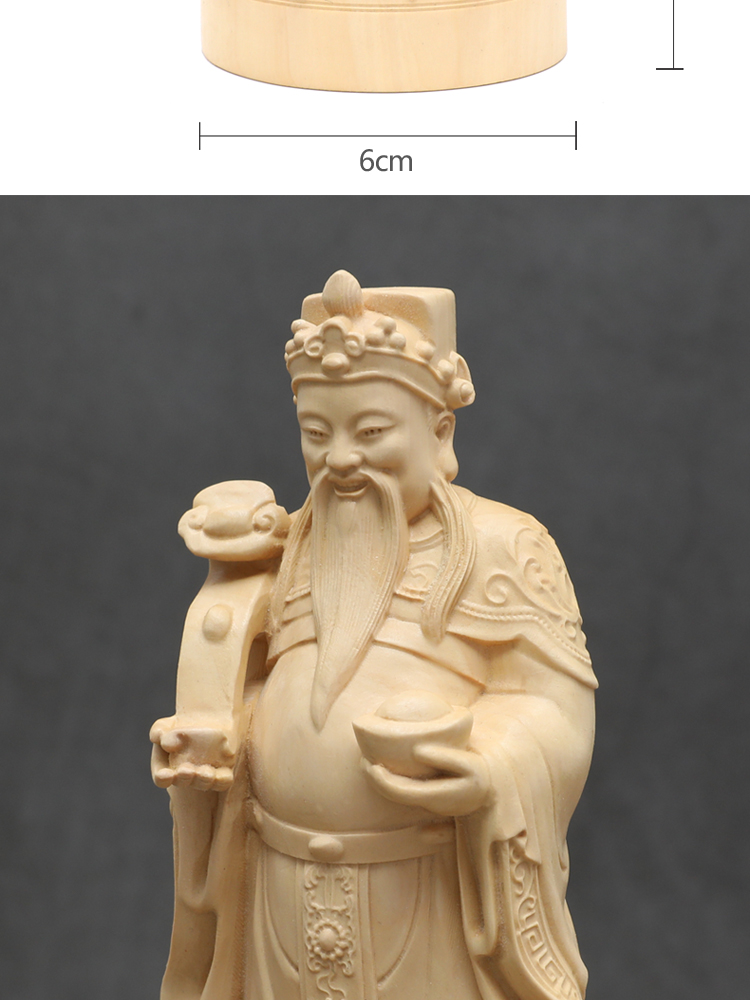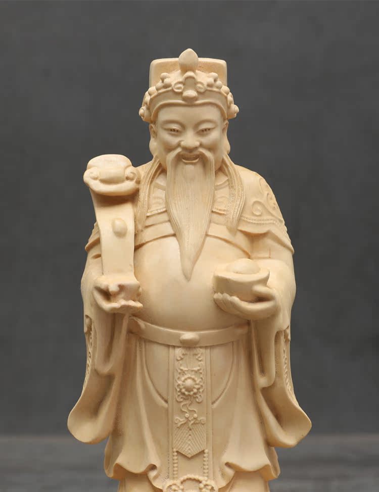 [2]楠溪匠心黃楊木雕財神爺佛像招財進寶實木擺件風水家居供奉工藝品1入