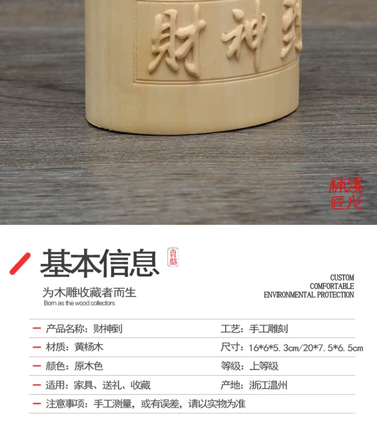 楠溪匠心黃楊木雕財神爺佛像招財進寶實木擺件風水家居供奉工藝品1入