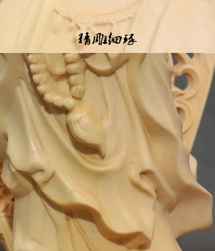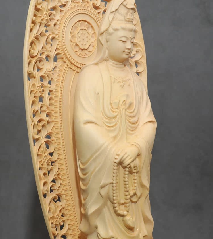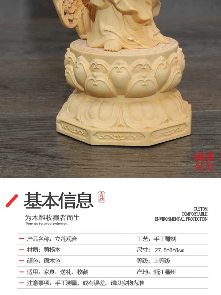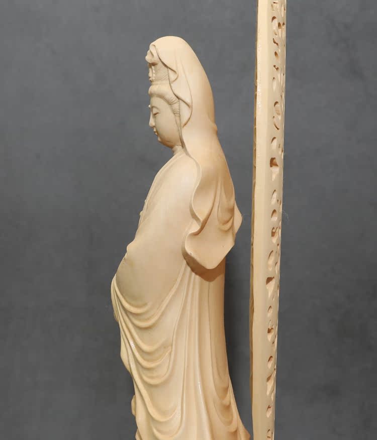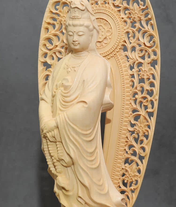 [2]楠溪匠心黃楊木雕立蓮拿珠觀音佛像擺件家用供奉招財鎮宅菩薩精雕1入