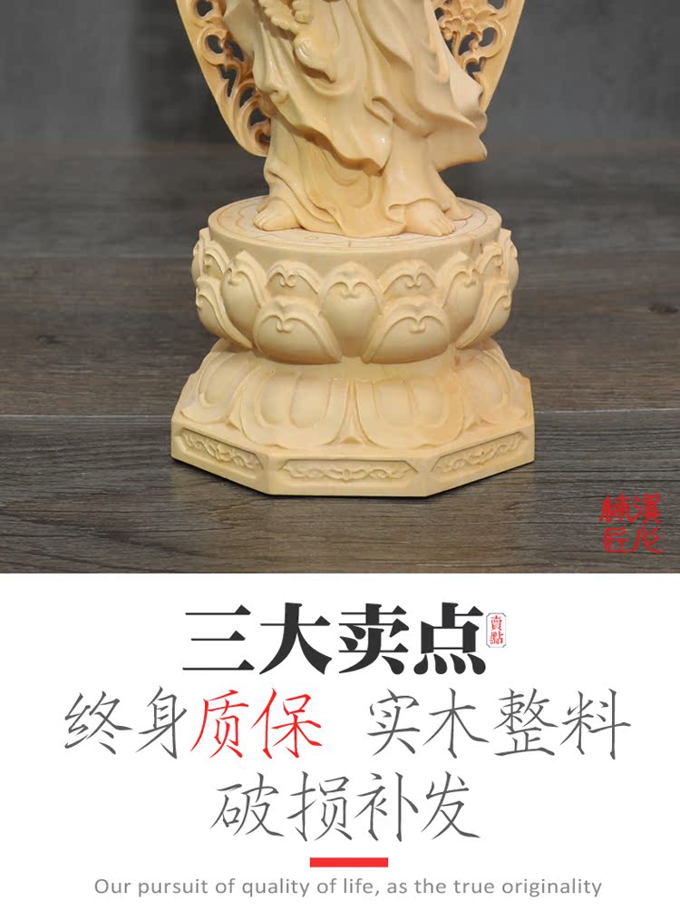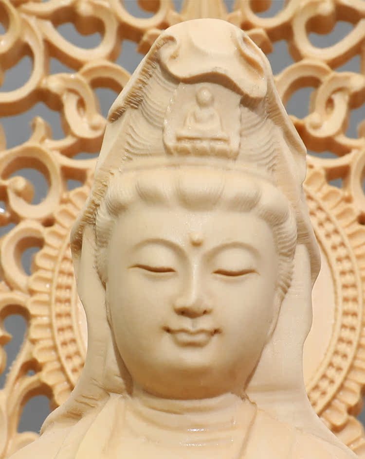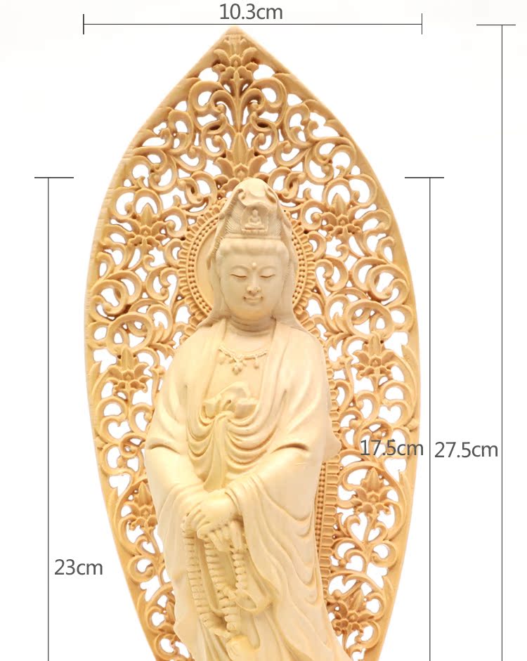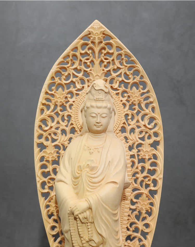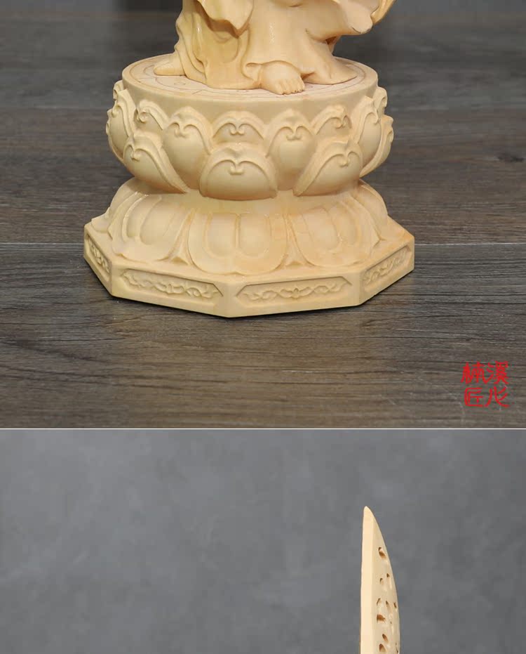 [2]楠溪匠心黃楊木雕立蓮拿珠觀音佛像擺件家用供奉招財鎮宅菩薩精雕1入