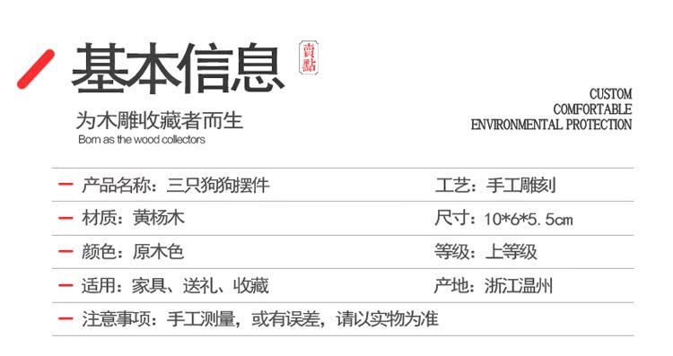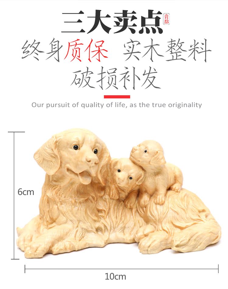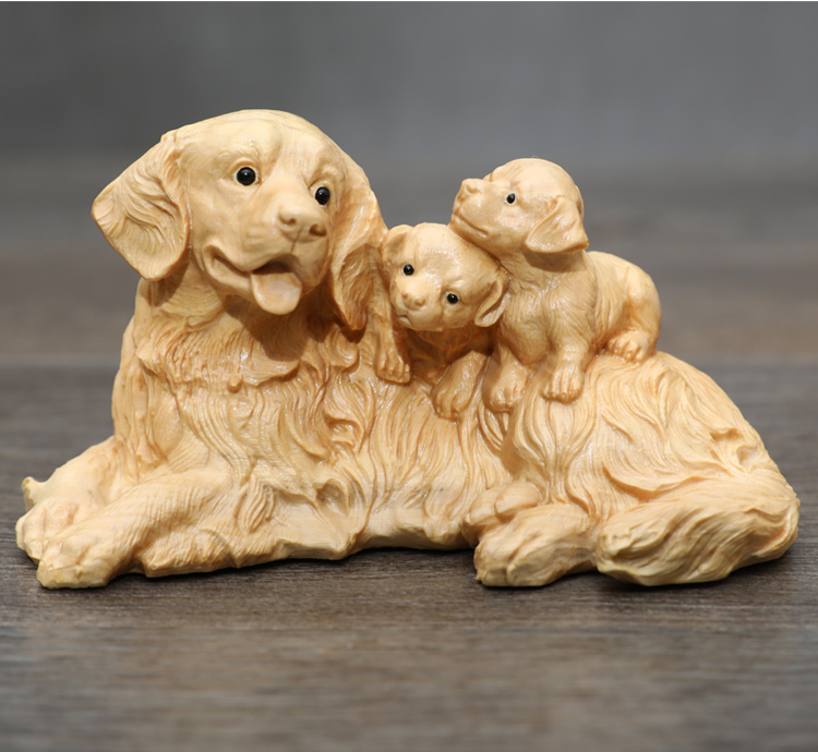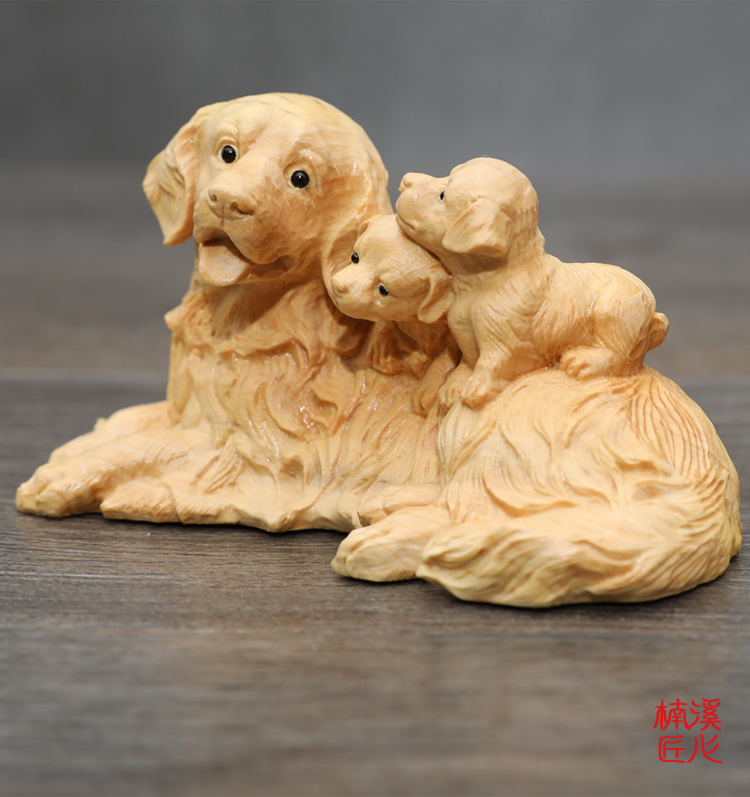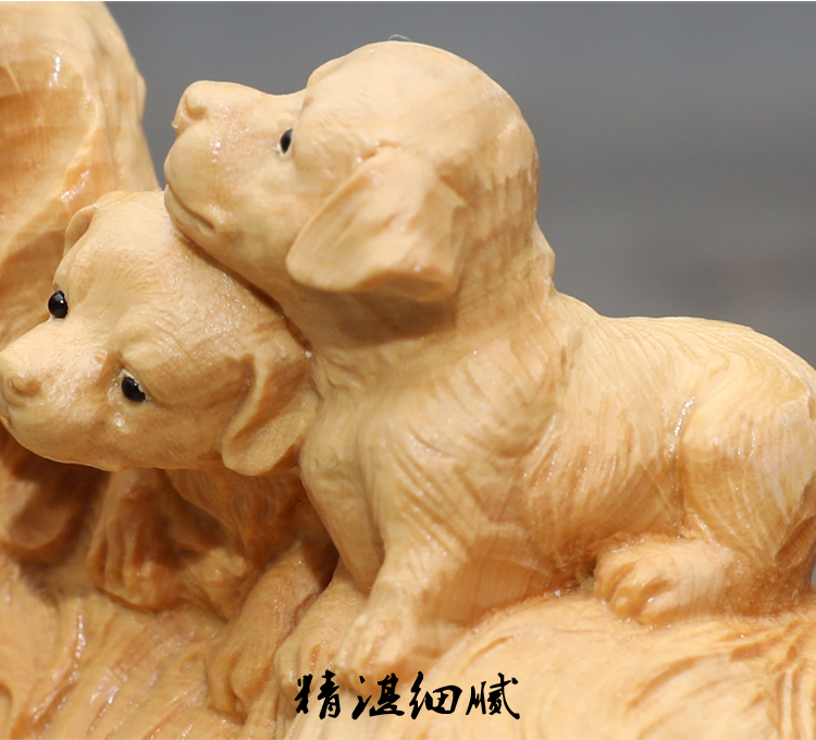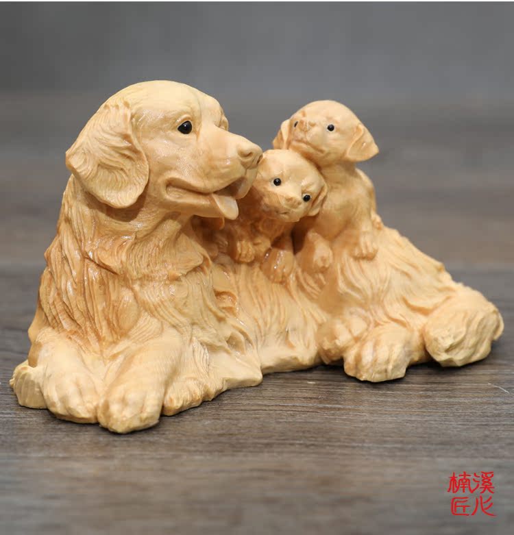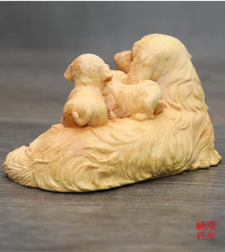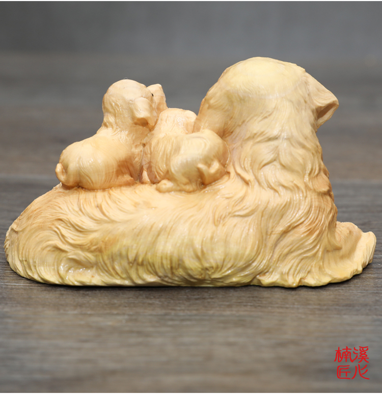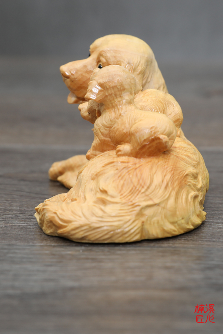 楠溪匠心親子母子黃楊木木雕狗狗擺件母愛情深吉祥如意旺財工藝品1入