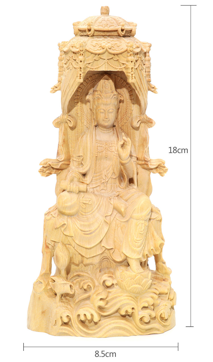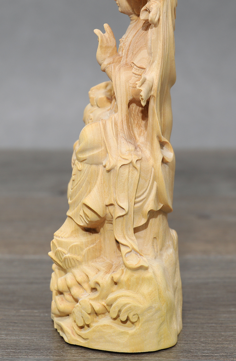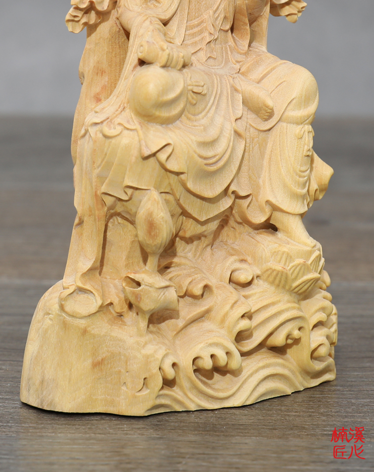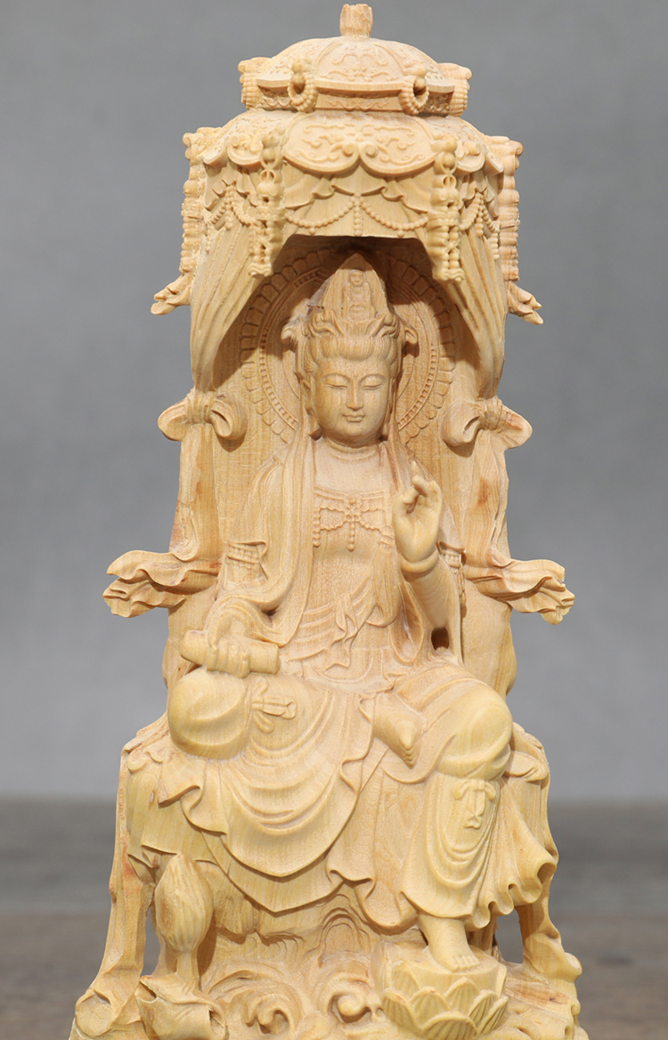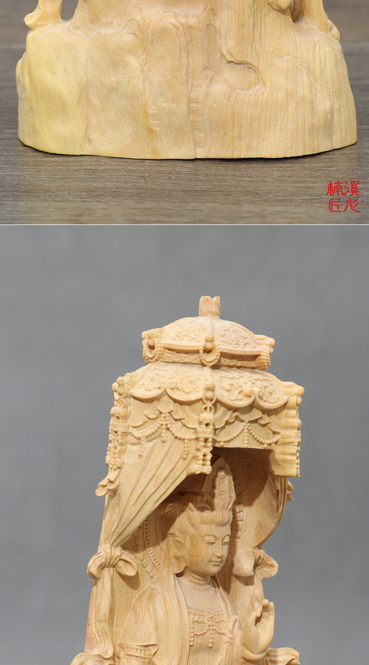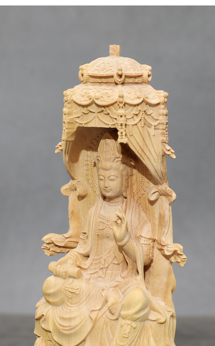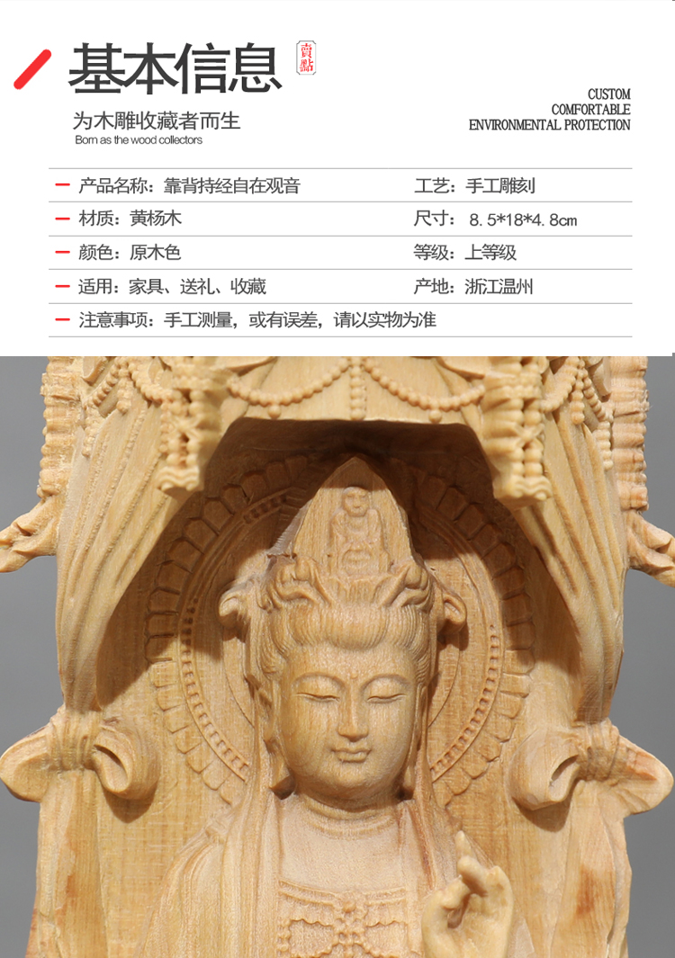 [2]楠溪匠心靠背持經自在觀音菩薩木雕佛像開業喬遷禮品玄關裝飾擺件1入