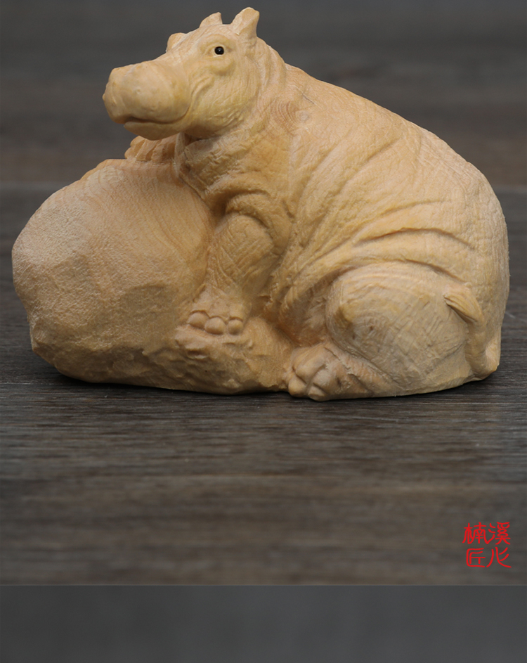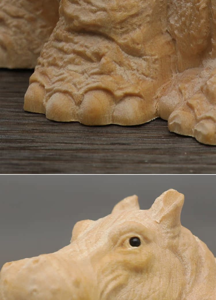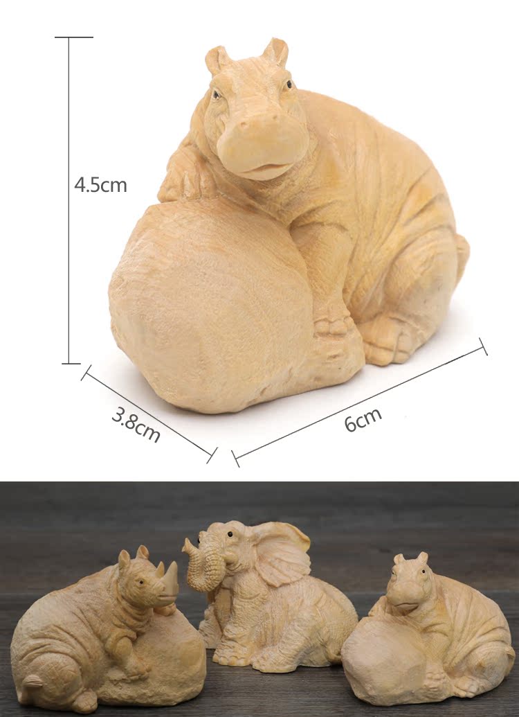 [2]楠溪匠心黃楊木雕手把件非洲三寶大象河馬犀牛手工家居動物小擺件1入