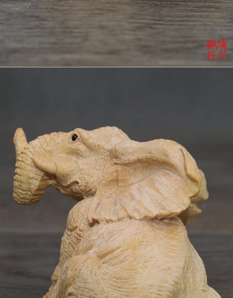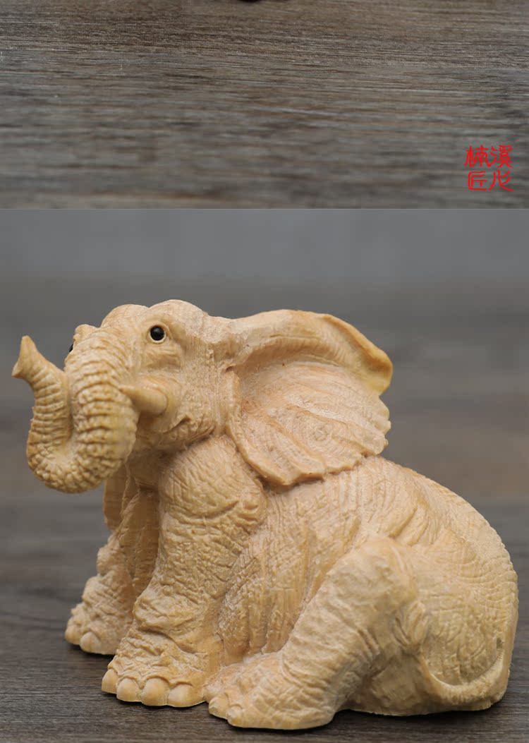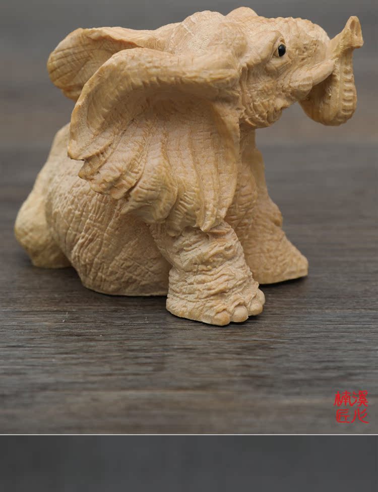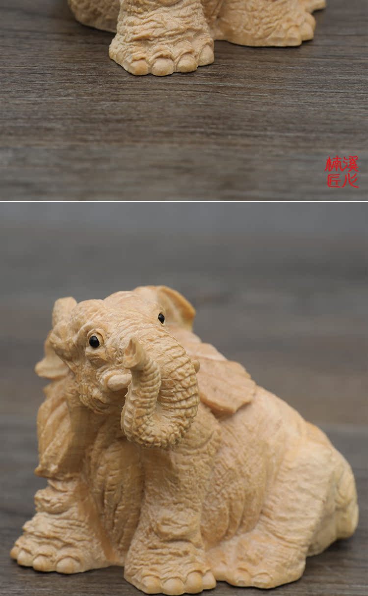 楠溪匠心黃楊木雕手把件非洲三寶大象河馬犀牛手工家居動物小擺件1入