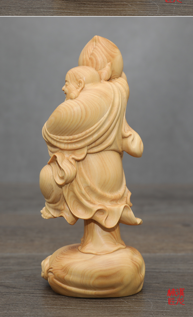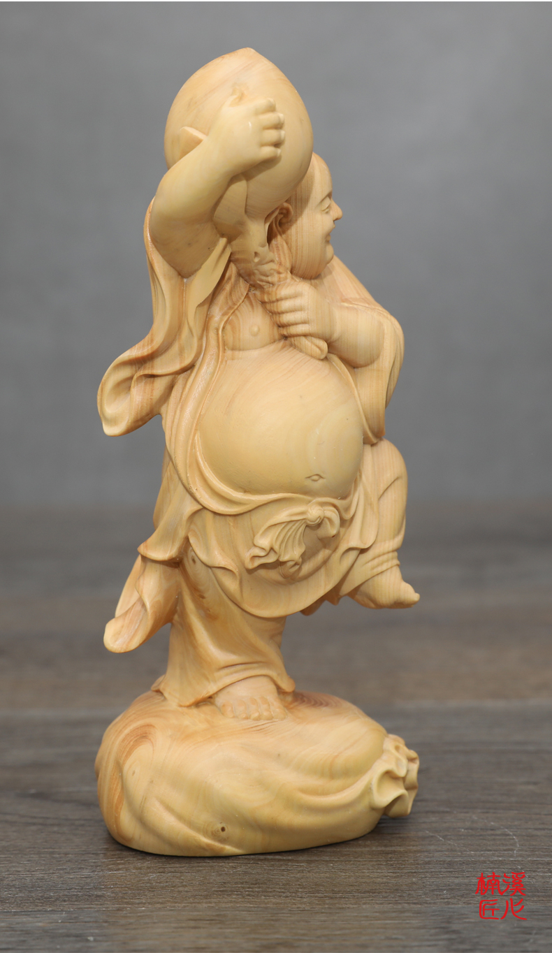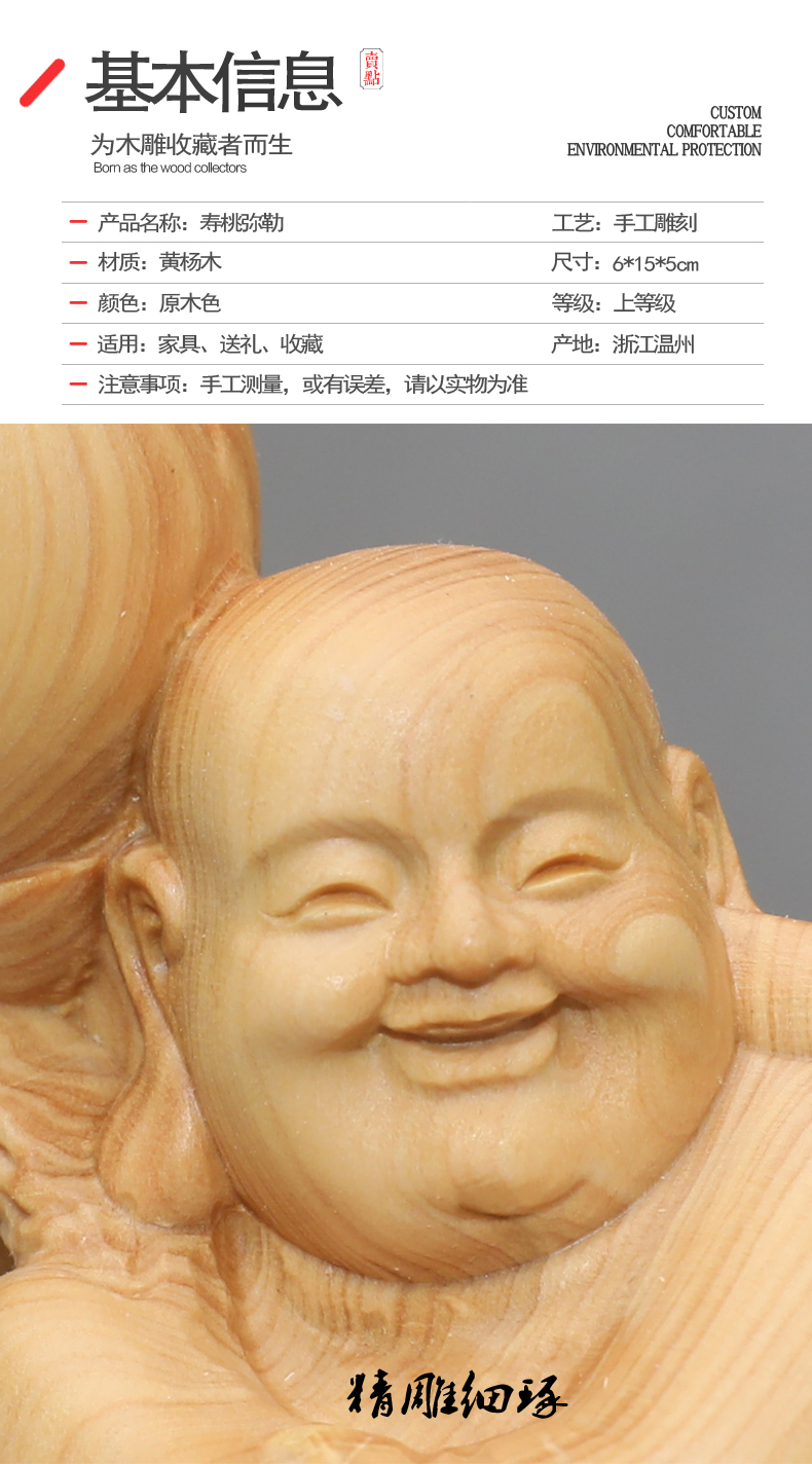 [2]楠溪匠心黃楊木雕刻壽桃彌勒佛像長輩生日壽禮健康長壽大肚佛笑佛1入