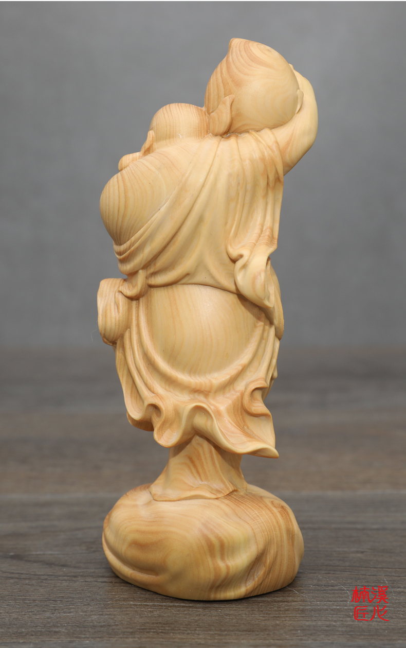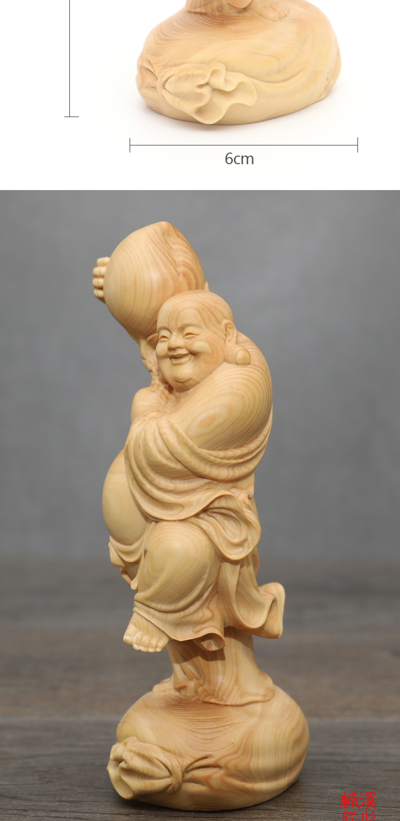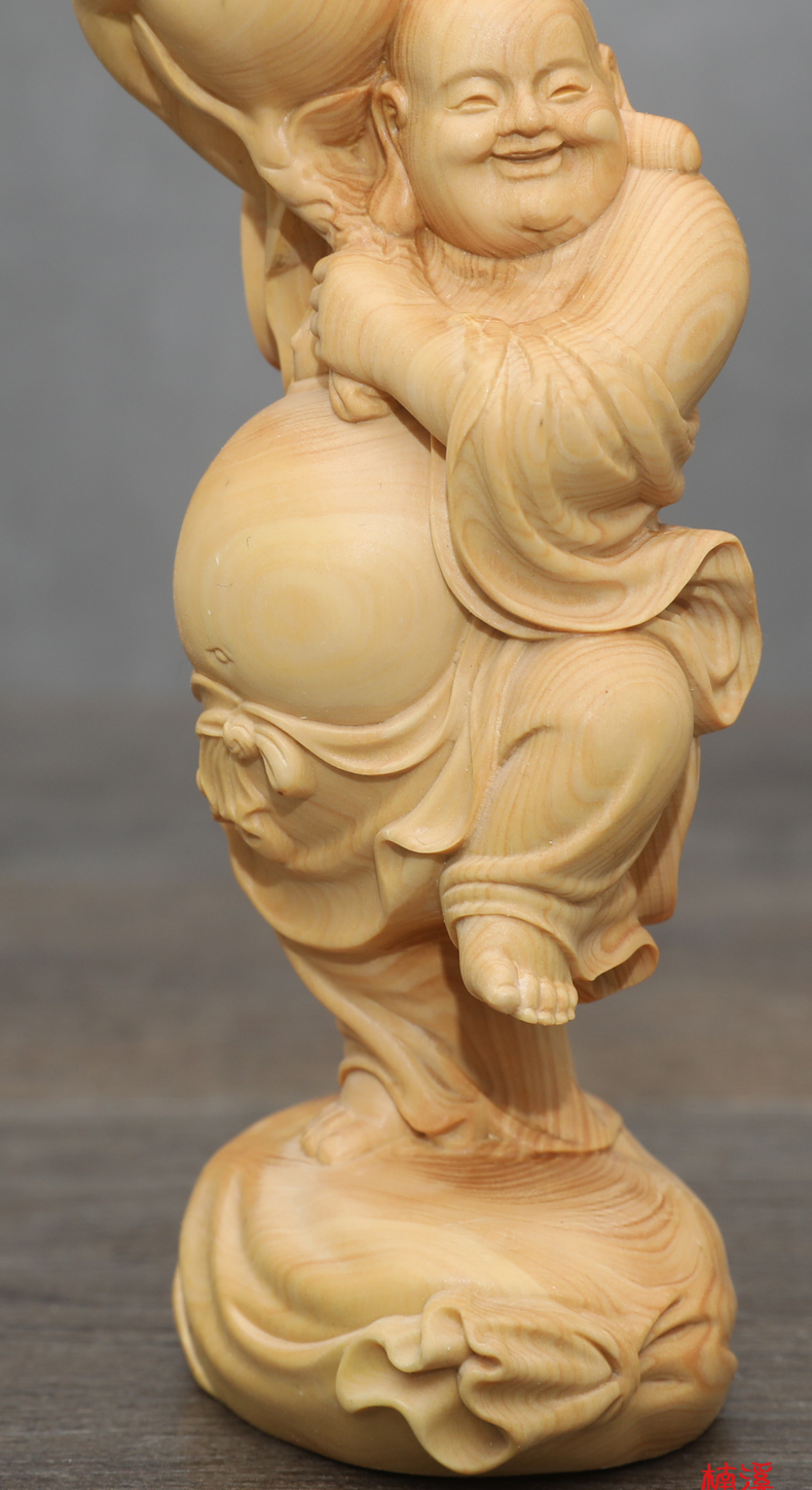 [2]楠溪匠心黃楊木雕刻壽桃彌勒佛像長輩生日壽禮健康長壽大肚佛笑佛1入