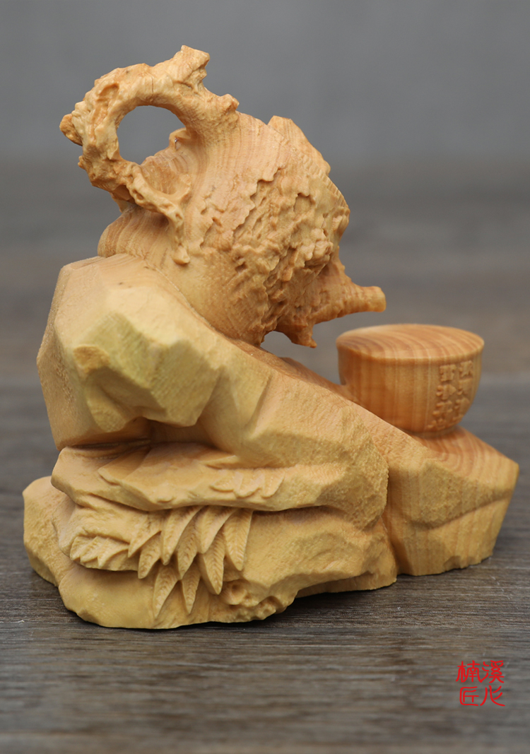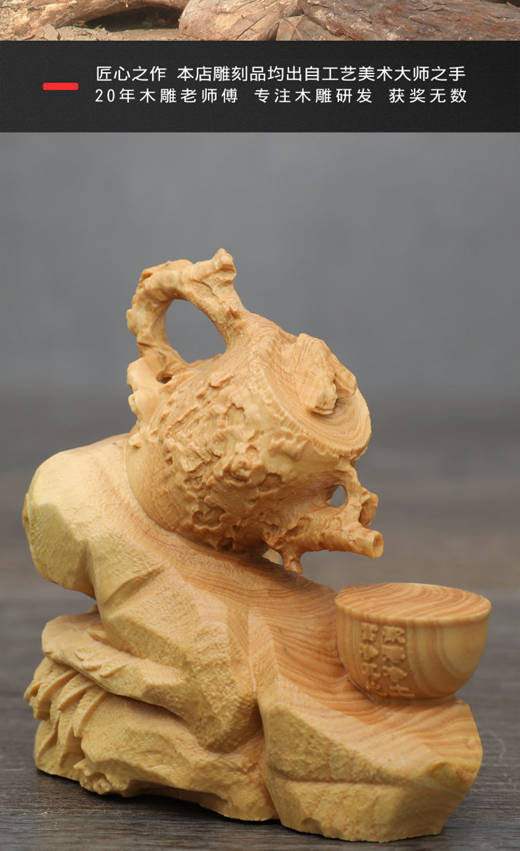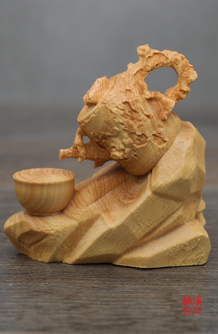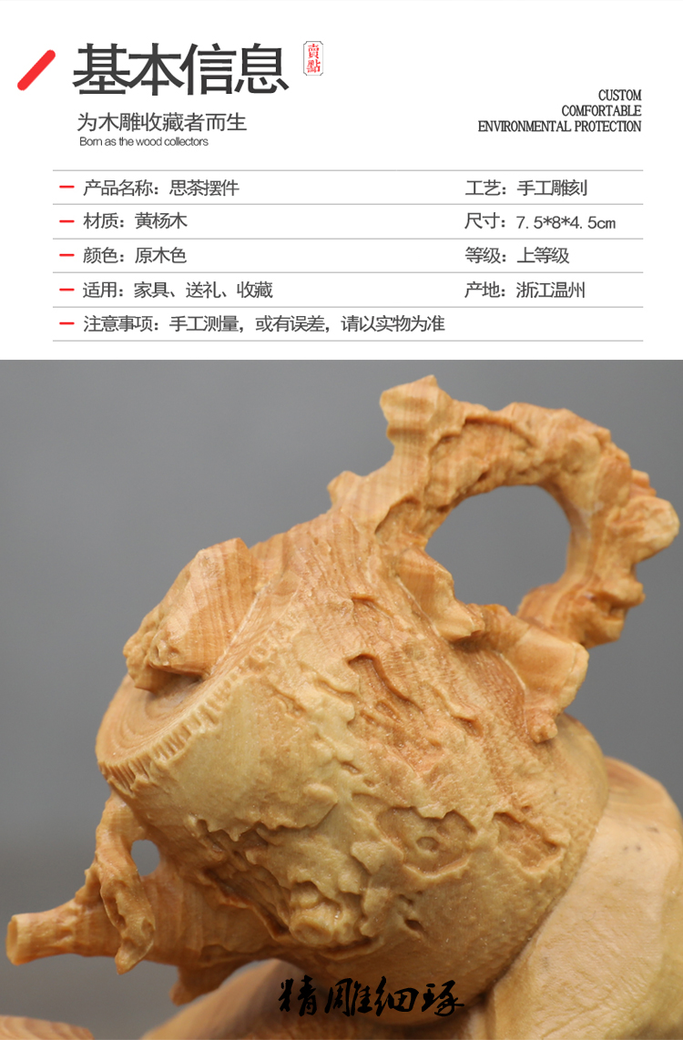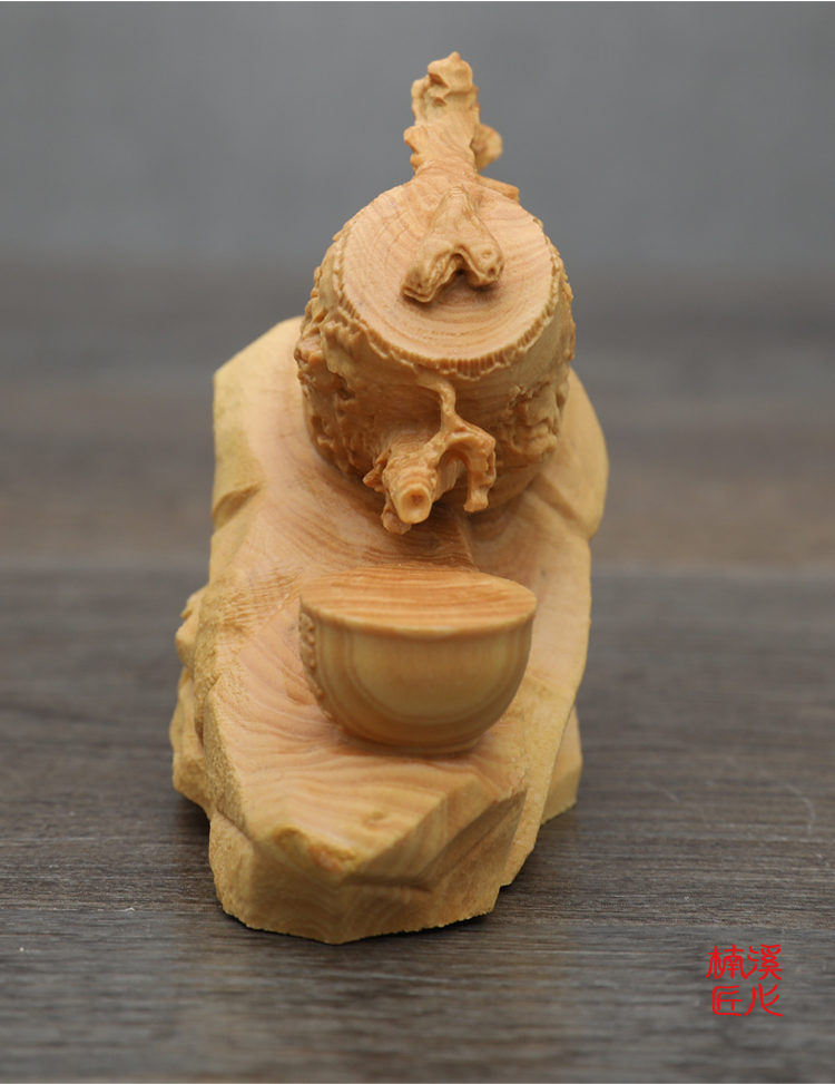 楠溪匠心黃楊木雕刻思茶工藝品小茶壺茶杯中式家居茶道禮品擺件1入