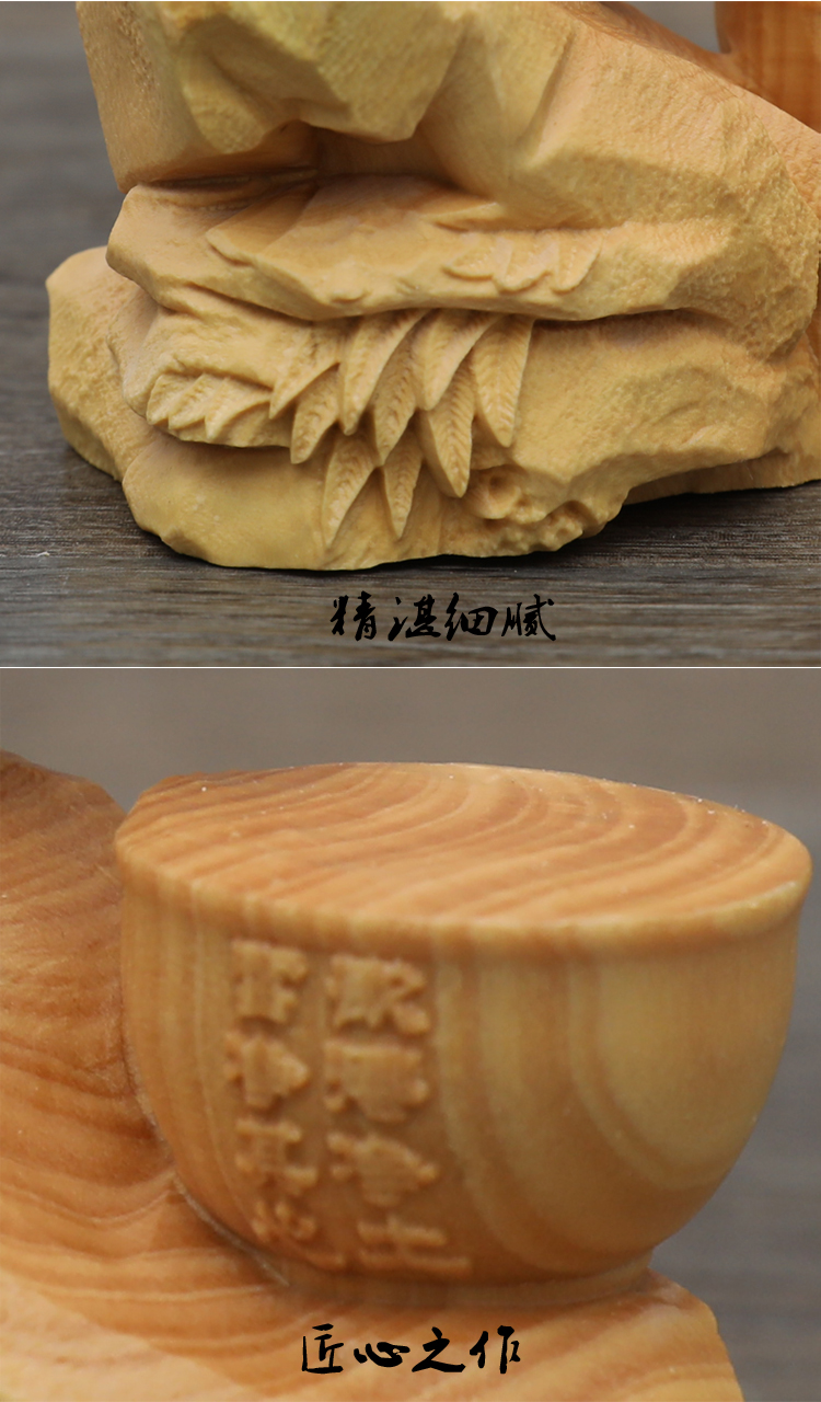 [2]楠溪匠心黃楊木雕刻思茶工藝品小茶壺茶杯中式家居茶道禮品擺件1入