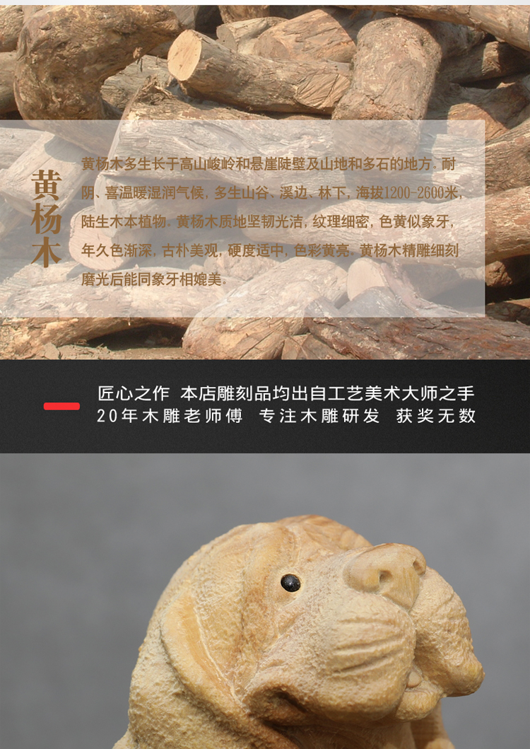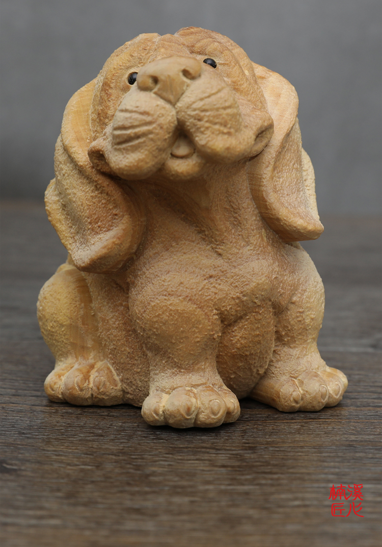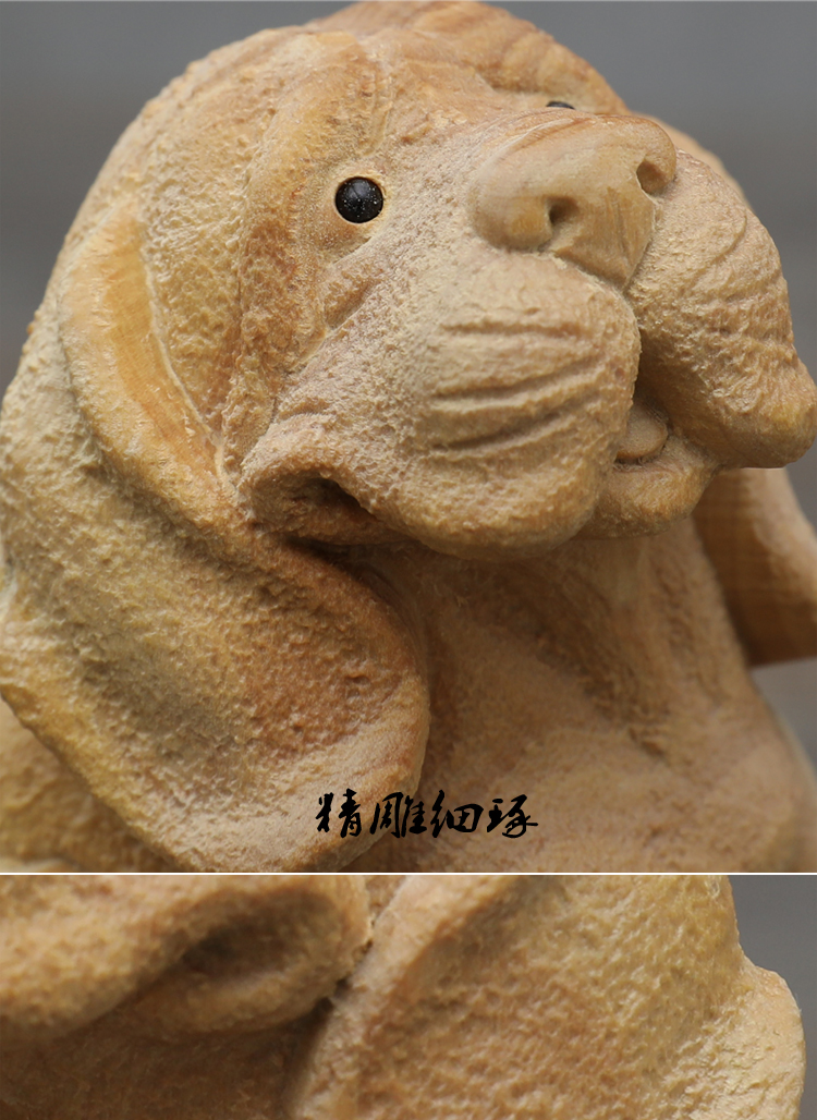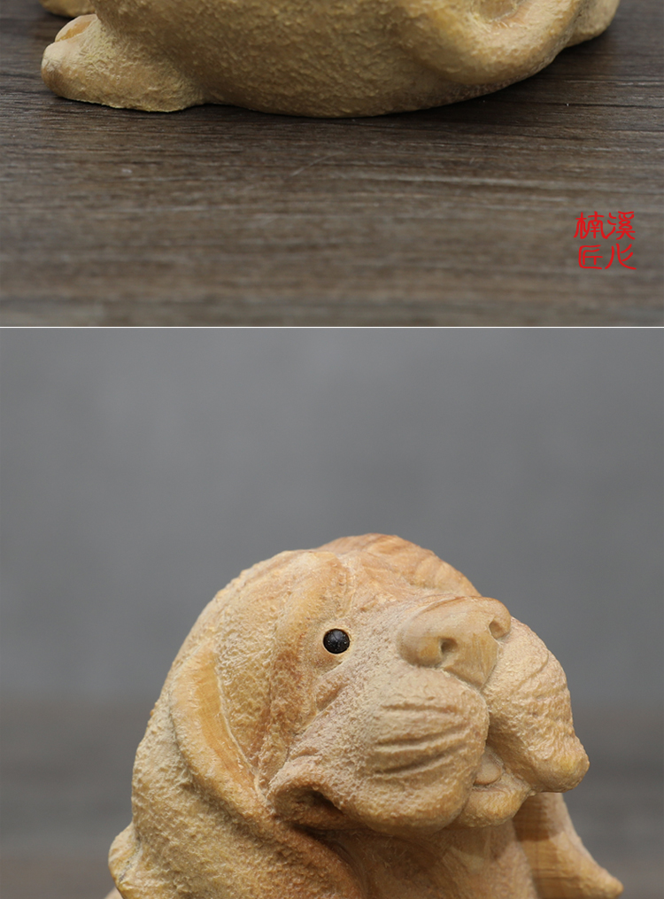 楠溪匠心吉祥物狗狗擺件家居臥室飾品狗工藝品12十二生肖黃楊木雕1入
