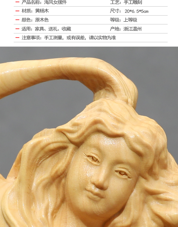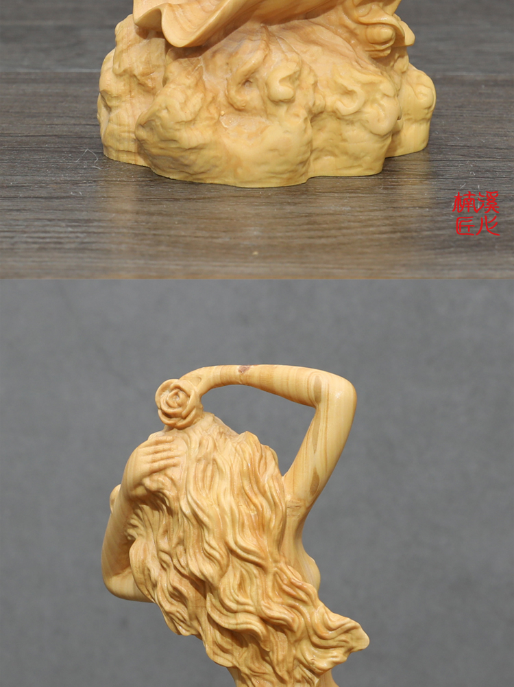 楠溪匠心海風女擺件創意家居裝飾手把件黃楊木吉祥物工藝品禮品1入