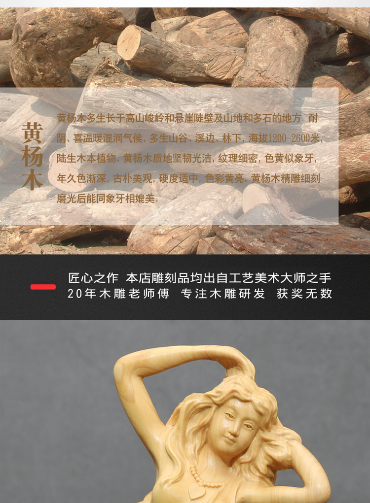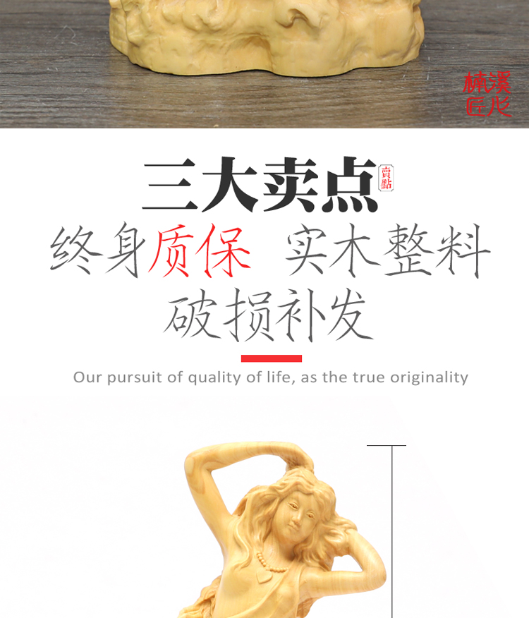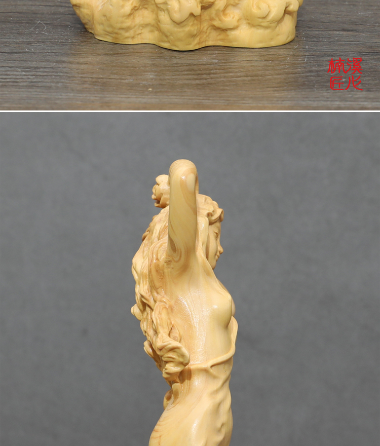 [2]楠溪匠心海風女擺件創意家居裝飾手把件黃楊木吉祥物工藝品禮品1入