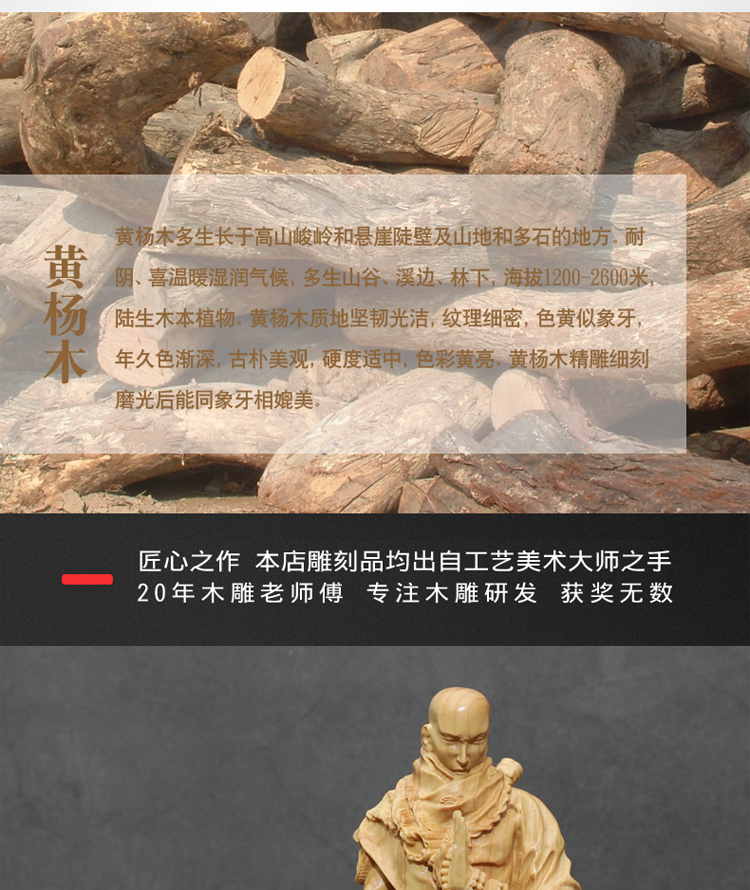 [2]楠溪匠心黃楊木雕武僧擺件大和尚家居辦公室風水收藏藝術文化禮品1入