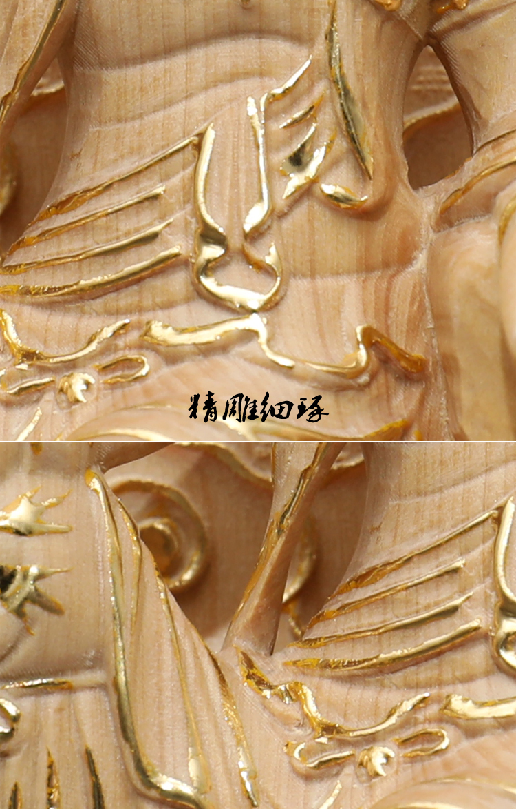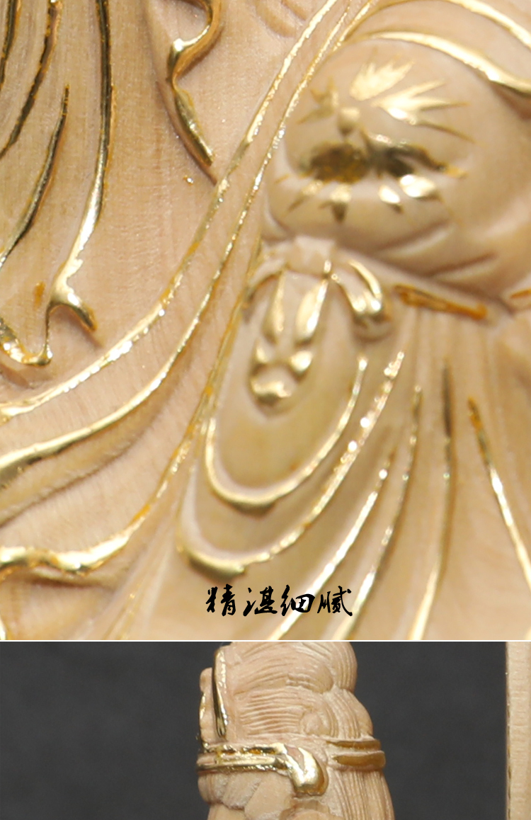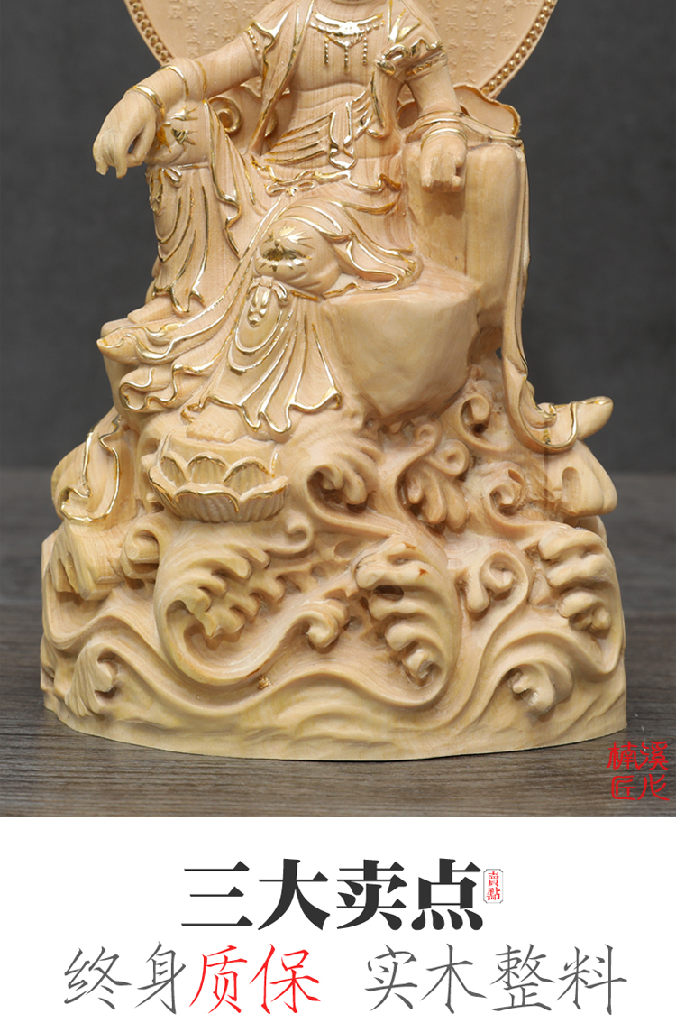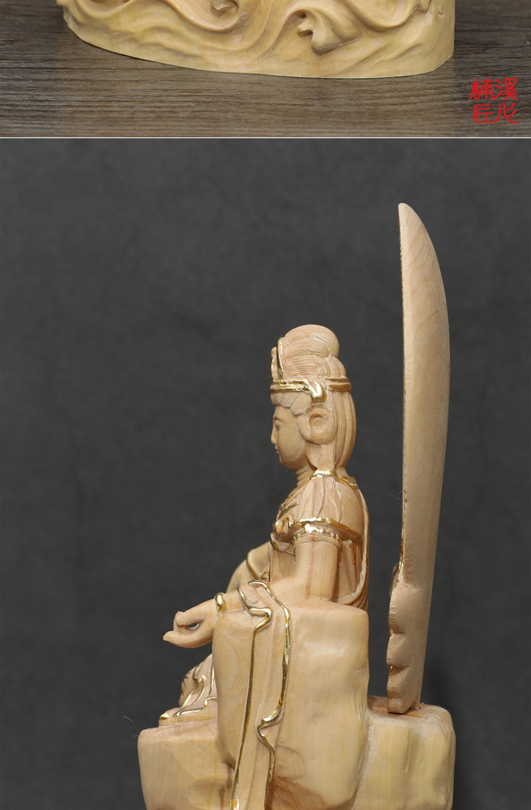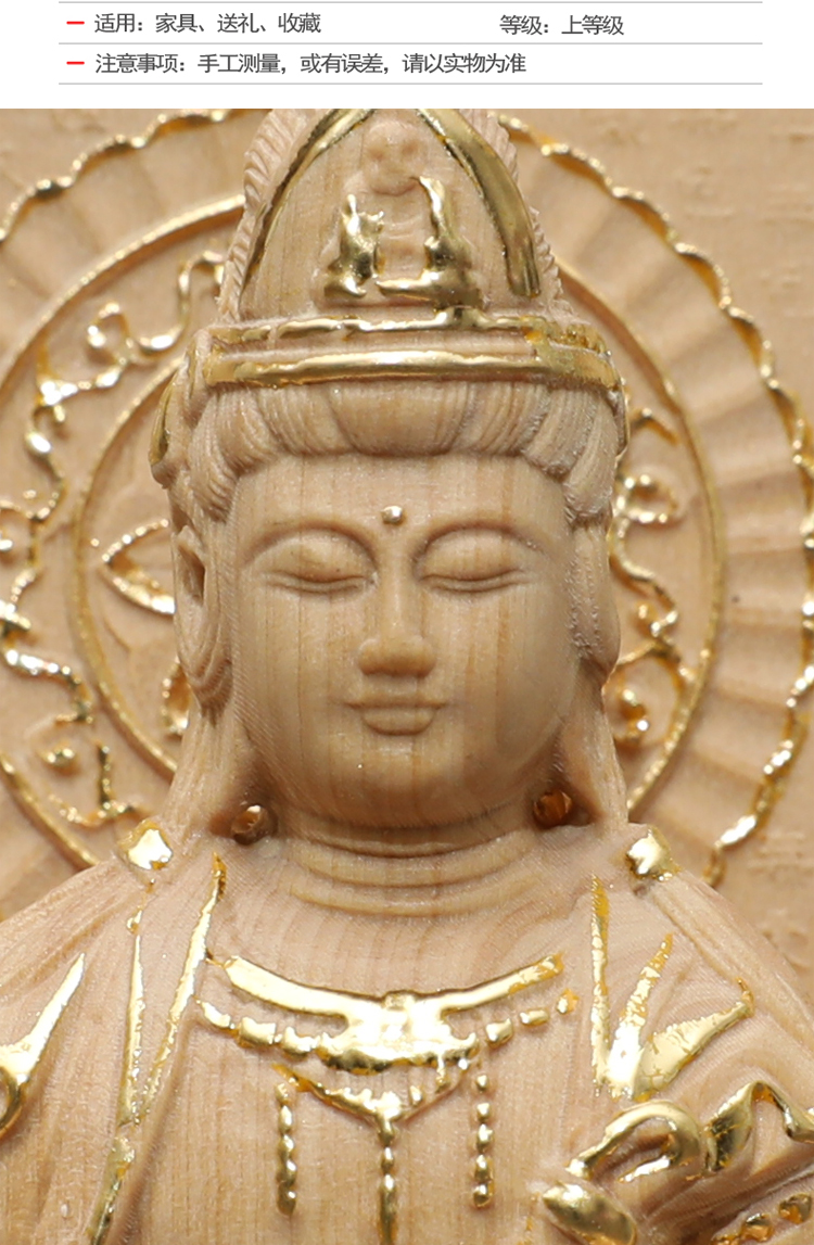 [2]楠溪匠心黃楊木觀音佛像貼金木雕觀世音菩薩佛教神像阿彌陀佛擺件1入