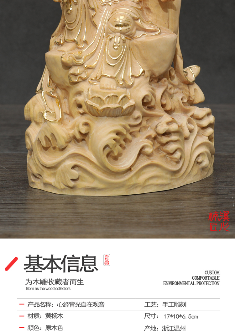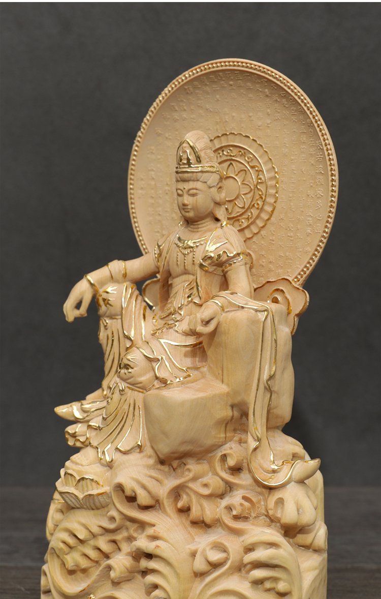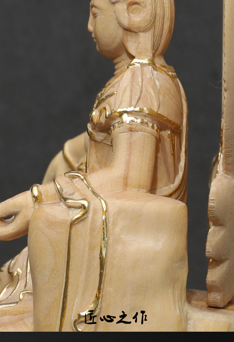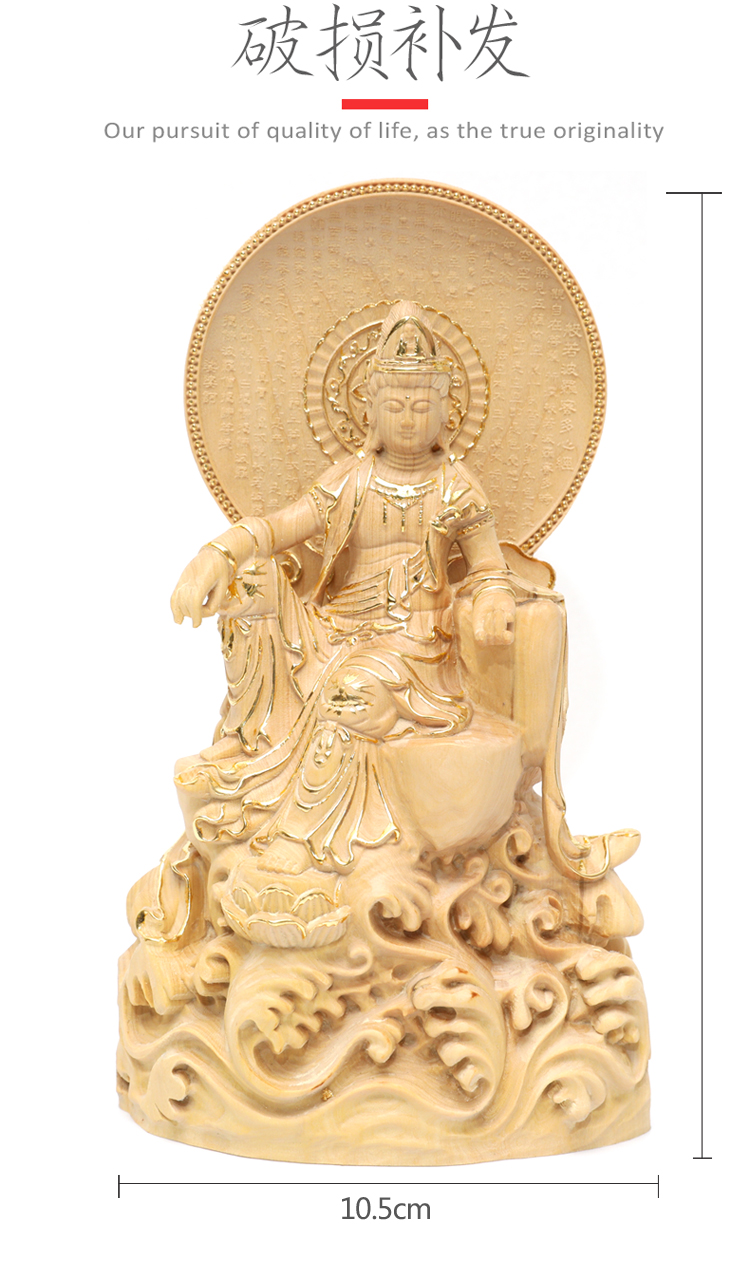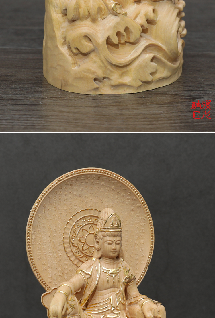 [2]楠溪匠心黃楊木觀音佛像貼金木雕觀世音菩薩佛教神像阿彌陀佛擺件1入