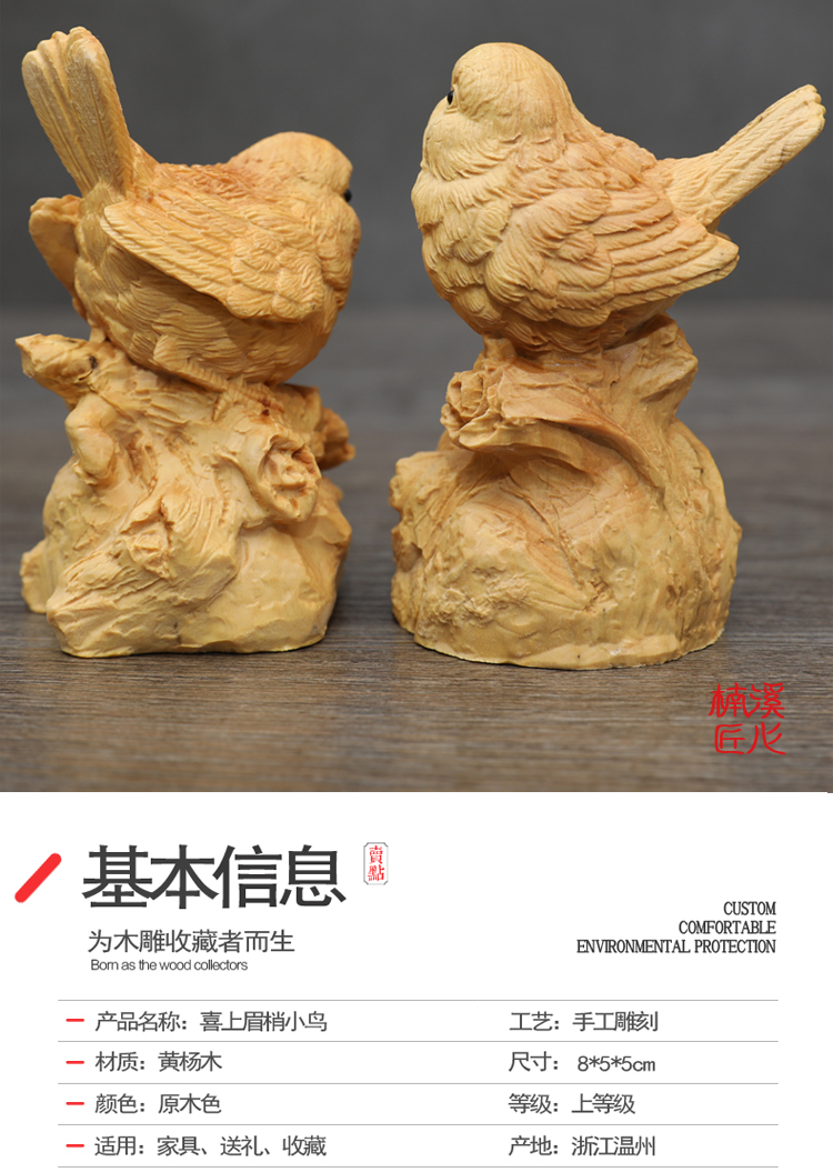 楠溪匠心黃楊木雕喜上眉梢擺件創意結婚禮物家居工藝品吉祥物禮品1入
