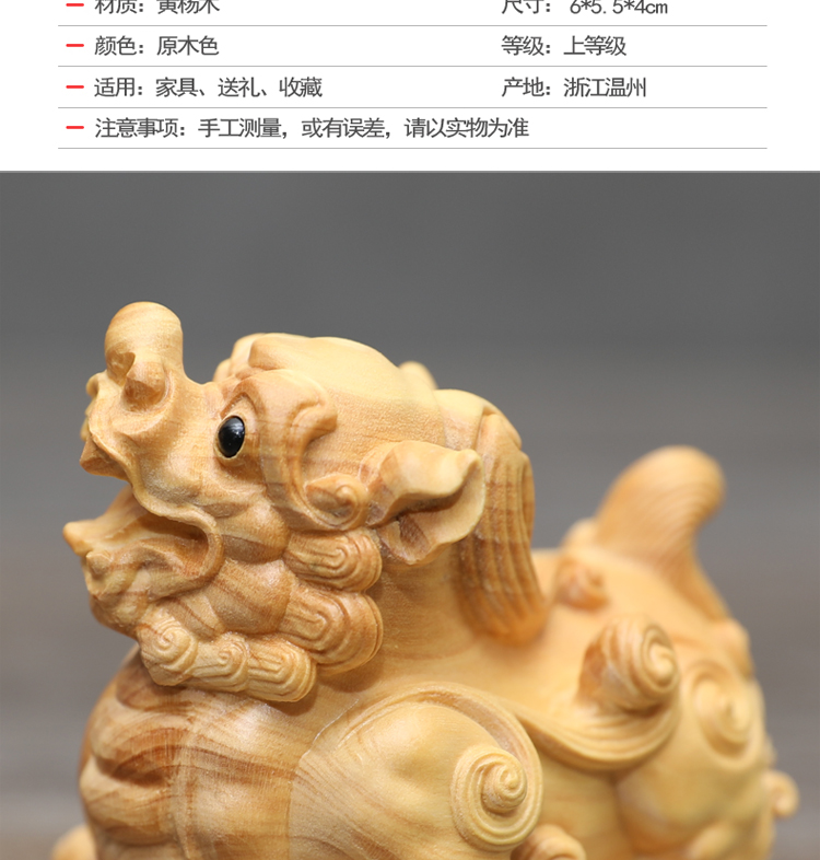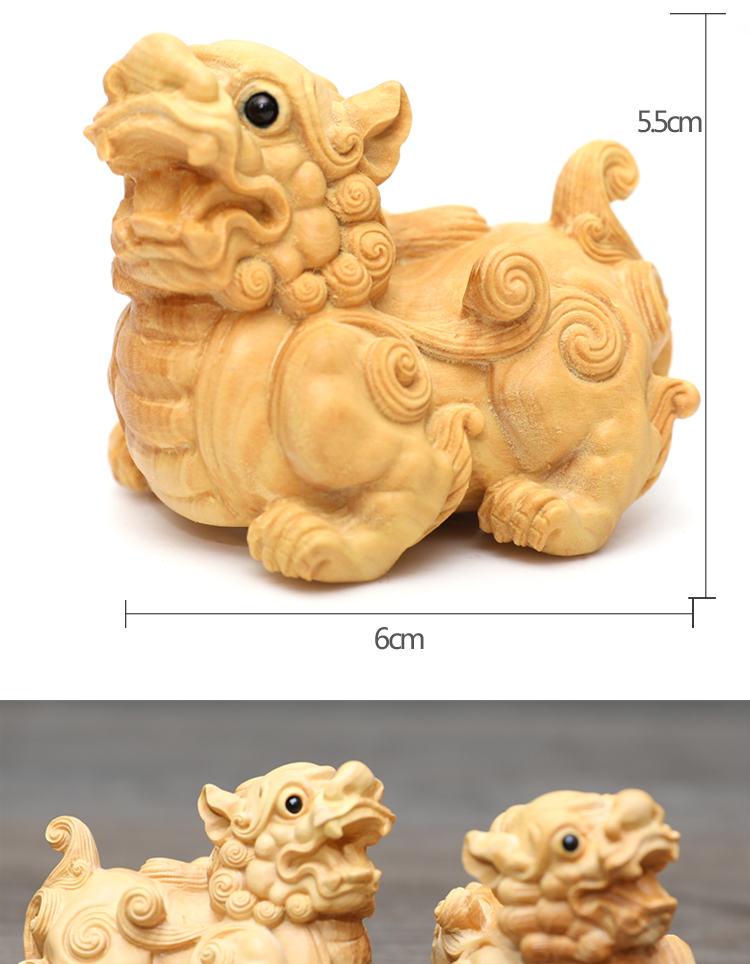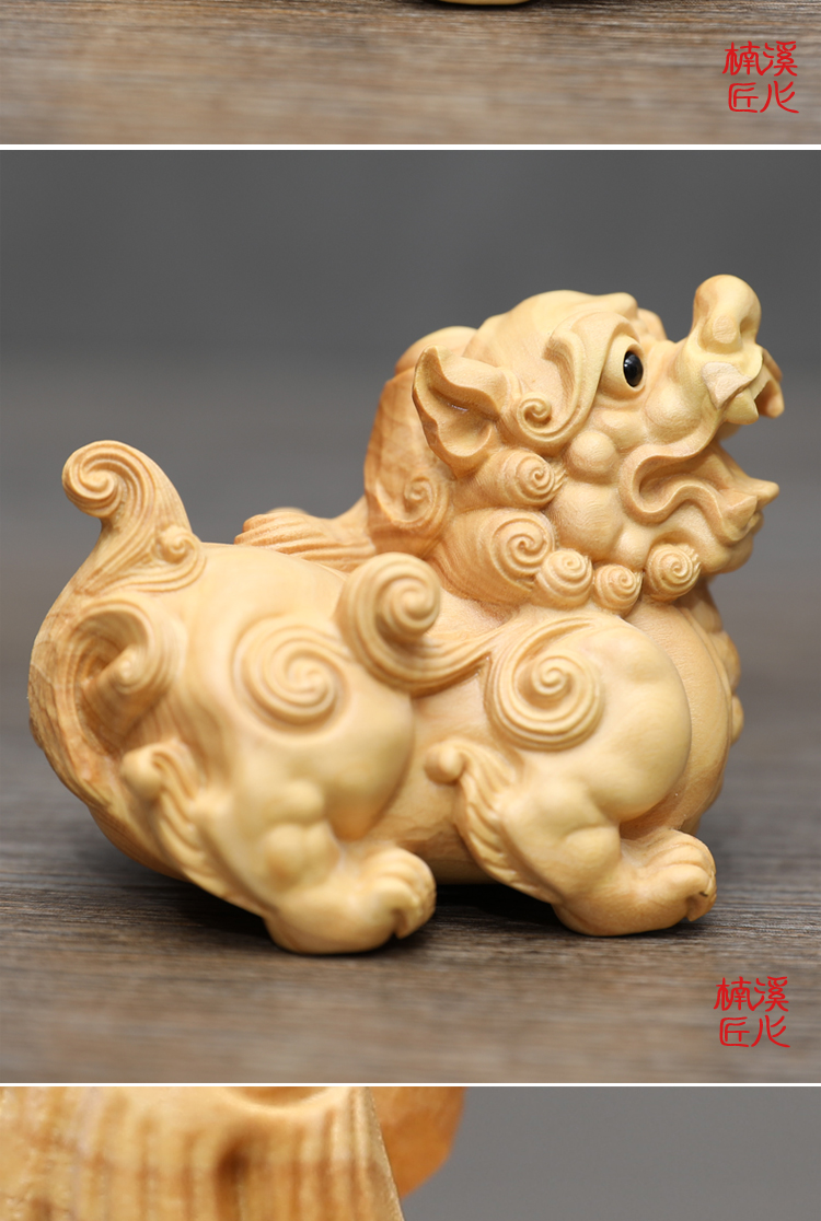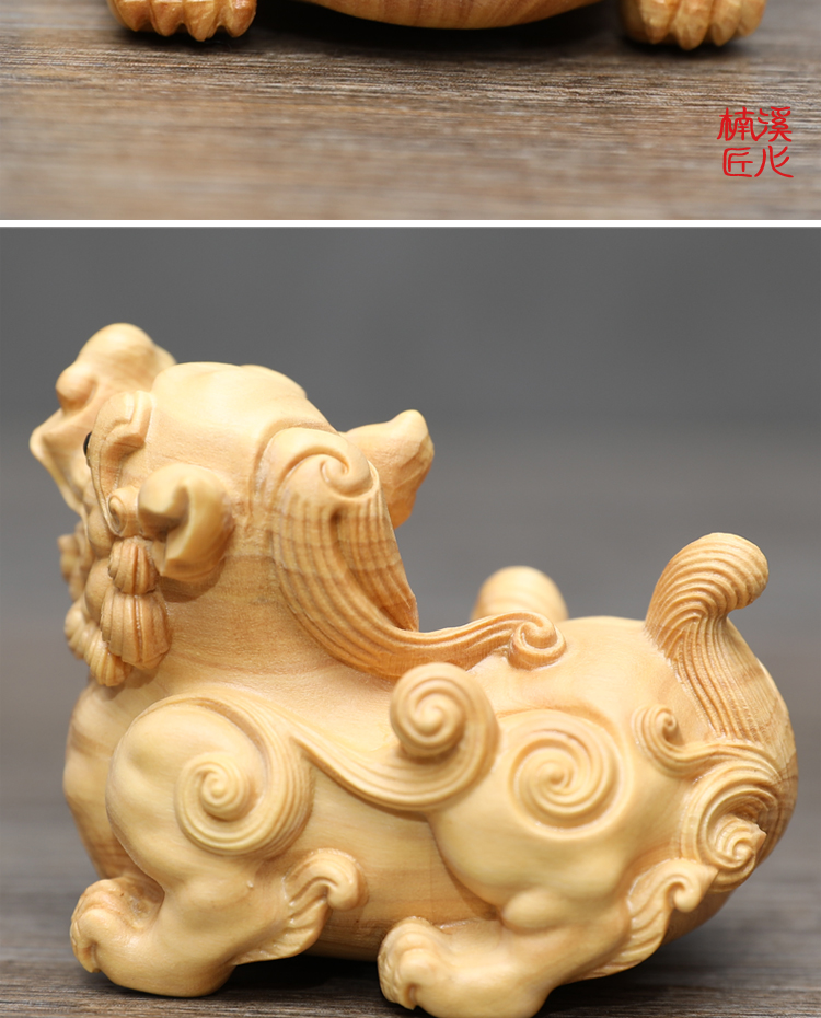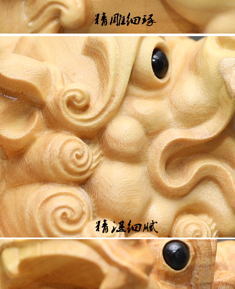 楠溪匠心招財貔貅擺件鎮宅商務辦公室工藝品黃楊木雕刻小號樂清雕1入