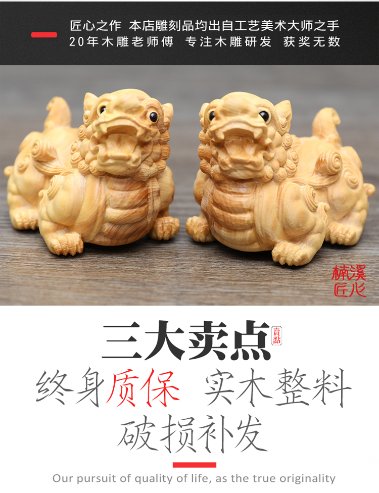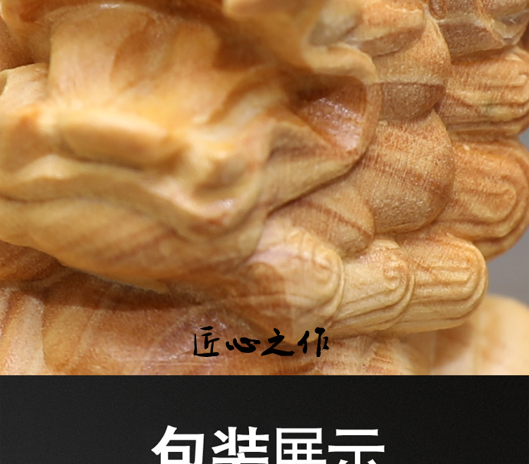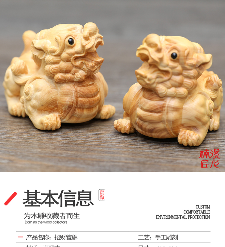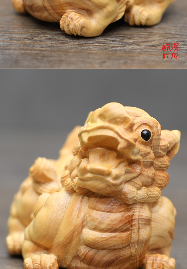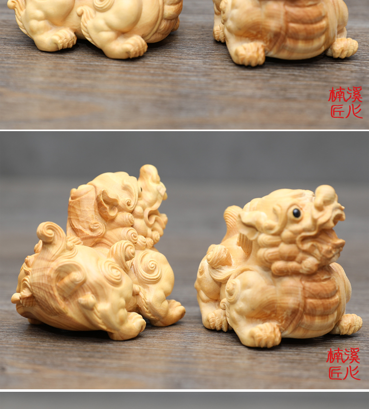 楠溪匠心招財貔貅擺件鎮宅商務辦公室工藝品黃楊木雕刻小號樂清雕1入