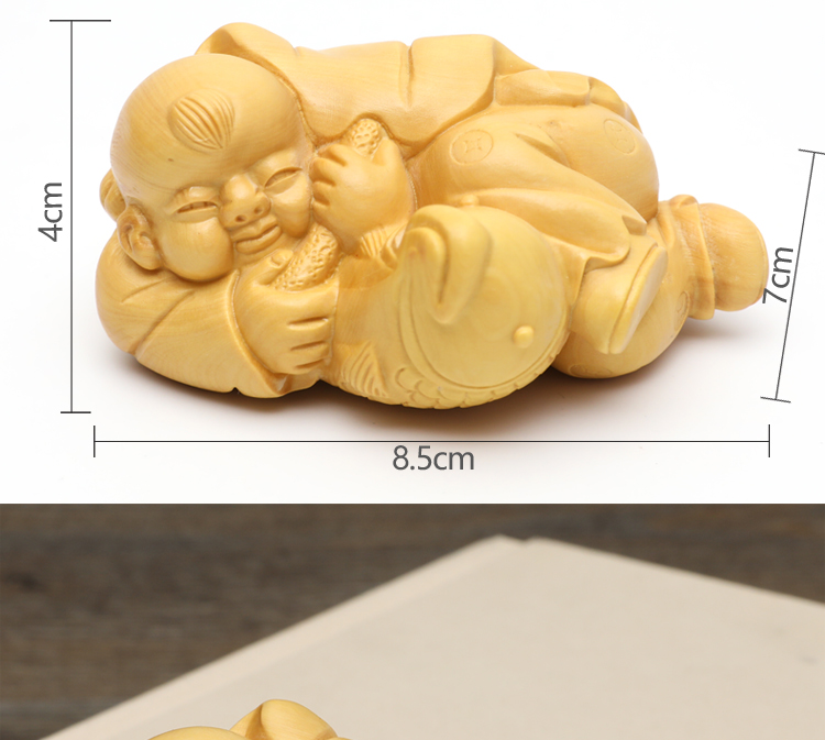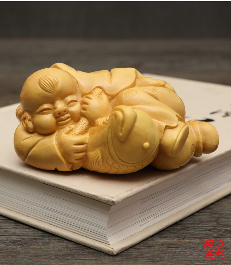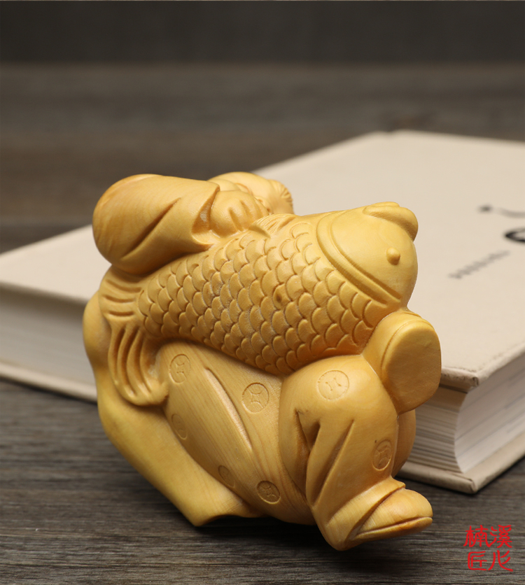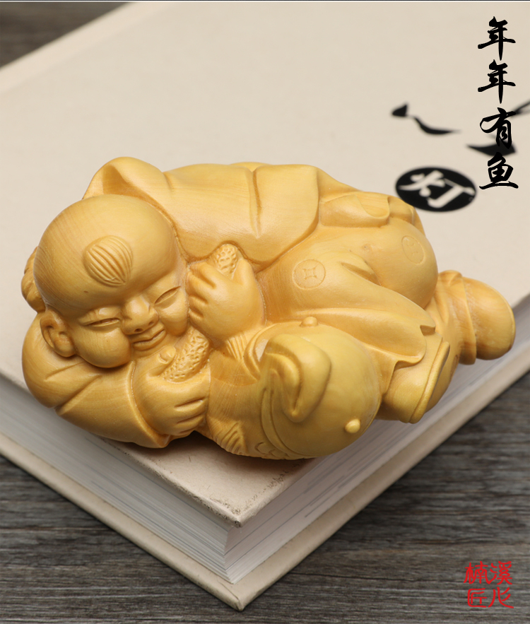 [2]楠溪匠心黃楊木雕年年有余家居擺件實木雕刻手把件年年有魚工藝品1入