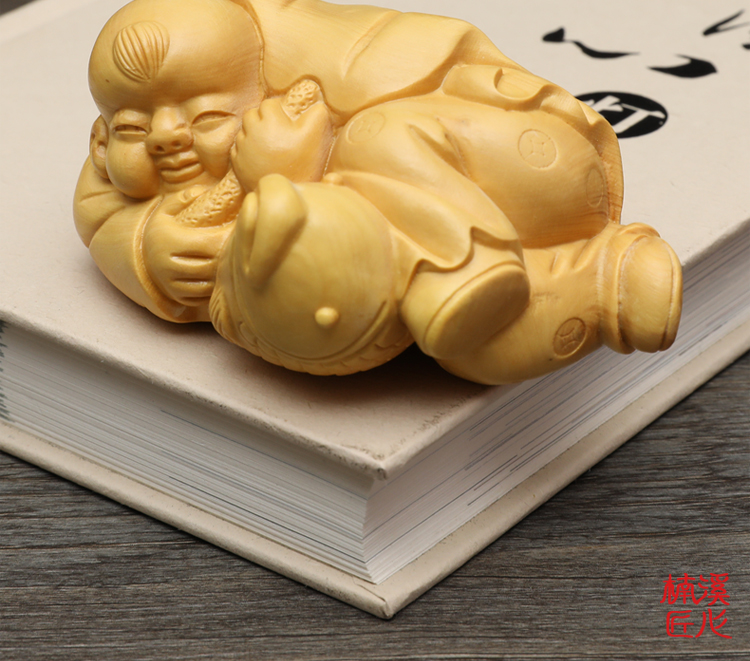 楠溪匠心黃楊木雕年年有余家居擺件實木雕刻手把件年年有魚工藝品1入