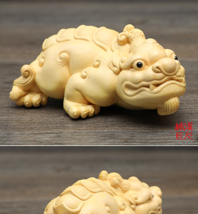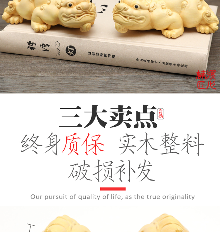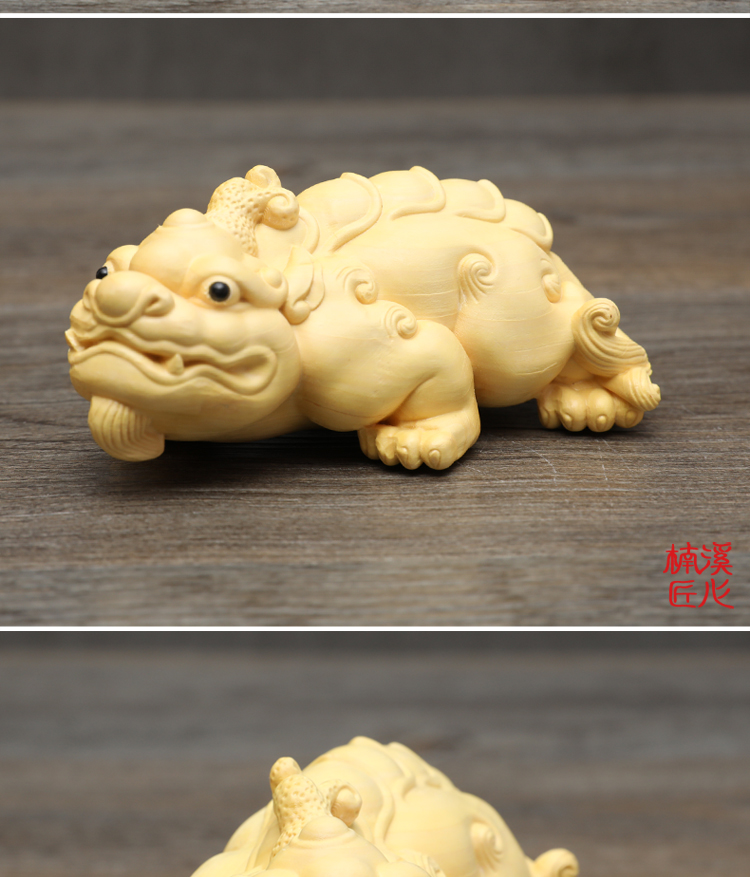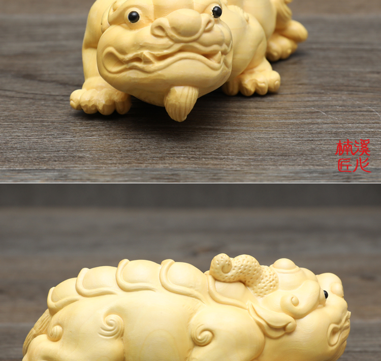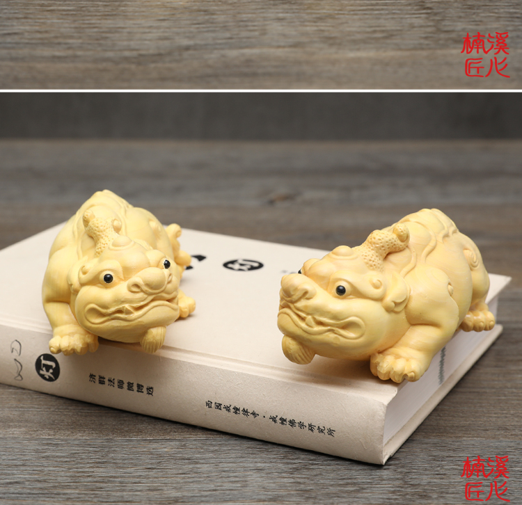 [2]楠溪匠心木雕擺件貔貅一對黃楊木工藝品招財轉運家居擺件實木雕刻1入