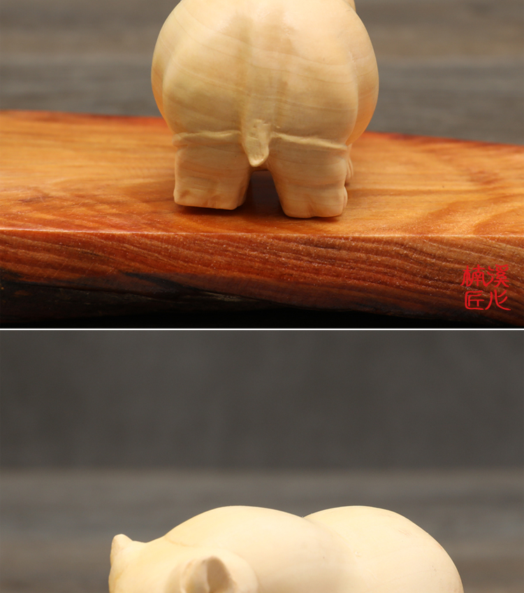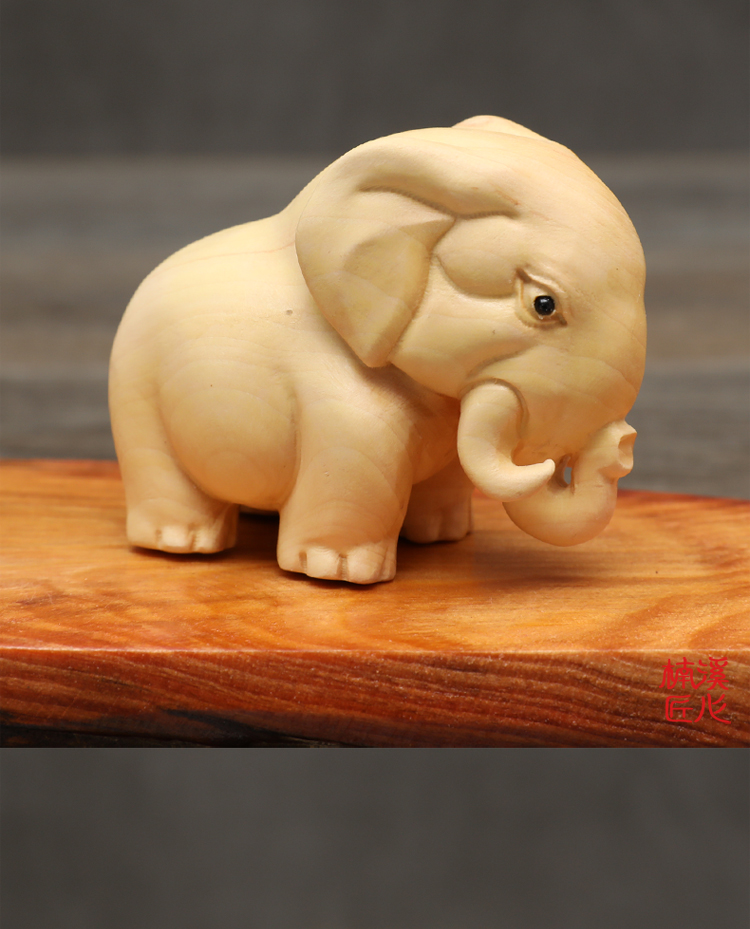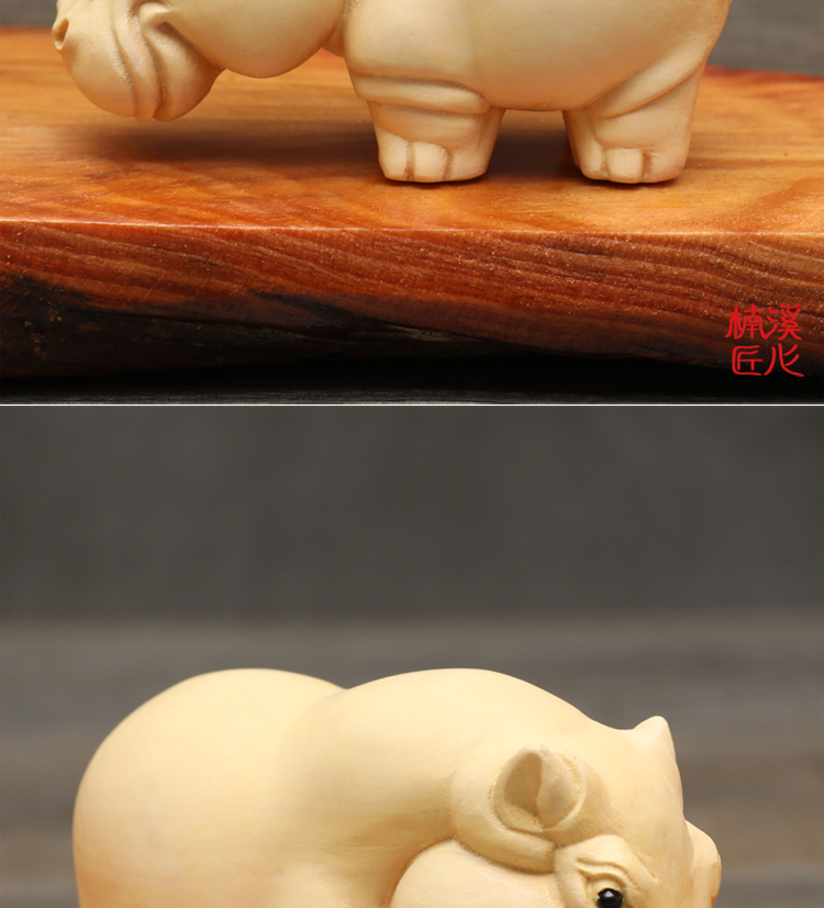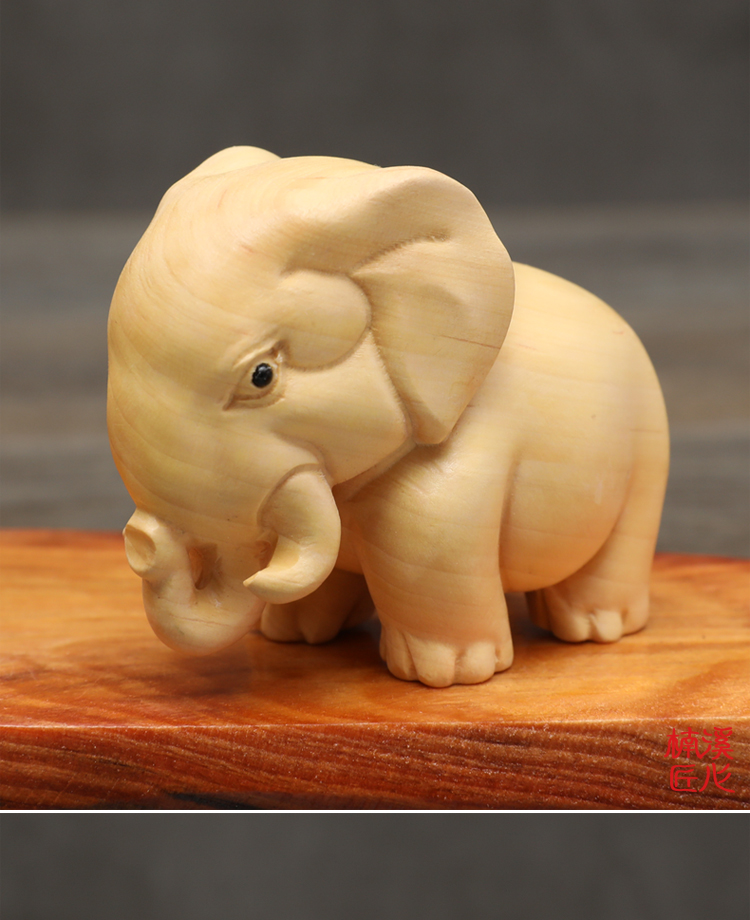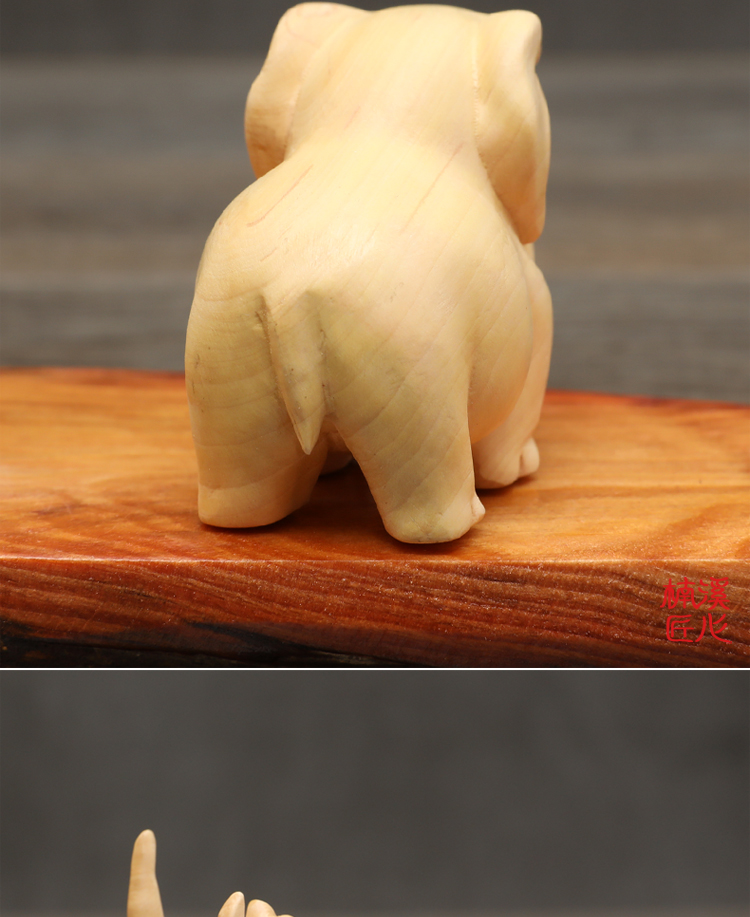 [2]楠溪匠心黃楊木雕手把件文玩家居動物小擺件犀牛大象河馬非洲三寶1入