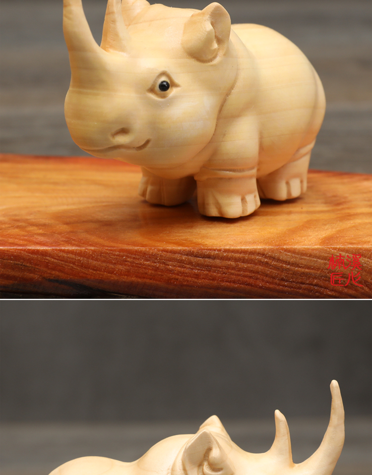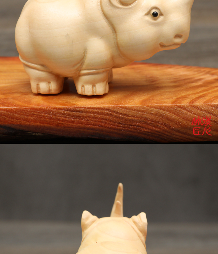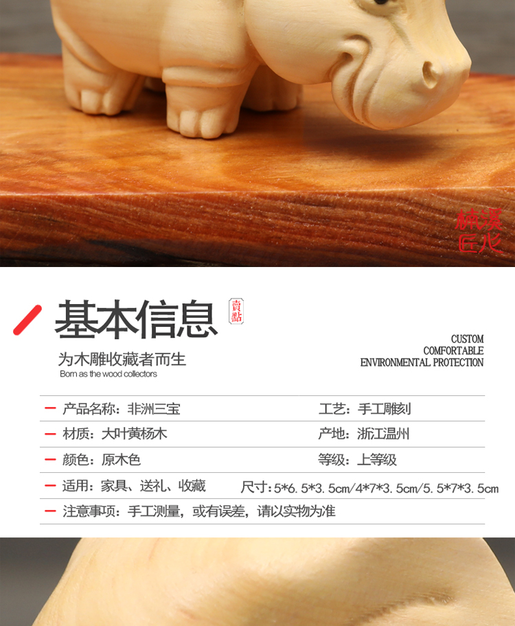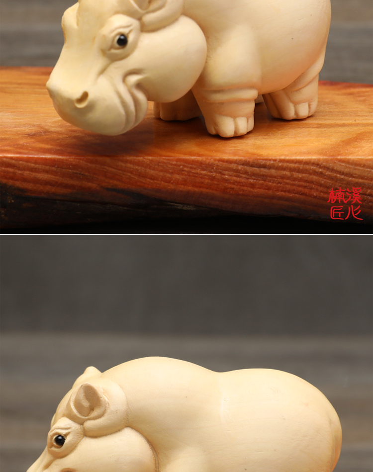 楠溪匠心黃楊木雕手把件文玩家居動物小擺件犀牛大象河馬非洲三寶1入