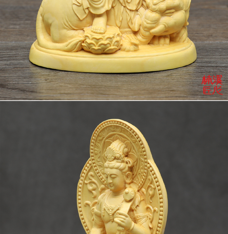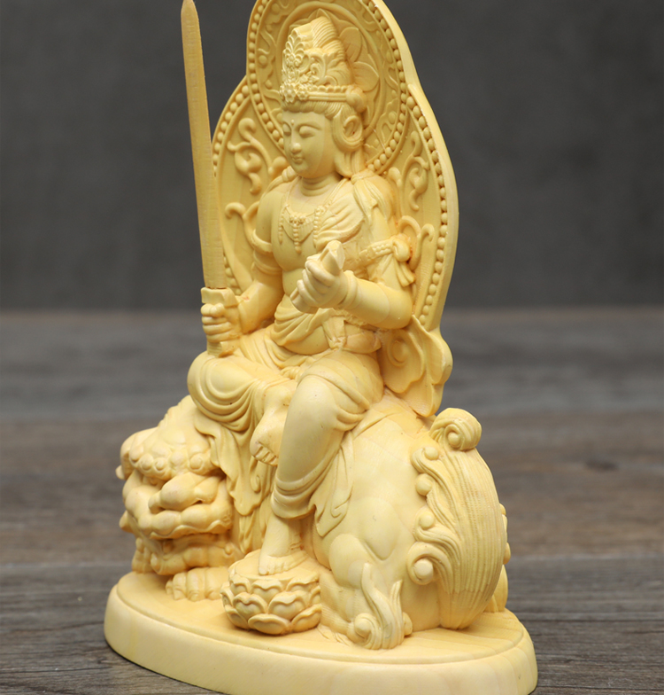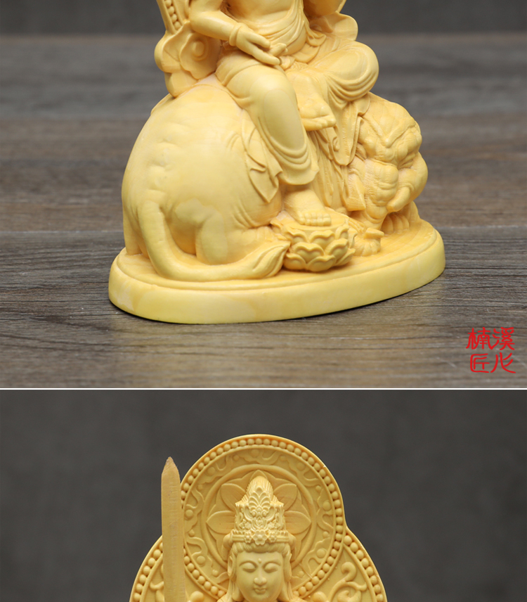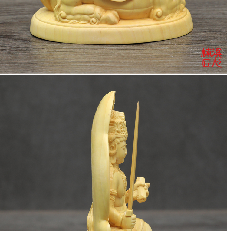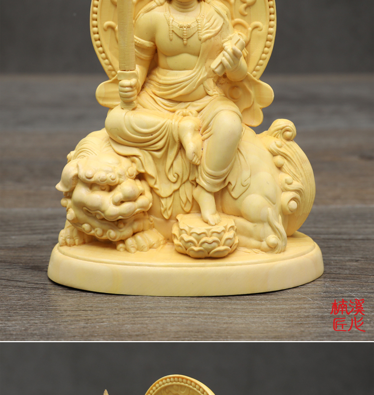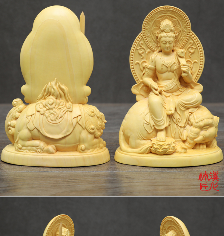 [2]楠溪匠心黃楊木雕佛教文殊普賢菩薩佛像家居寺廟神像供奉擺件雕刻1入