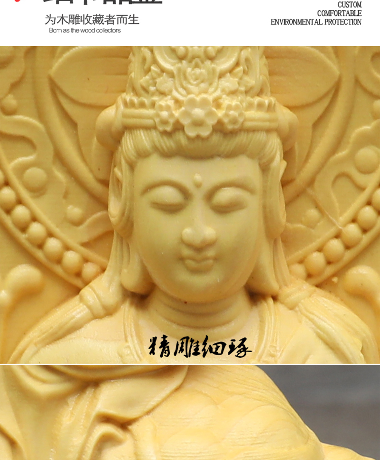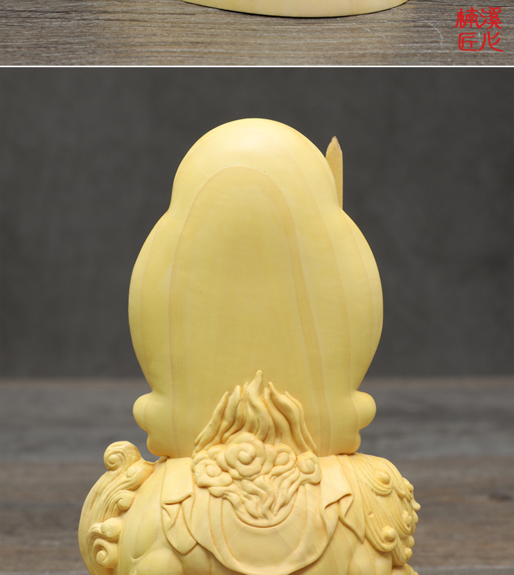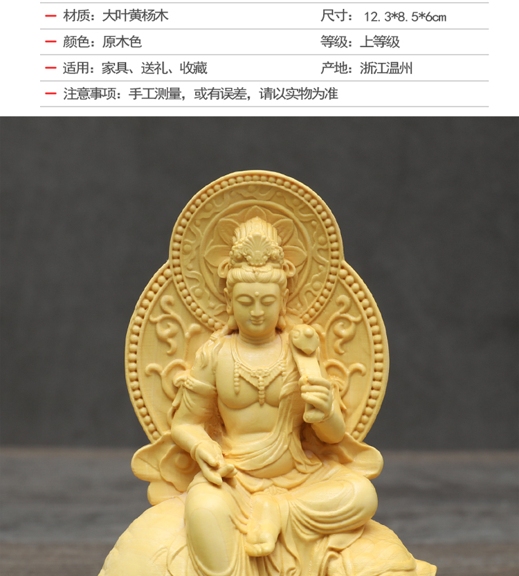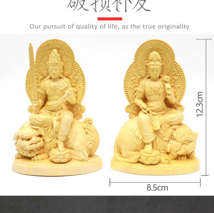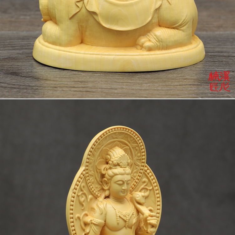 [2]楠溪匠心黃楊木雕佛教文殊普賢菩薩佛像家居寺廟神像供奉擺件雕刻1入