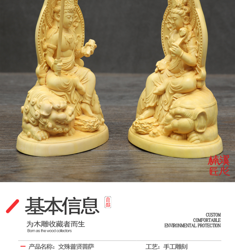 楠溪匠心黃楊木雕佛教文殊普賢菩薩佛像家居寺廟神像供奉擺件雕刻1入