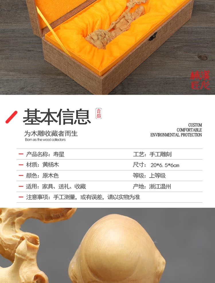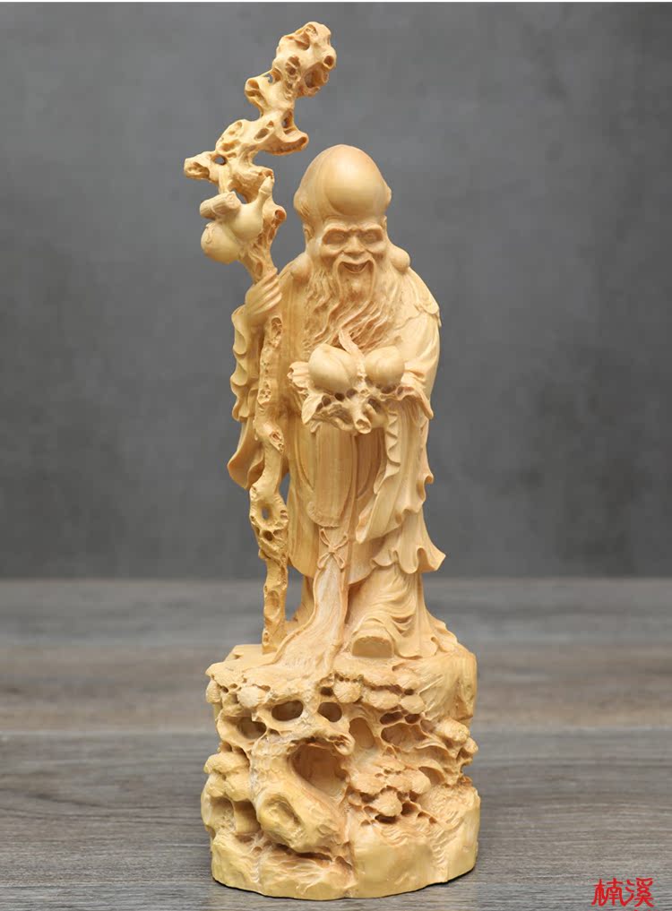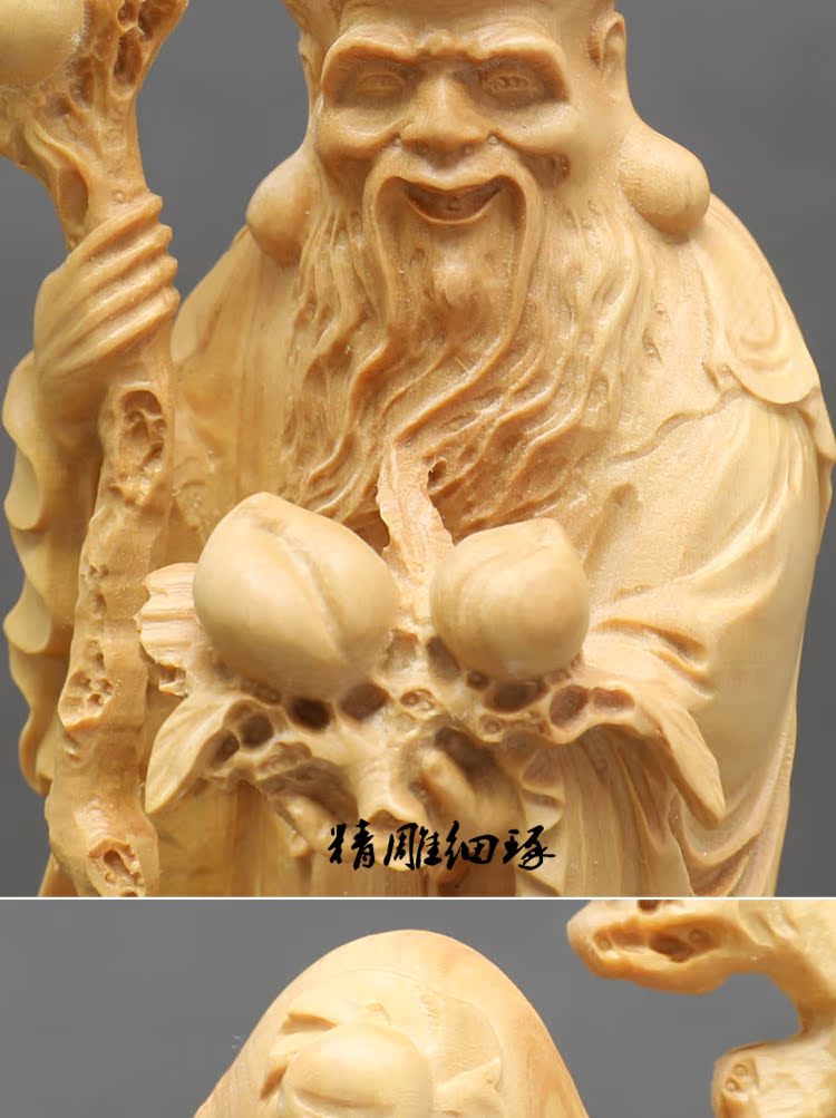 [2]楠溪匠心小葉黃楊木雕刻實木壽星公擺件長壽禮品老人賀壽送禮佳品1入