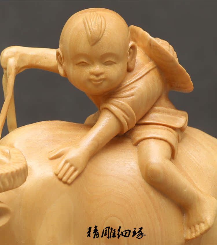 [2]楠溪匠心小葉黃楊木雕牧童騎牛擺件放牛娃中式工藝品牛童家居擺設1入
