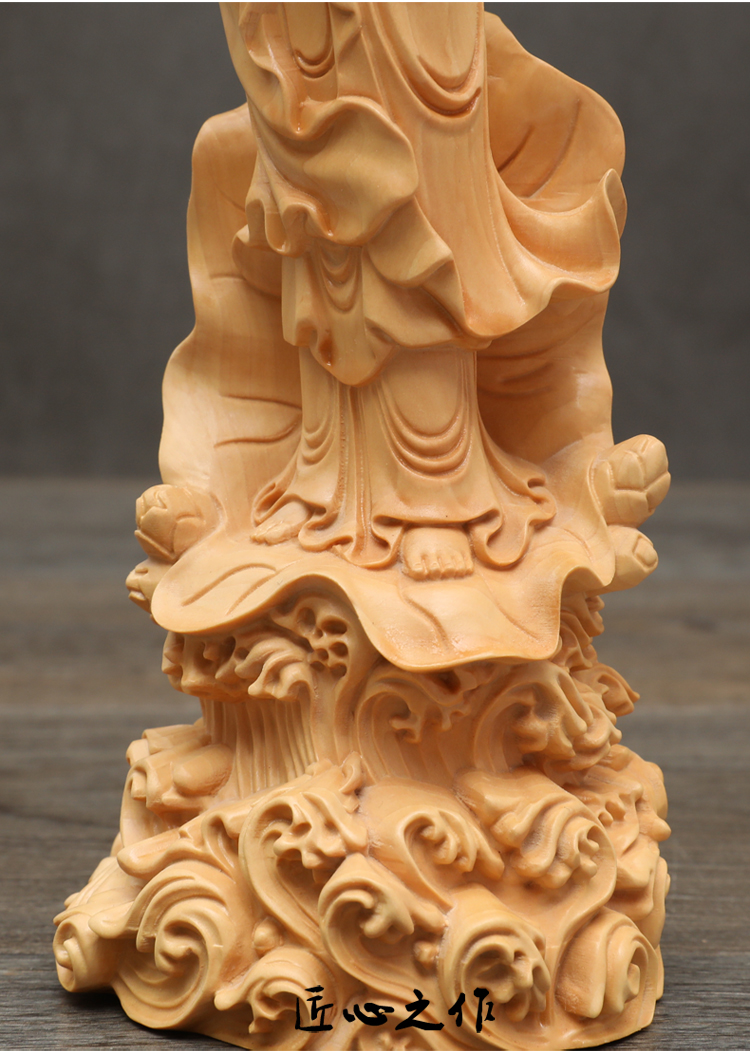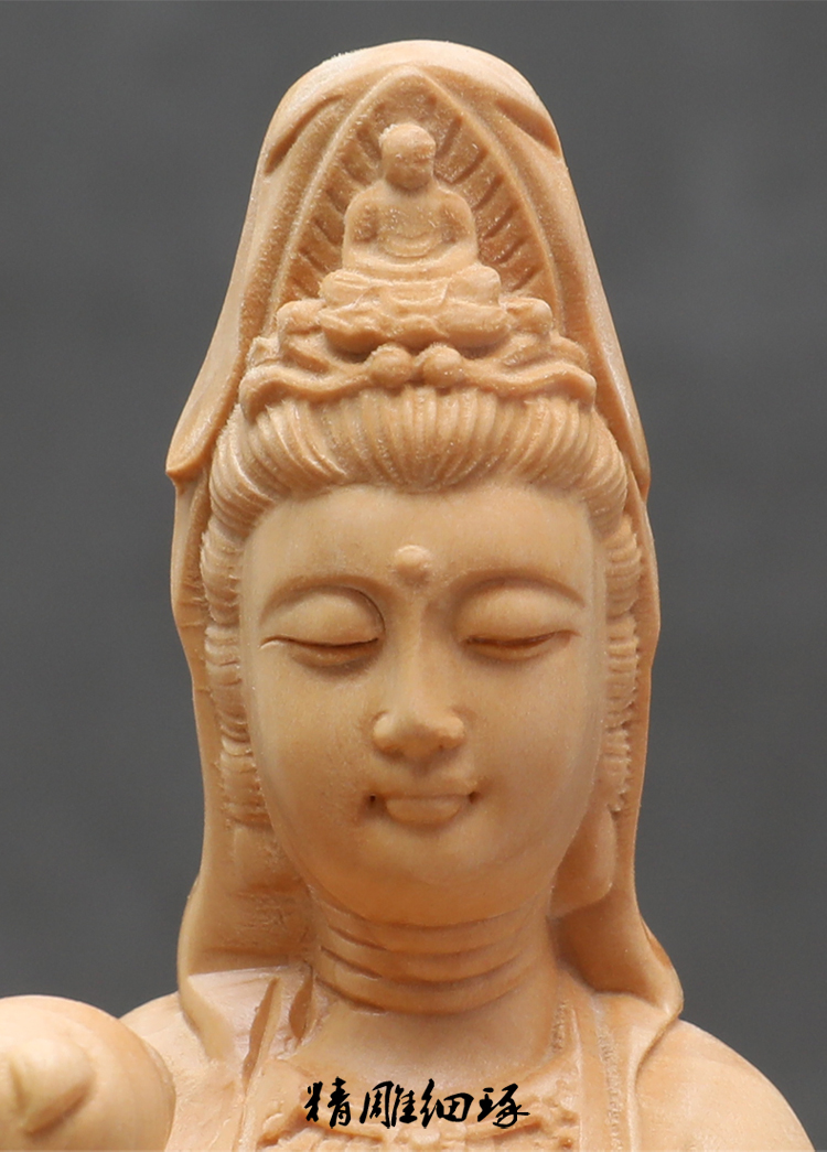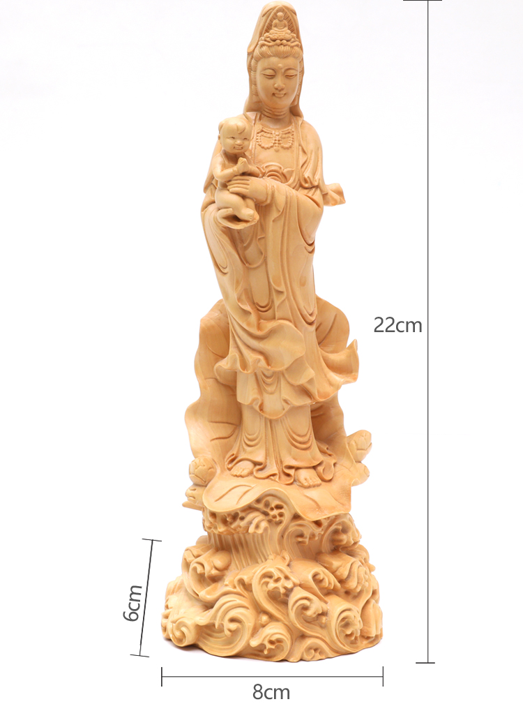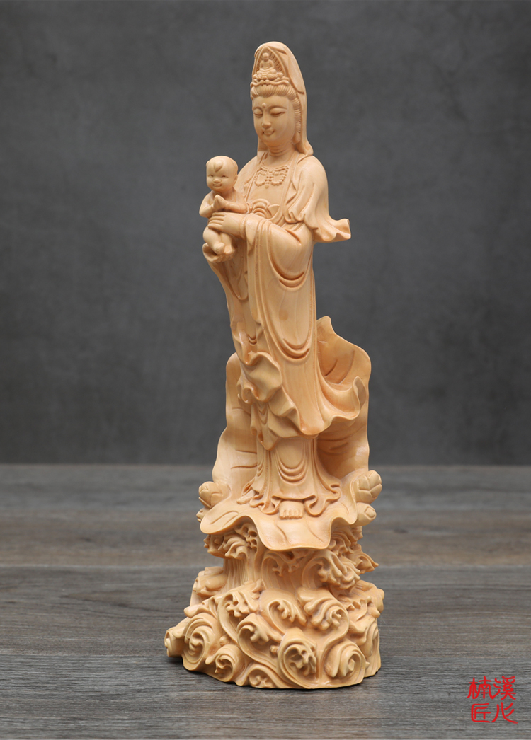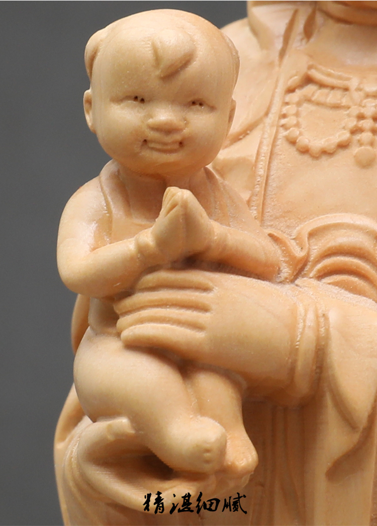 [2]楠溪匠心黃楊木雕刻送子觀音佛像供奉家用求子南海觀世音菩薩擺件1入