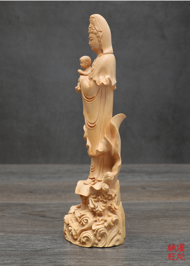 楠溪匠心黃楊木雕刻送子觀音佛像供奉家用求子南海觀世音菩薩擺件1入