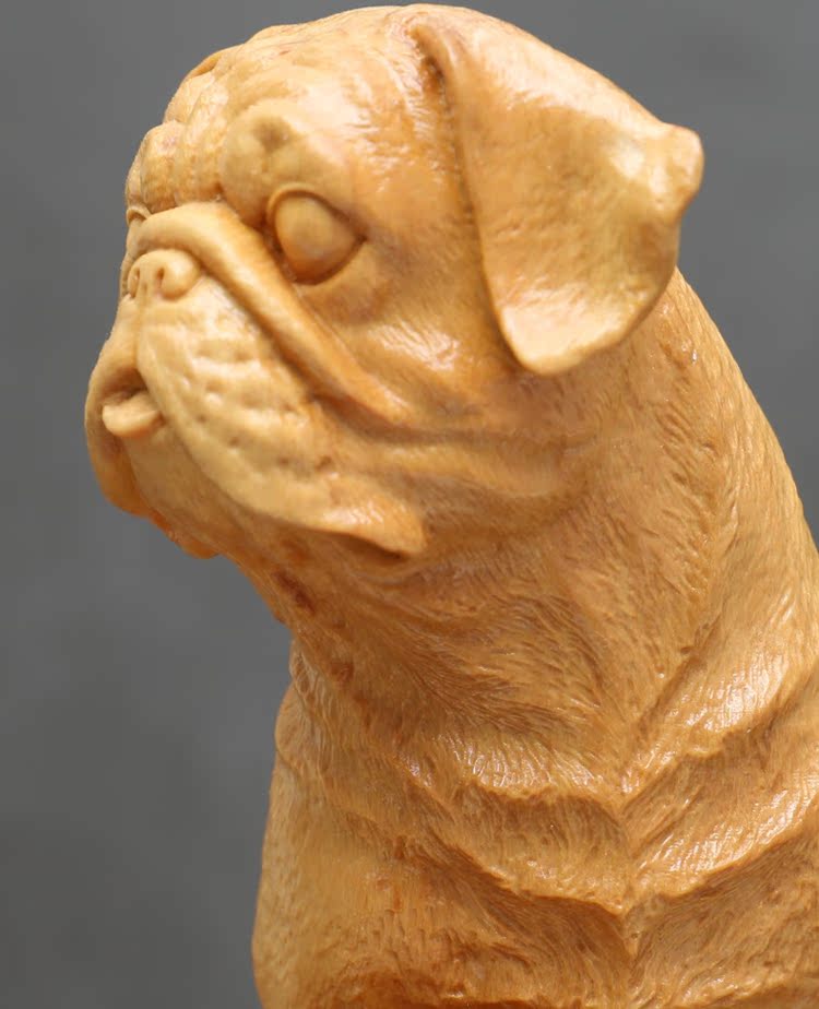 [2]楠溪匠心小葉黃楊木雕法國斗牛犬一家擺件法斗家犬擺設創意藝術品1入