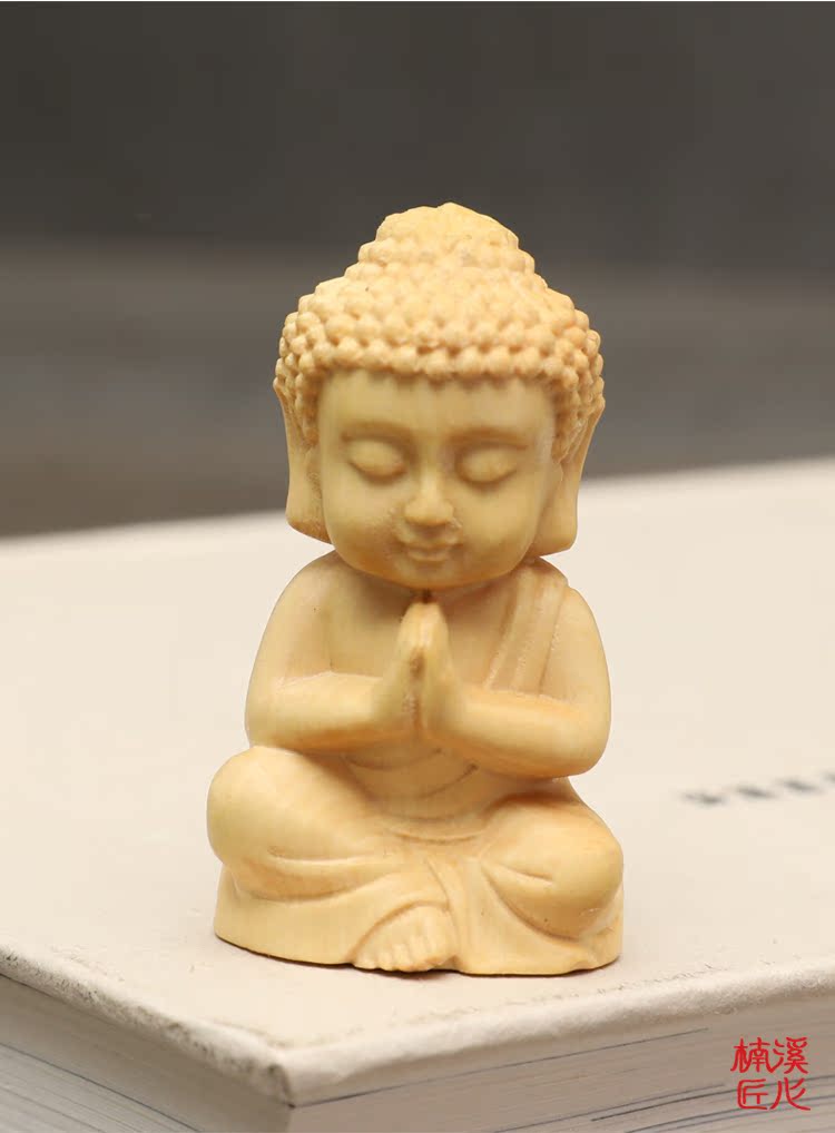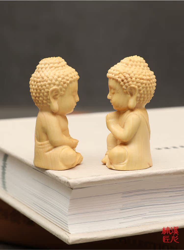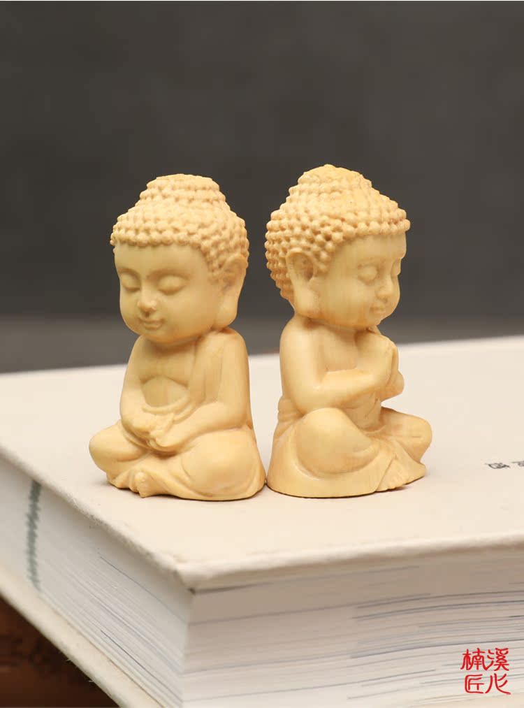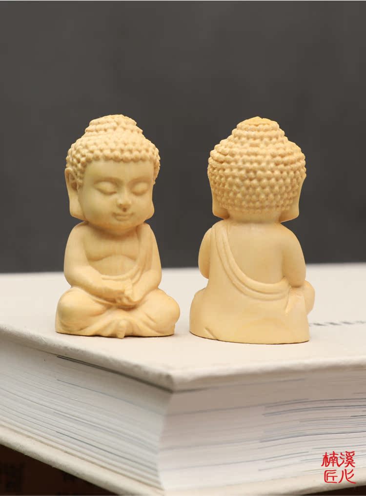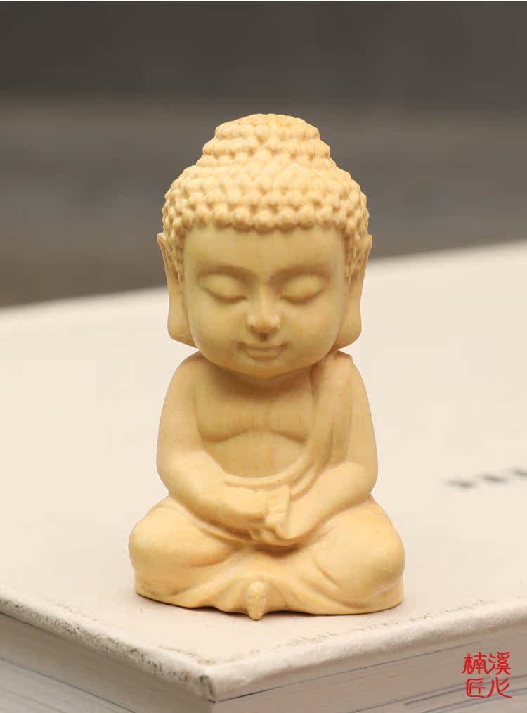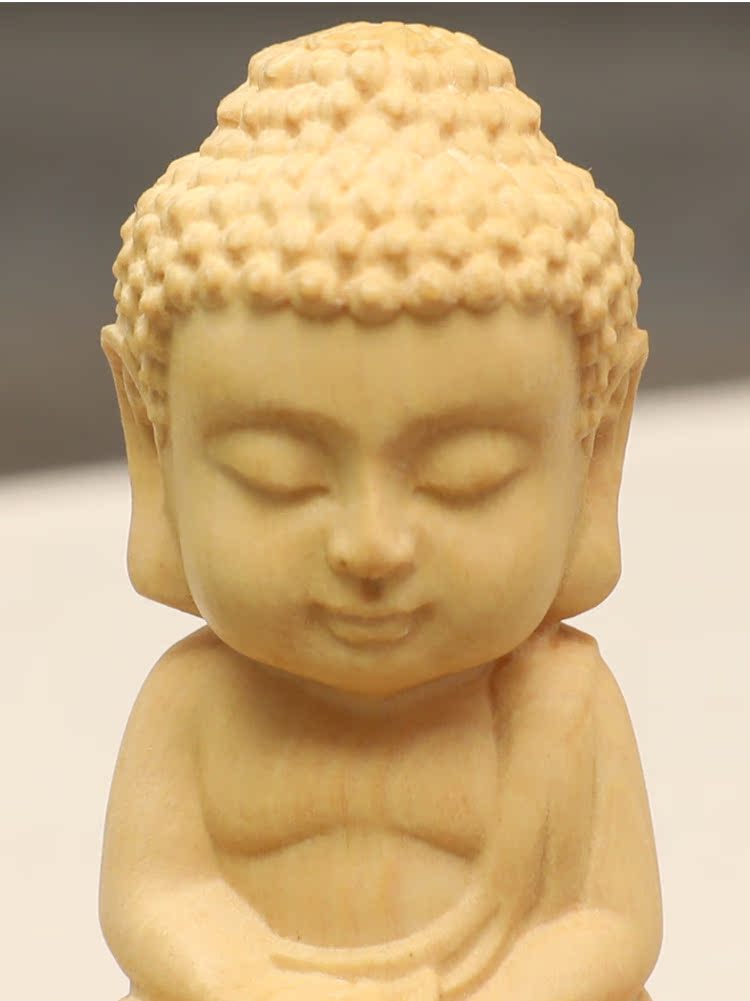 楠溪匠心黃楊木雕Q版釋迦牟尼擺件實木手把件迷你小如來佛像文玩1入