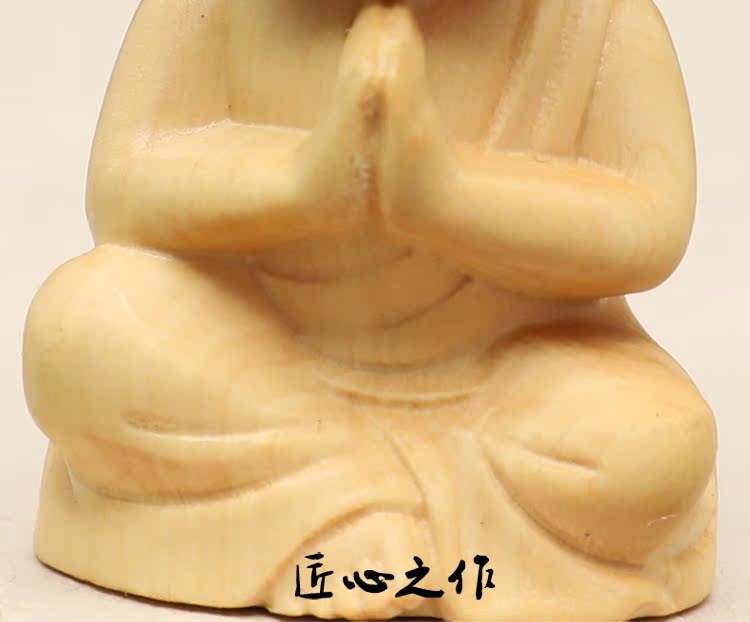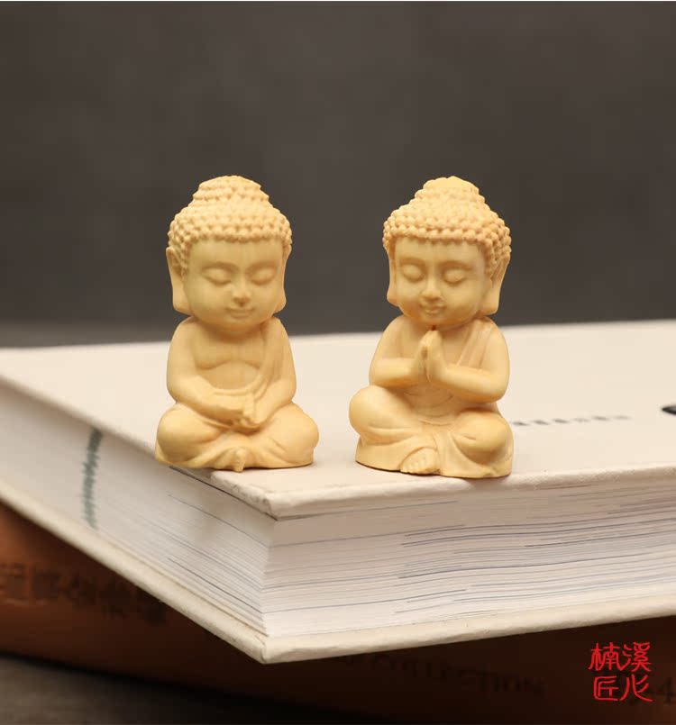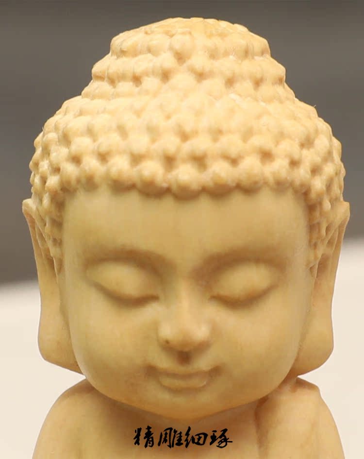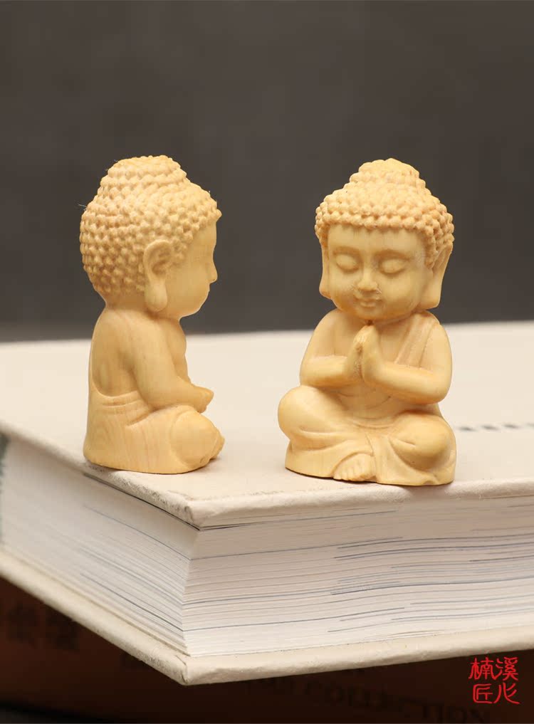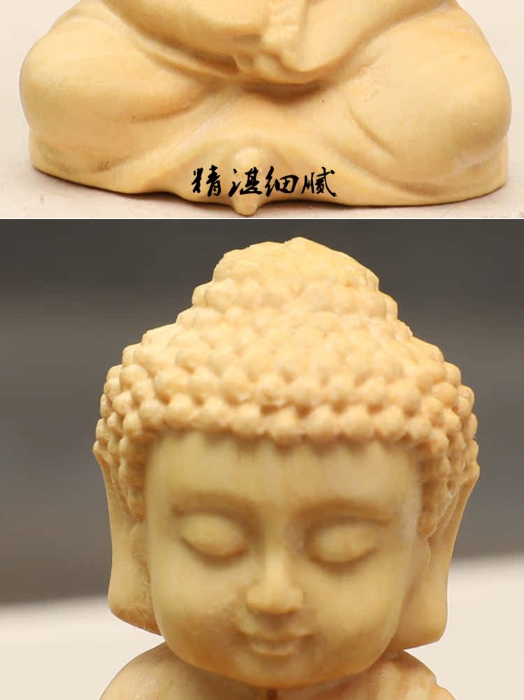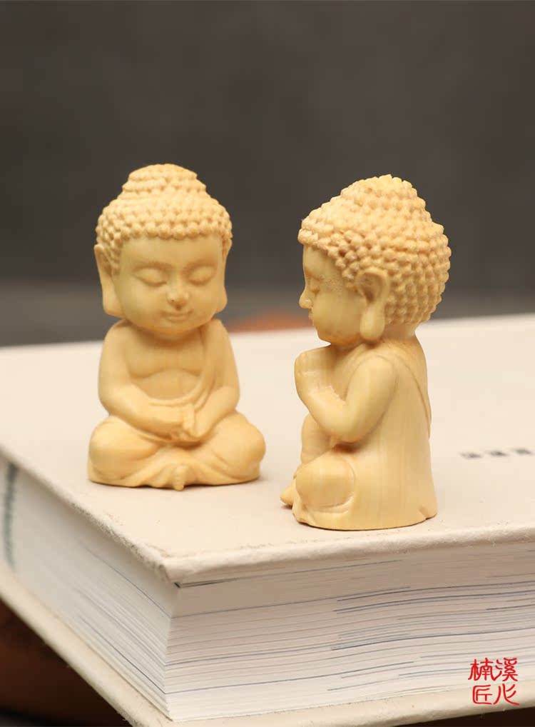 楠溪匠心黃楊木雕Q版釋迦牟尼擺件實木手把件迷你小如來佛像文玩1入
