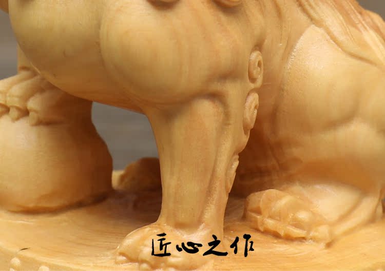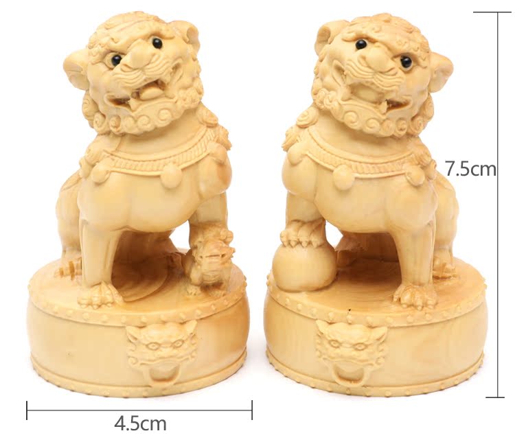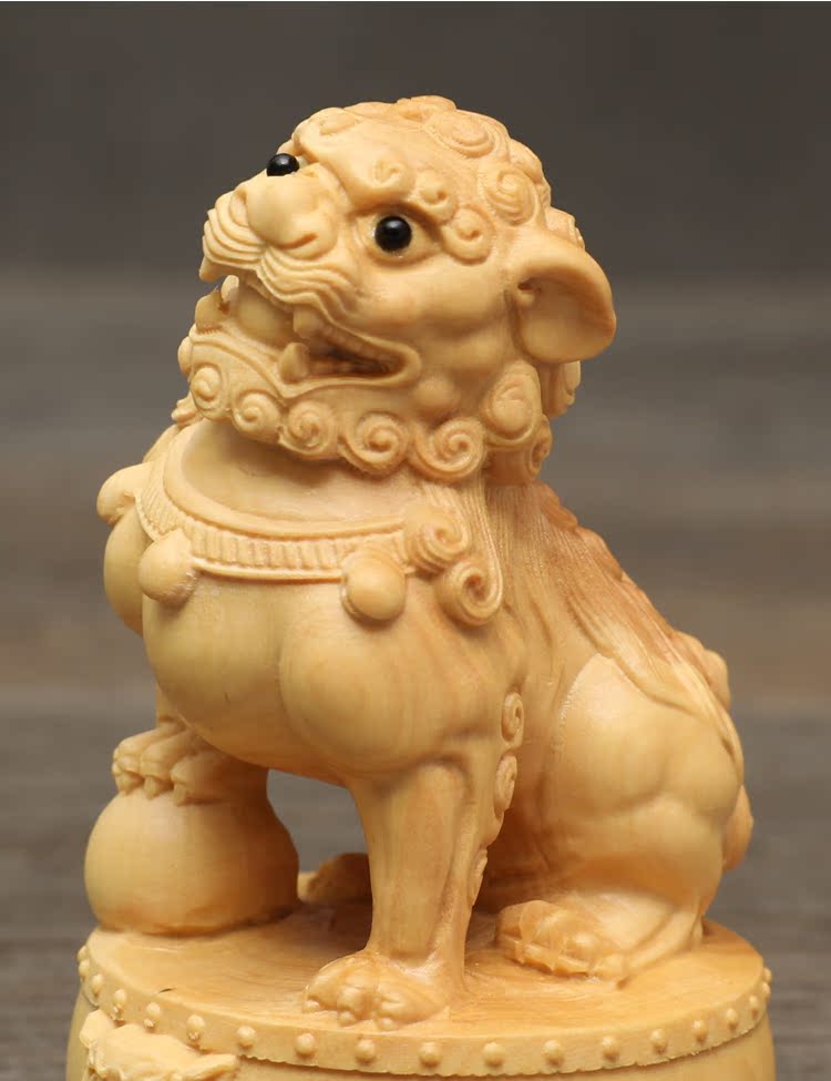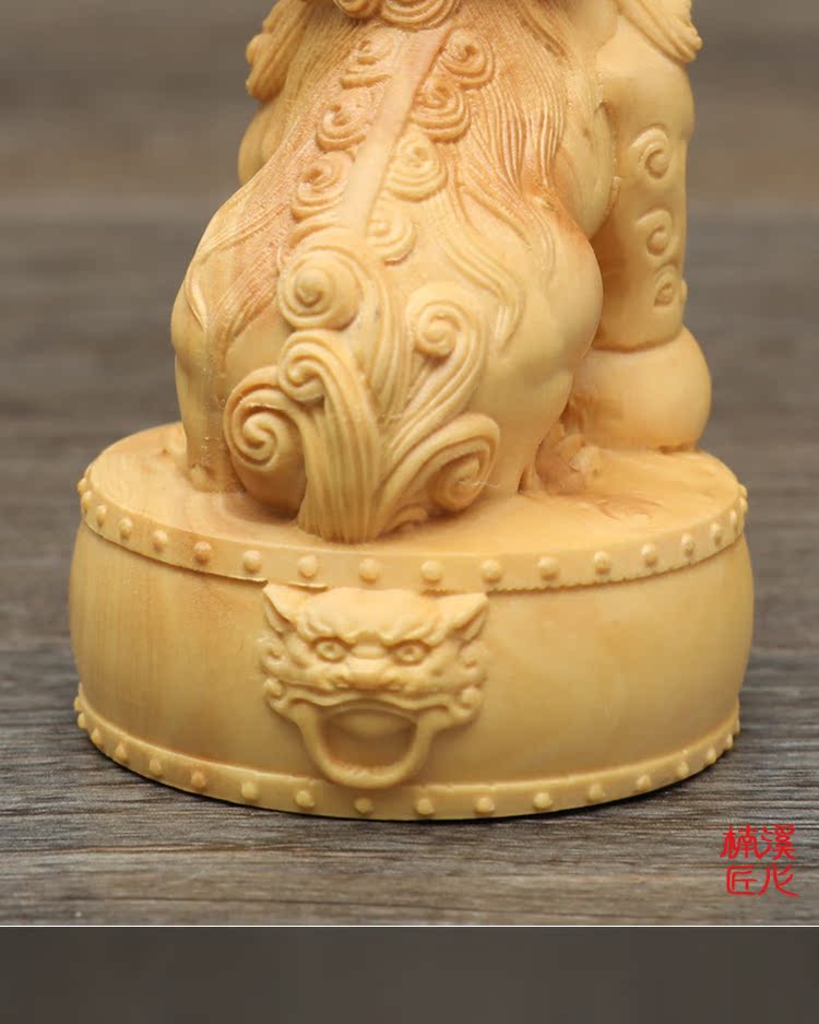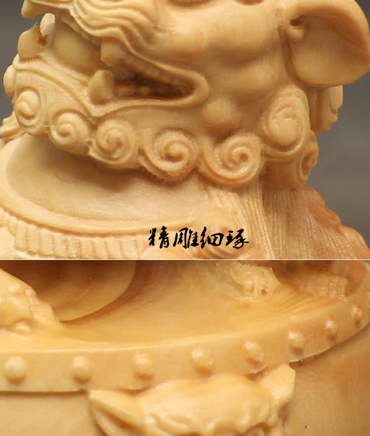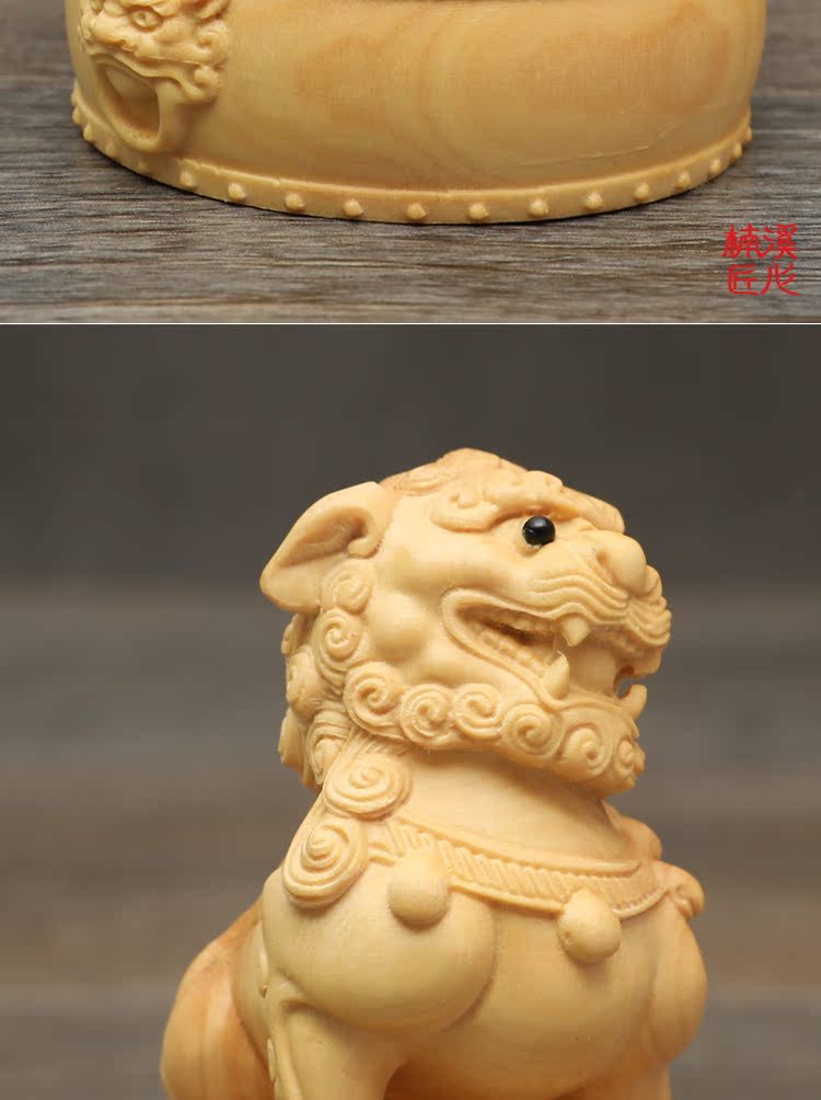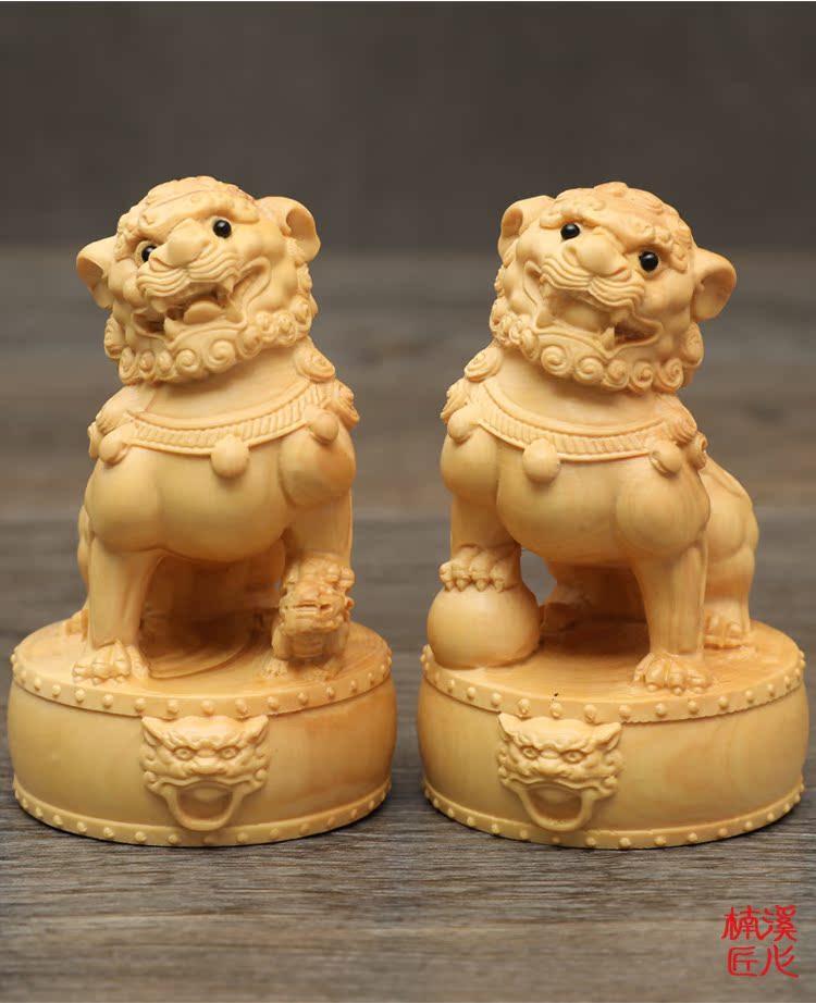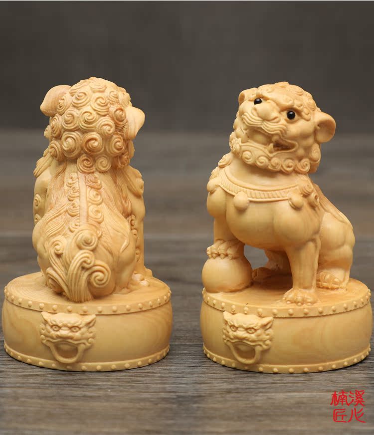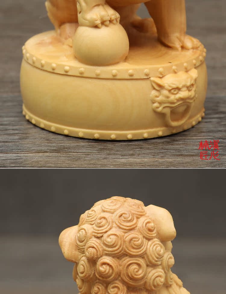 [2]楠溪匠心黃楊木雕站鼓獅子擺件創意工藝品手把件招財鎮宅一對獅子1入