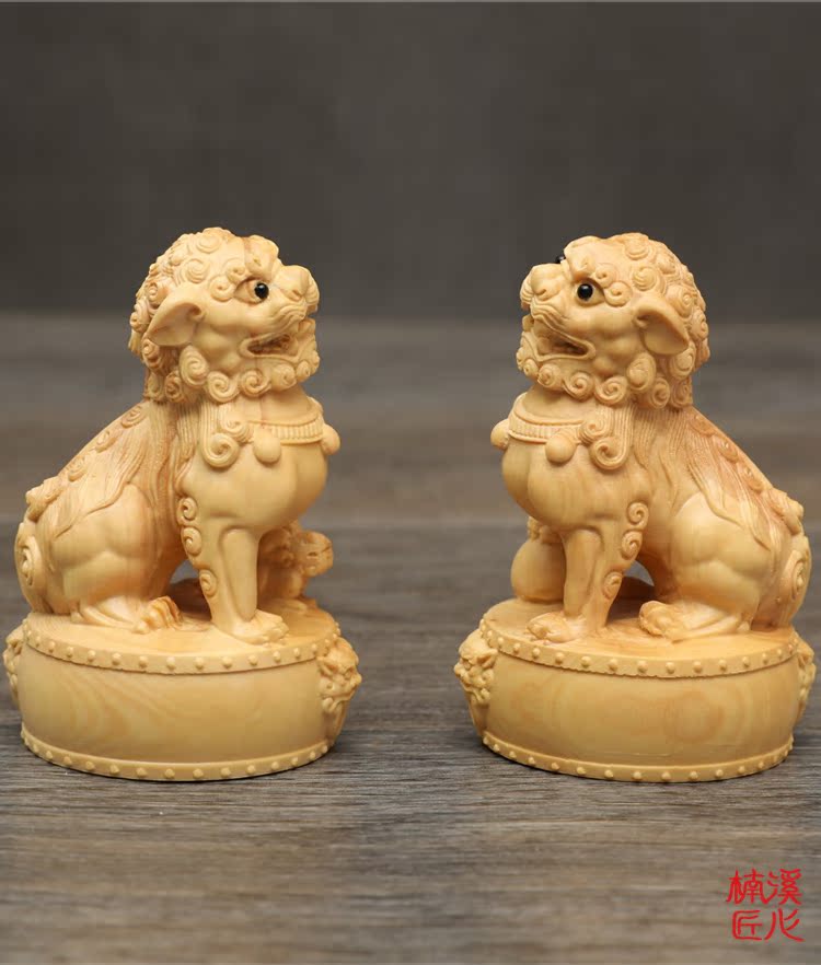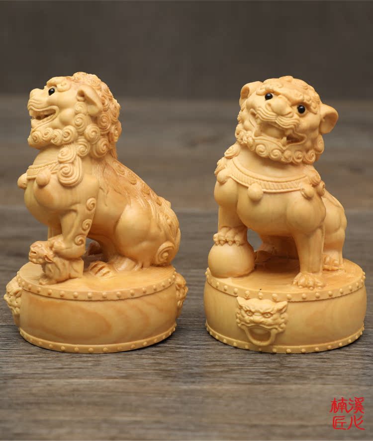 楠溪匠心黃楊木雕站鼓獅子擺件創意工藝品手把件招財鎮宅一對獅子1入