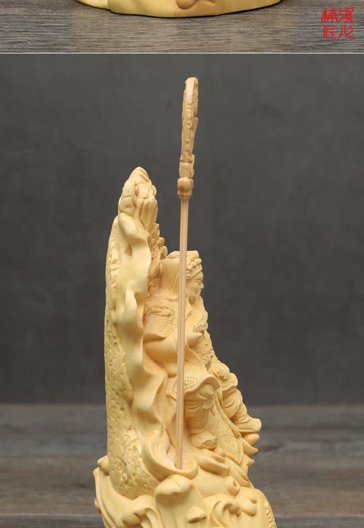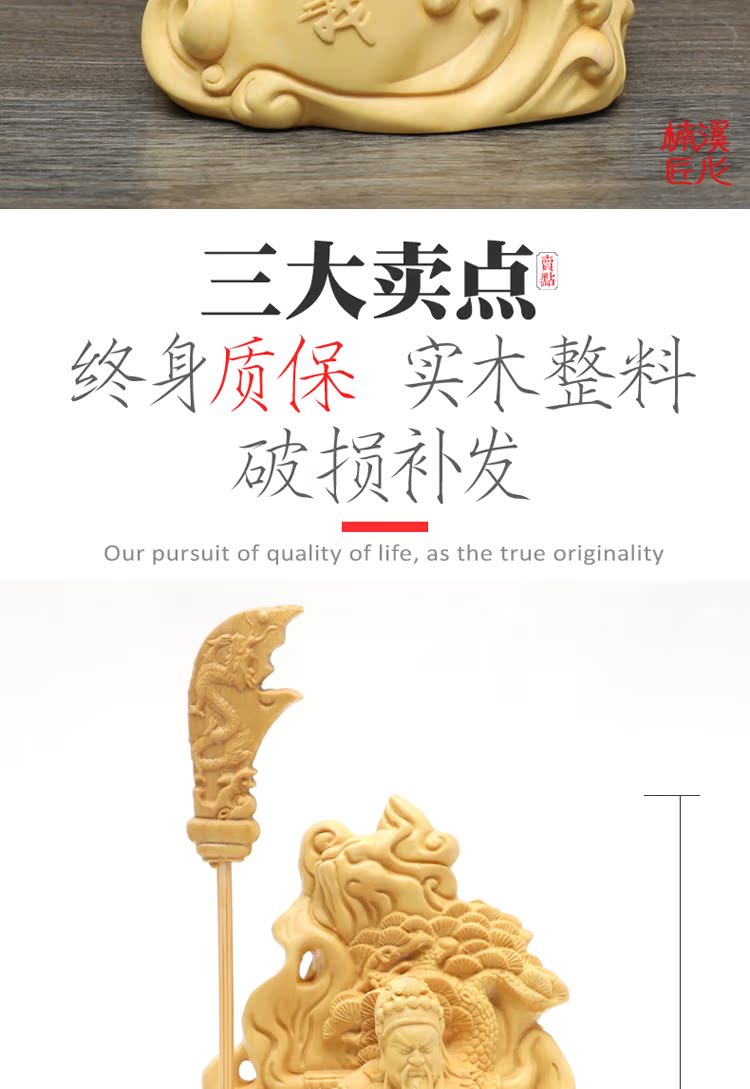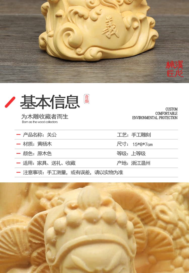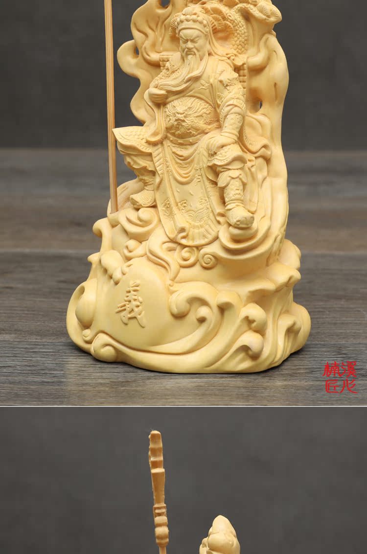 [2]楠溪匠心黃楊木雕關公佛像擺件家居風水鎮宅工藝品武財神實木飾品1入