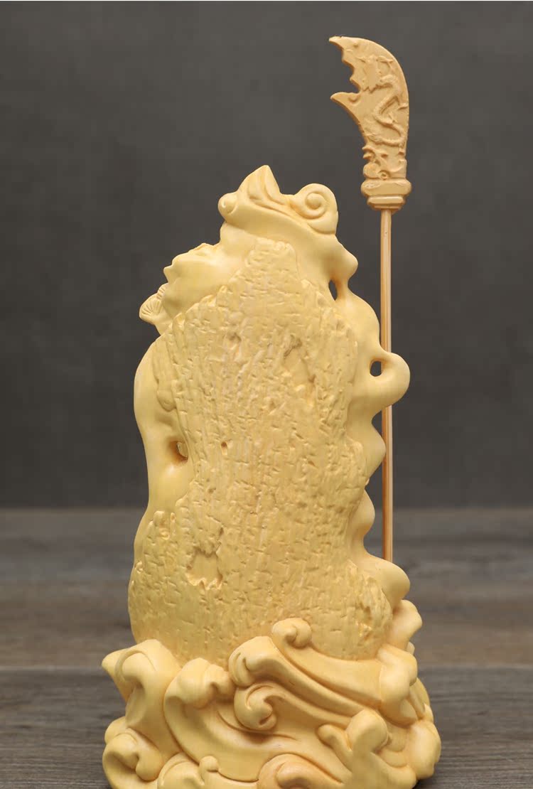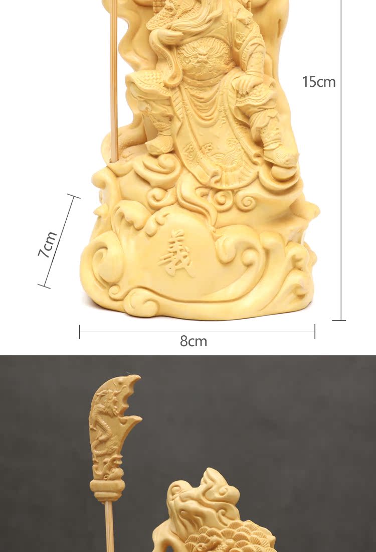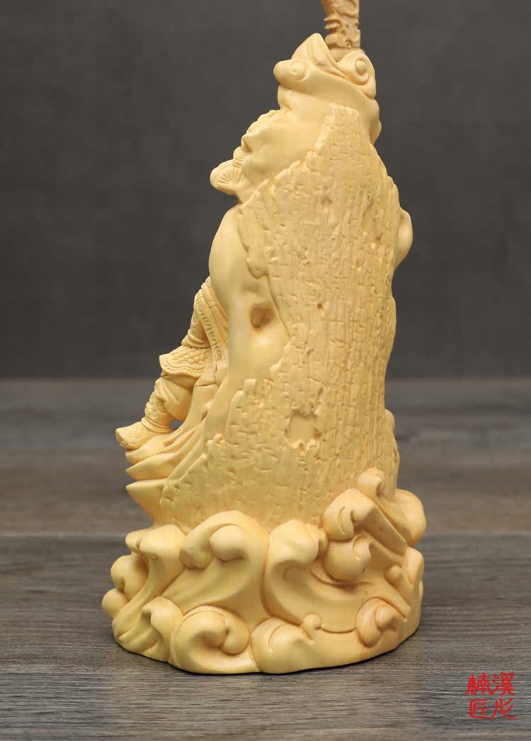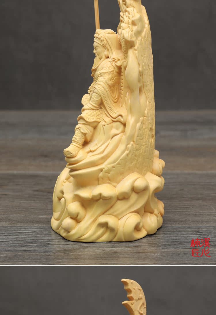 [2]楠溪匠心黃楊木雕關公佛像擺件家居風水鎮宅工藝品武財神實木飾品1入