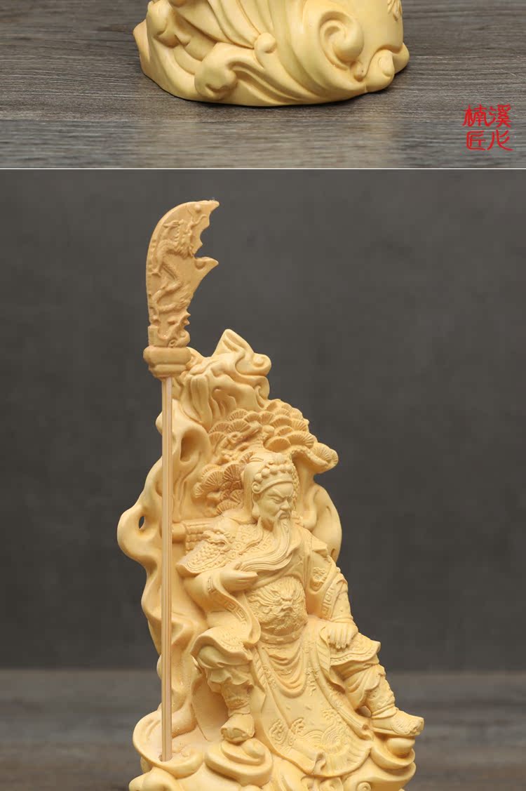 楠溪匠心黃楊木雕關公佛像擺件家居風水鎮宅工藝品武財神實木飾品1入