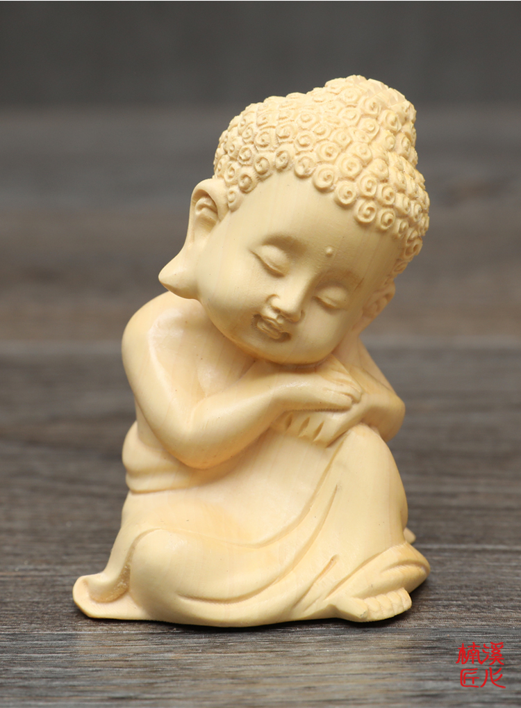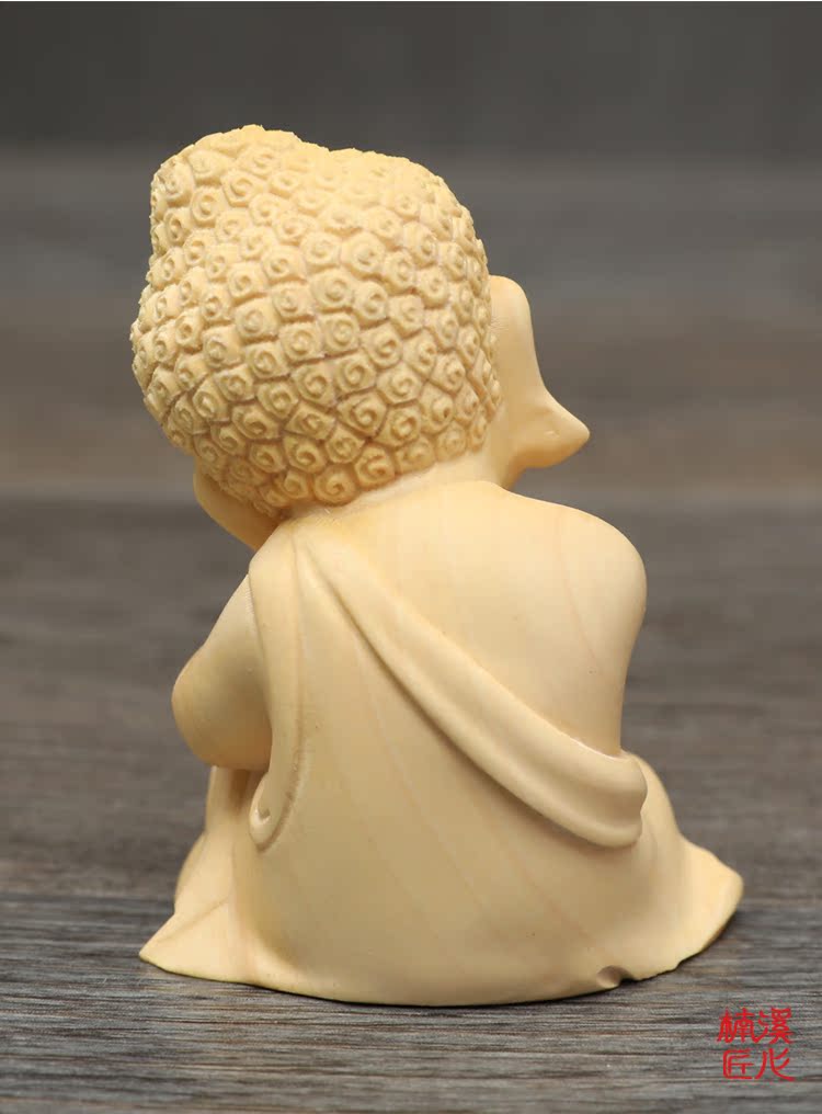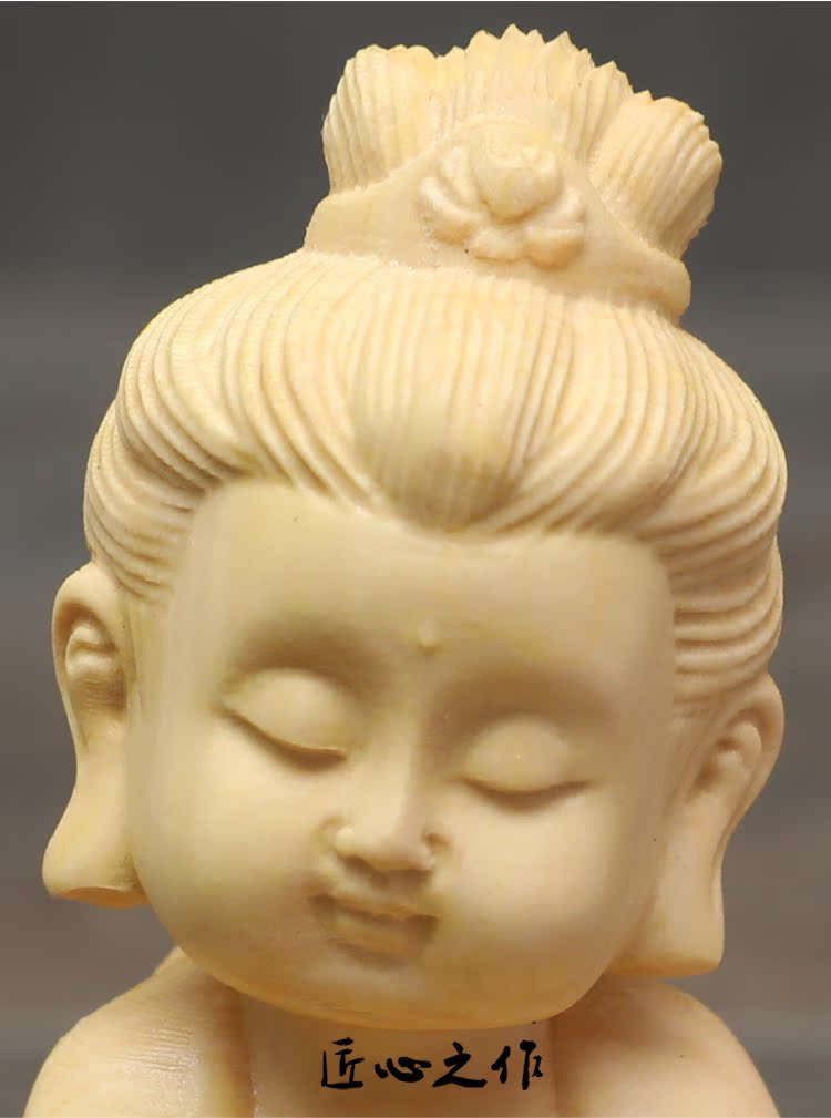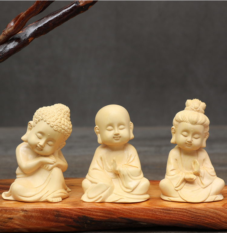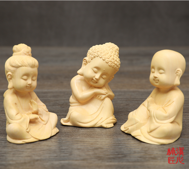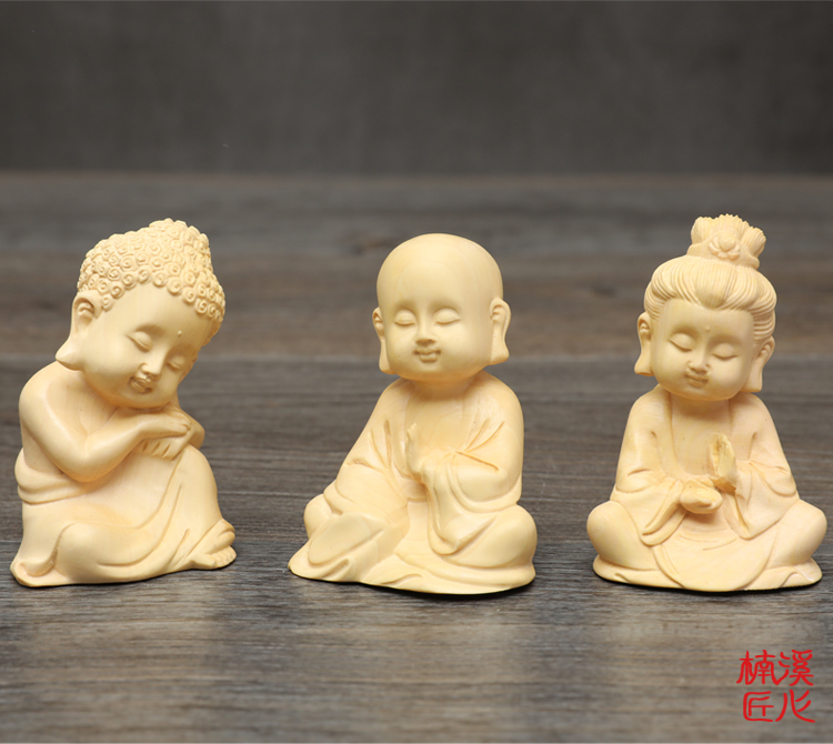 楠溪匠心黃楊木雕Q版娑婆三圣擺件觀音地藏王菩薩迷你佛像小把件1入