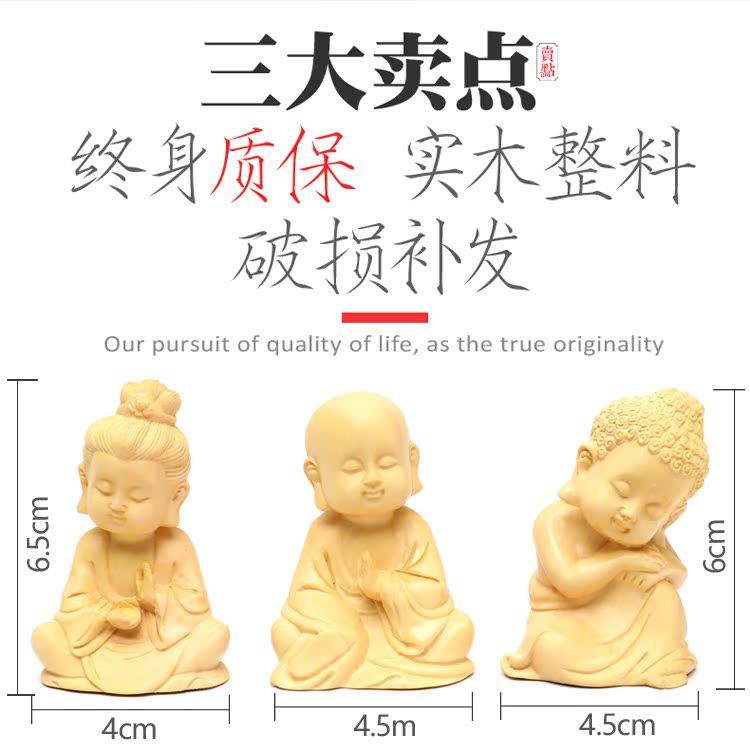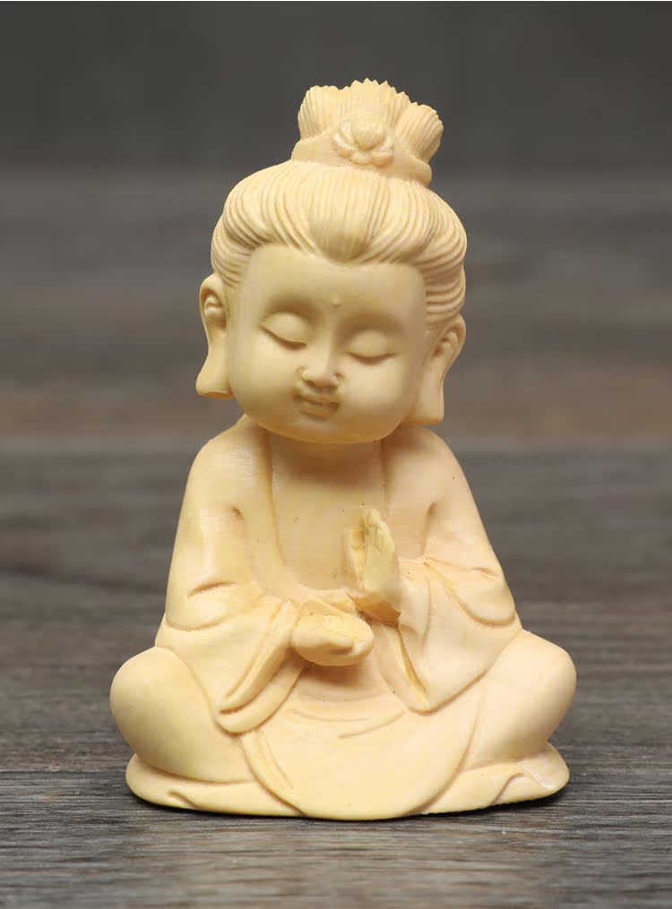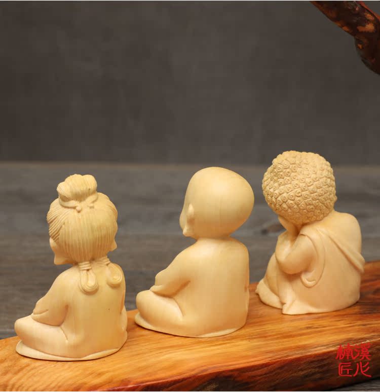 [2]楠溪匠心黃楊木雕Q版娑婆三圣擺件觀音地藏王菩薩迷你佛像小把件1入